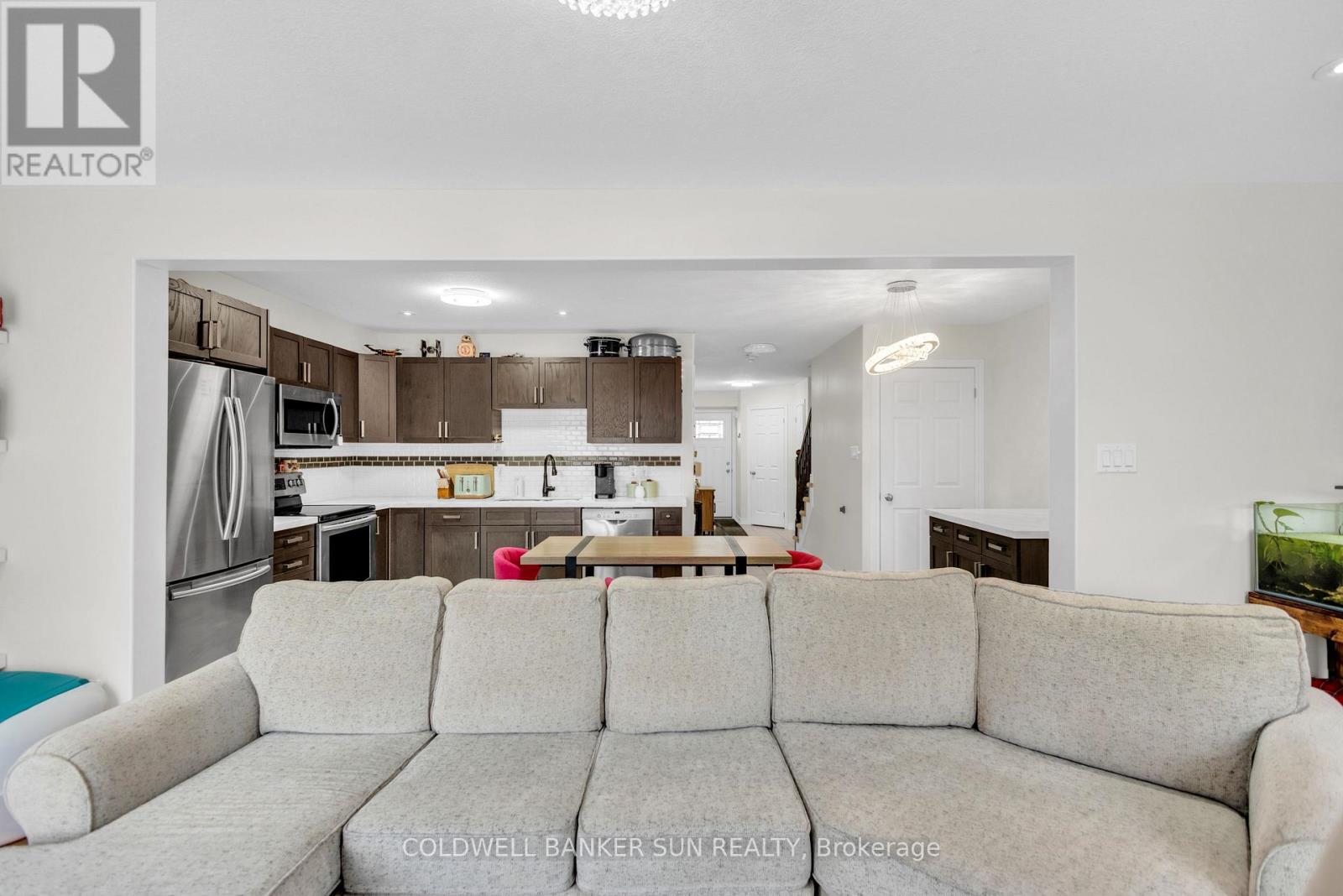 Freshly Painted Freehold Townhome In Quiet Family Neighborhood That Is Walking Distance To Downtown, Schools, Parks. Approx 1400 Sqft Of Well Laid Out Open Concept Living Space, Upgraded Kitchen Quartz Countertops & Cabinetry, Island With Breakfast Bar, Entry Accent Wall Plus Accent Tv Wall with Electric Fireplace In Great Room, Huge Master With Ensuite & Walk-In Closet, Upgraded Cabinetry In Master & Main Bathrooms, Stained Railing With Extra Pickets And Lots More... (id:4555)