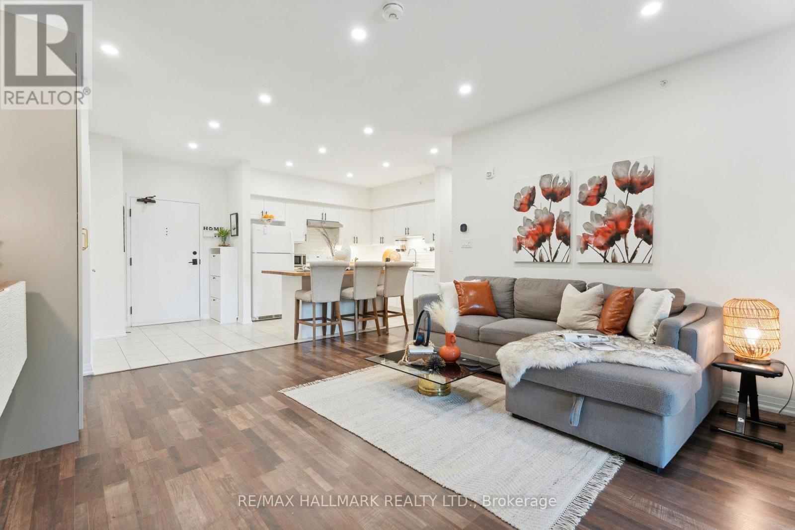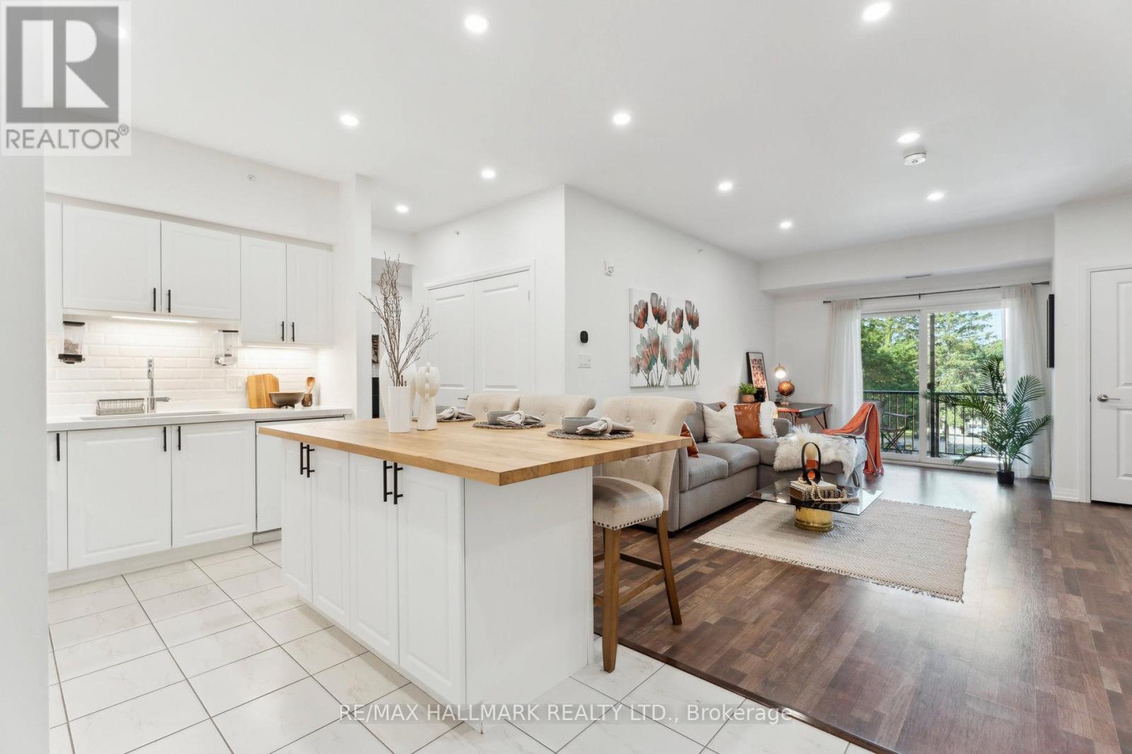 Welcome to This Modern Condo in one of Alliston's most desirable communities! This Spacious One Bedroom Condo with an Open Concept Living Area offers Many Features and Upgrades! Enjoy Quiet and Private Balcony, Perfect for Sipping Your Morning Coffee or Enjoying A Glass of Wine In The Evening! Stylish Wooden Island at The Heart of The Kitchen adds a Touch of Warmth and Perfect for Dining and Socializing! The Numerous Pot Lights Make This Condo Shine! Convenient Ensuite Laundry! Quartz Countertops and Wide Deep Sink! Large Windows and Plenty of Storage! Perfect for First Time Home Buyers or Downsizers! AC is Remote Controlled. Extra Covered Storage on the Balcony. Walking Distance to All Amenities: Shops, Restaurants, Parks, Schools. Minutes away From Highways 89, 27 and 400! This Condo is Close to Expanding Honda Plant and the Baxter Plant! (id:4555)