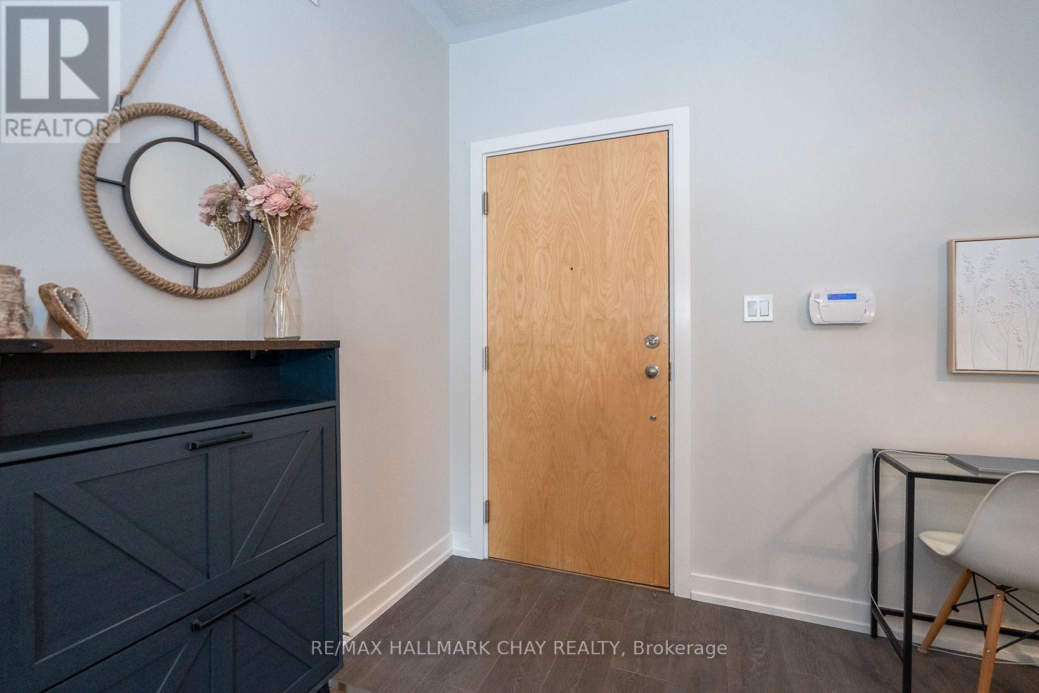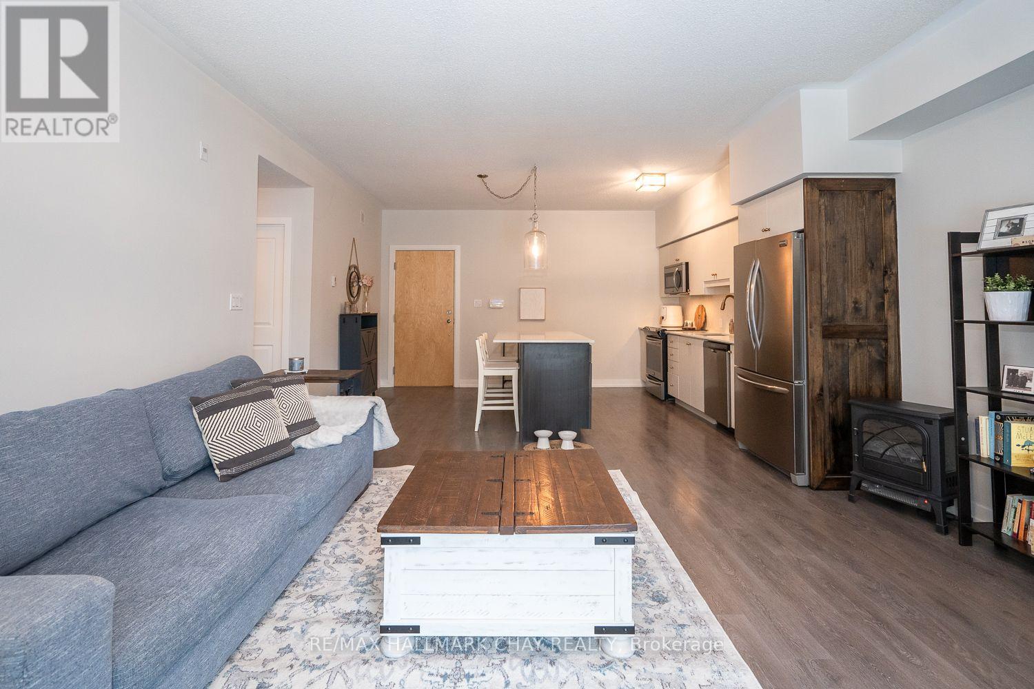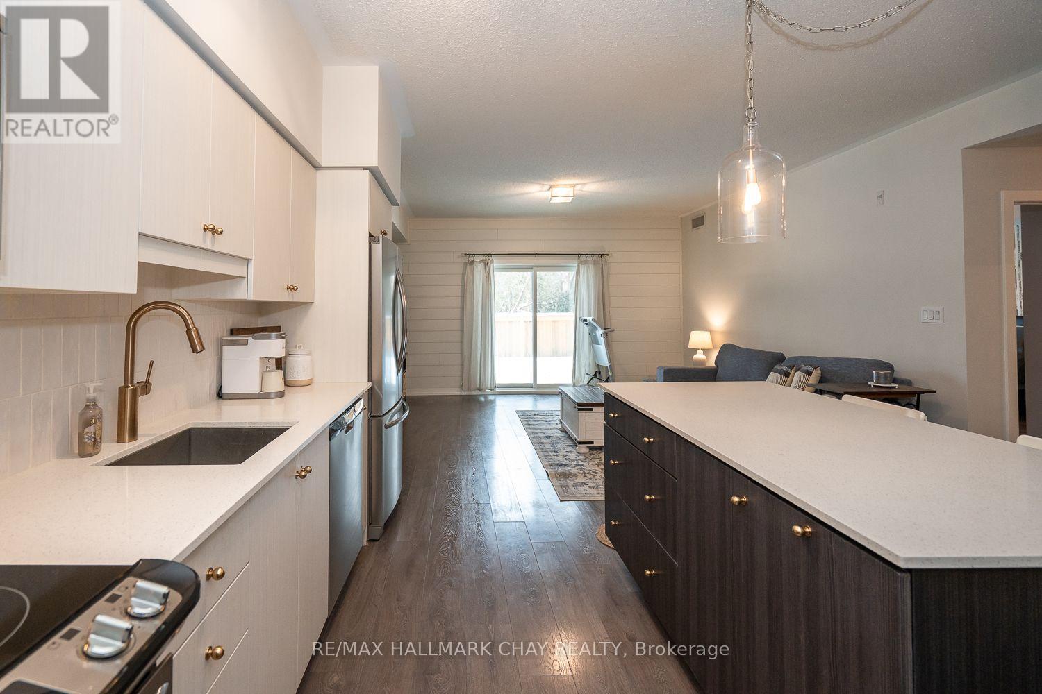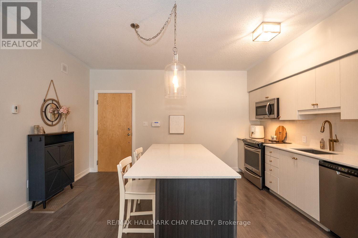 GROUND FLOOR CONDO WITH WALK OUT TO 10 x 15 PATIO AND LAWN AREA, BACKING ONTO TREES AND RIVER!...............Built in 2015, this unit is very modern, open, and bright with 9 ft ceilings................826 sq ft................Fresh paint throughout, quartz countertop, newer light fixtures and backsplash add to the nice feel you'll get in here................Unit is being sold by the original owner................Sought after building with a low turnover rate, and a very high percentage of owner-occupancy................Surface parking spot (#105) is just across from the main entry into building...............Short walk to shopping, dining, walking trails, and river............. (id:4555)