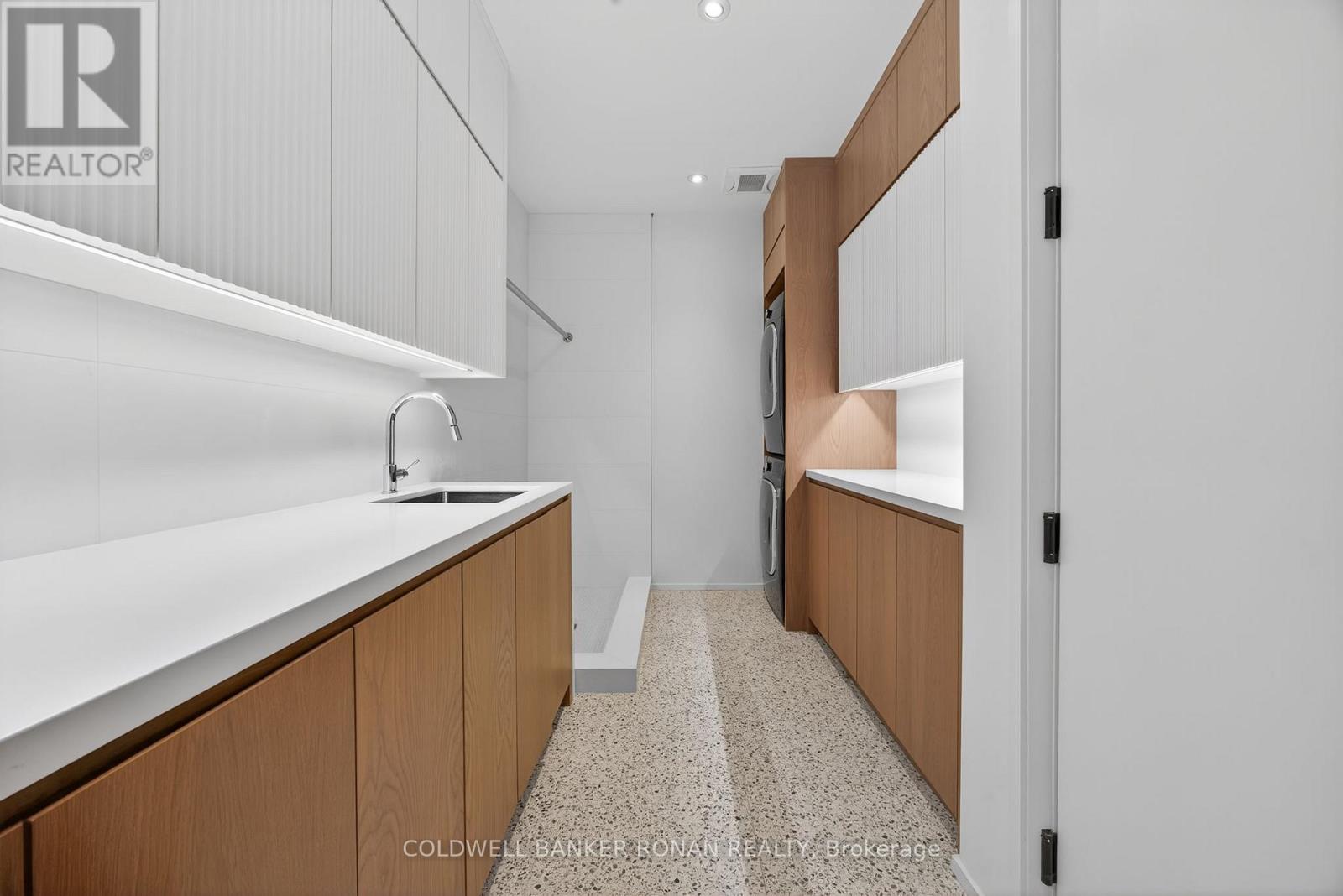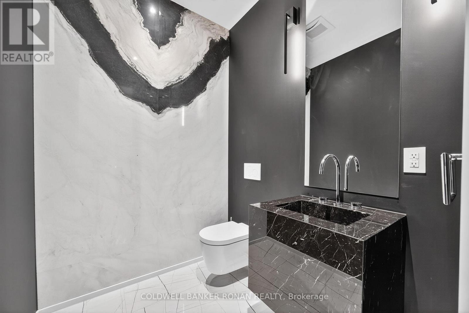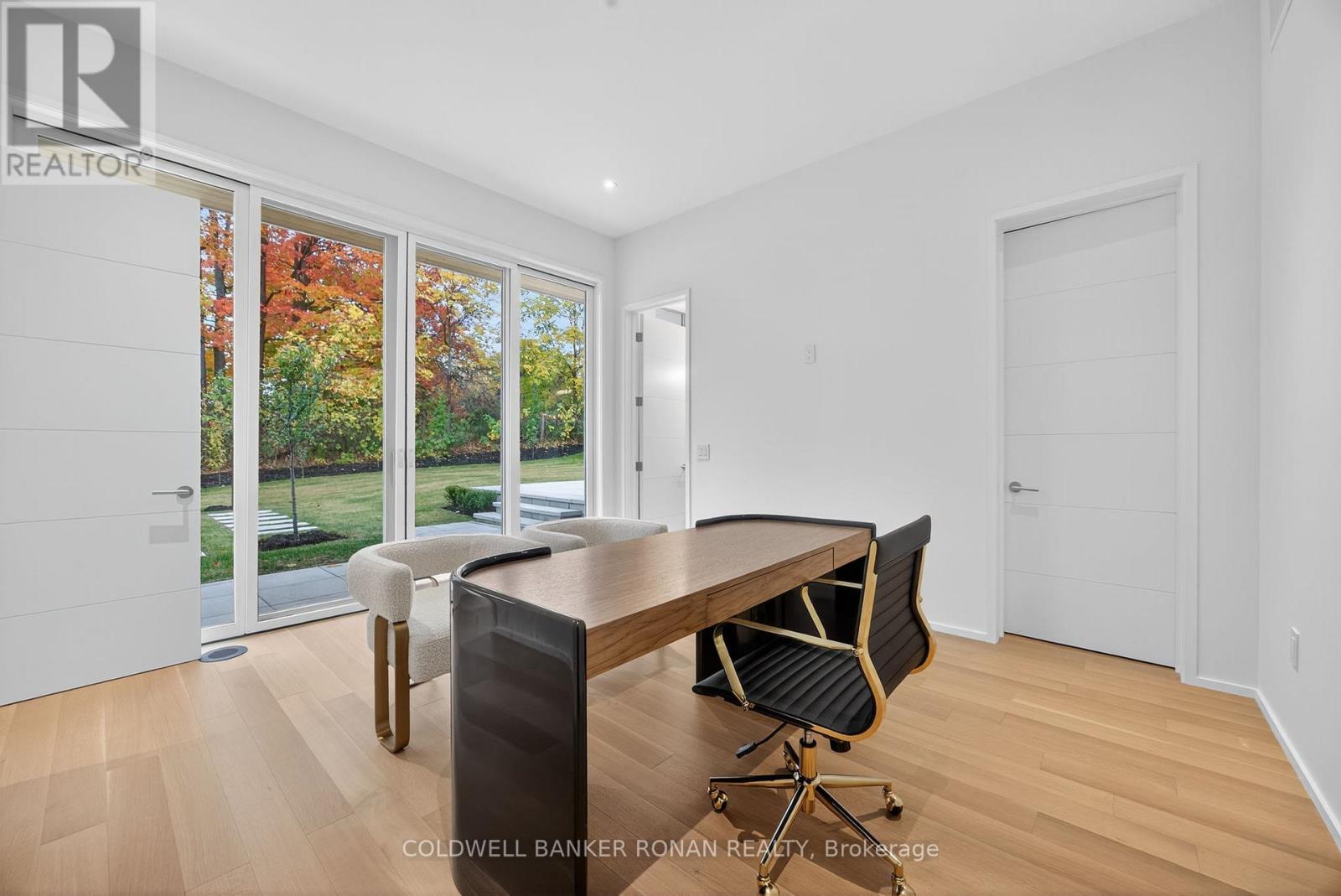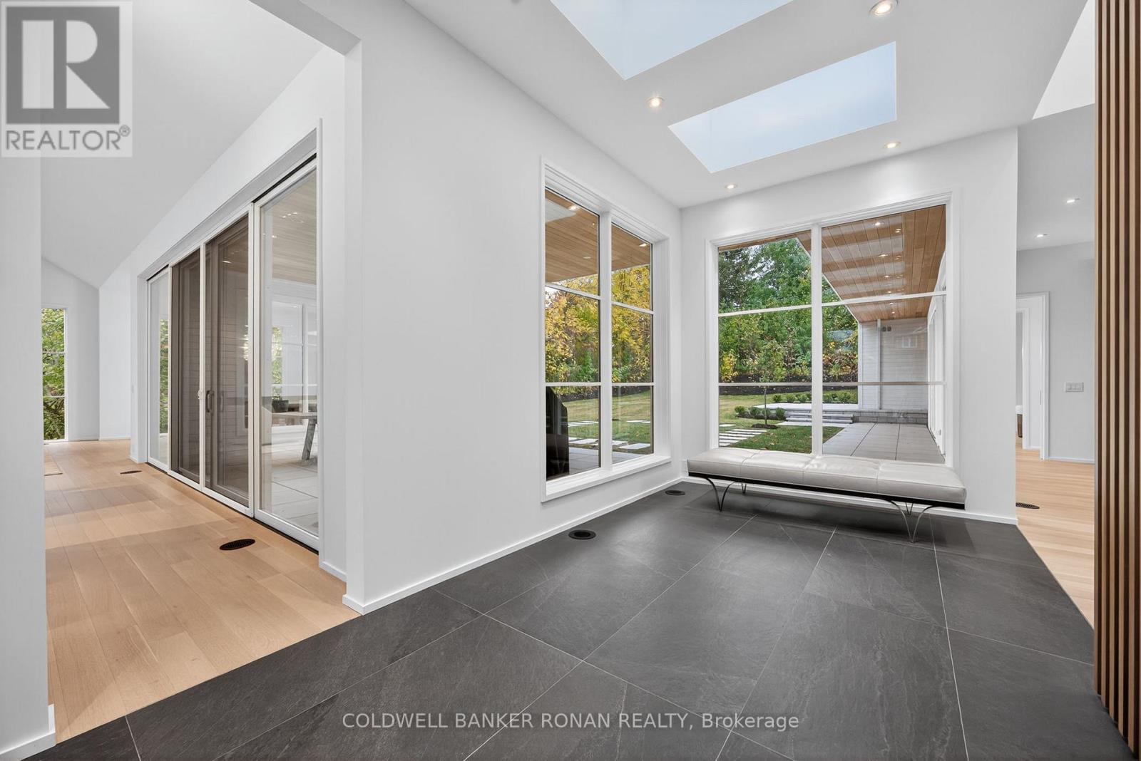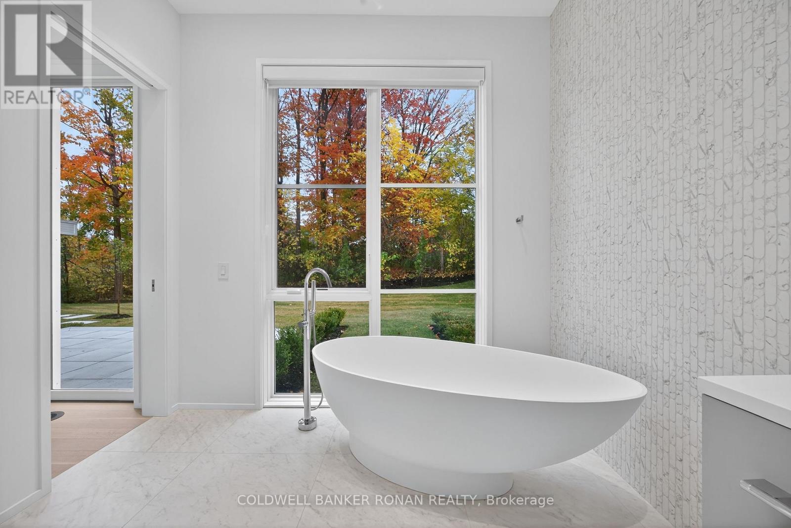 Luxury living in this breathtaking Forest View Home, crafted by Georgio Lolos Designs w/ interiors curated by ABella Design Inc. This stunning property is built with an eye for elegance & functionality. Step into the home through a custom wood slatted wall foyer. Six skylights flood the space with natural light. Open riser, Hollywood stairs w/ sleek glass railings lead to a private bedroom retreat over the garage. Specialty lighting highlights the grandeur of the 18-foot A-frame vaulted ceiling in the main living area, creating an inviting ambiance around the 50" gas fireplace clad in black soapstone. The home showcases 6' White Oak flooring throughout for a seamless & warm finish. The powder room impresses w/ a Starck wall-hung toilet, integrated marble sink & an exquisite book-matched Bianco Lasa marble wall. The heart of the home features a dream kitchen, equipped w/ walnut cabinetry, an impressive 14-foot waterfall island & a handcrafted 50' Julien sink. Grey Lilac marble adorns the kitchen & pantry, complemented by full-slab backsplashes. Cooking is elevated w/ a 36' Gaggenau induction cooktop, 30' Gaggenau wall oven, fully integrated 36' Thermidor fridge & Bosch dishwasher. The custom range hood & gold fixtures adds an elegant touch while a wine fridge in the pantry & a wall mounted pot filler over the stove round out the space's luxury. The TV lounge features a built-in Gaggenau coffee maker & beverage fridge, elegantly integrated into custom cabinetry & a sophisticated walnut accent wall. Each bedroom offers an ensuite bathroom & custom closets. Primary ensuite is a private oasis w/ custom wall hung vanity, a luxurious Knief, K-Stone tub, a wall-mounted AeT DOT 20 Italia toilet, an oversized shower towel warmer. Laundry room is carefully designed, with beautiful cabinetry, clothes drying area & a custom dog wash station. A must see property for those seeking a refined yet comfortable living experience. (id:4555)