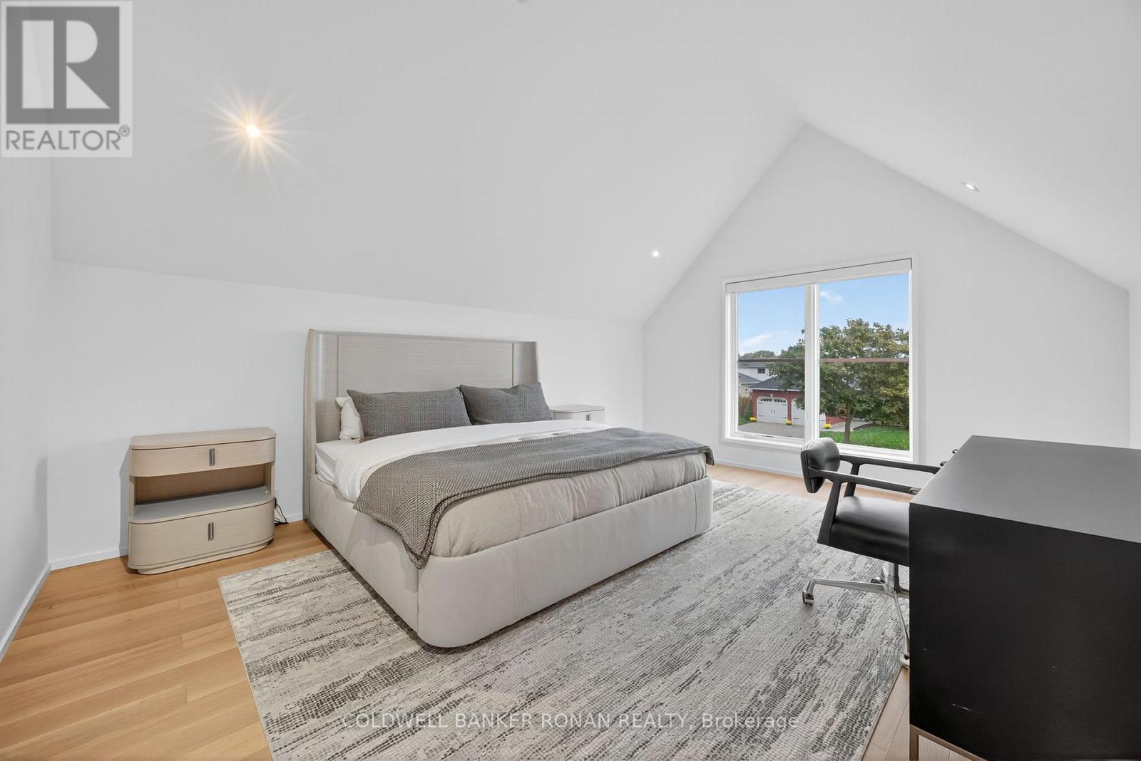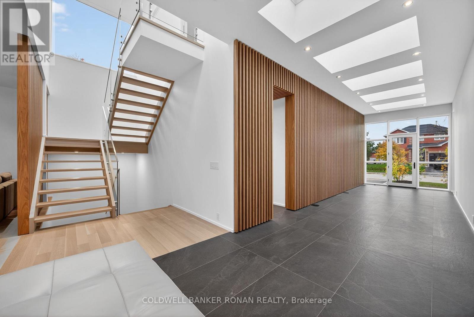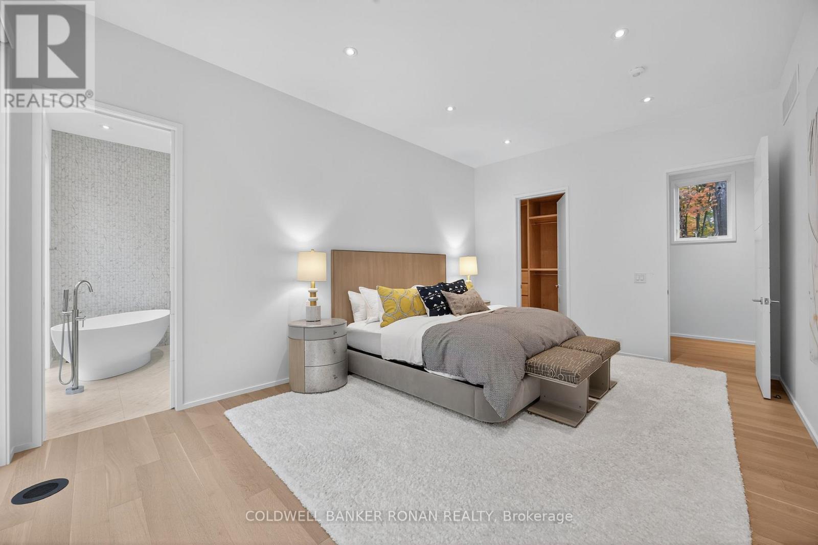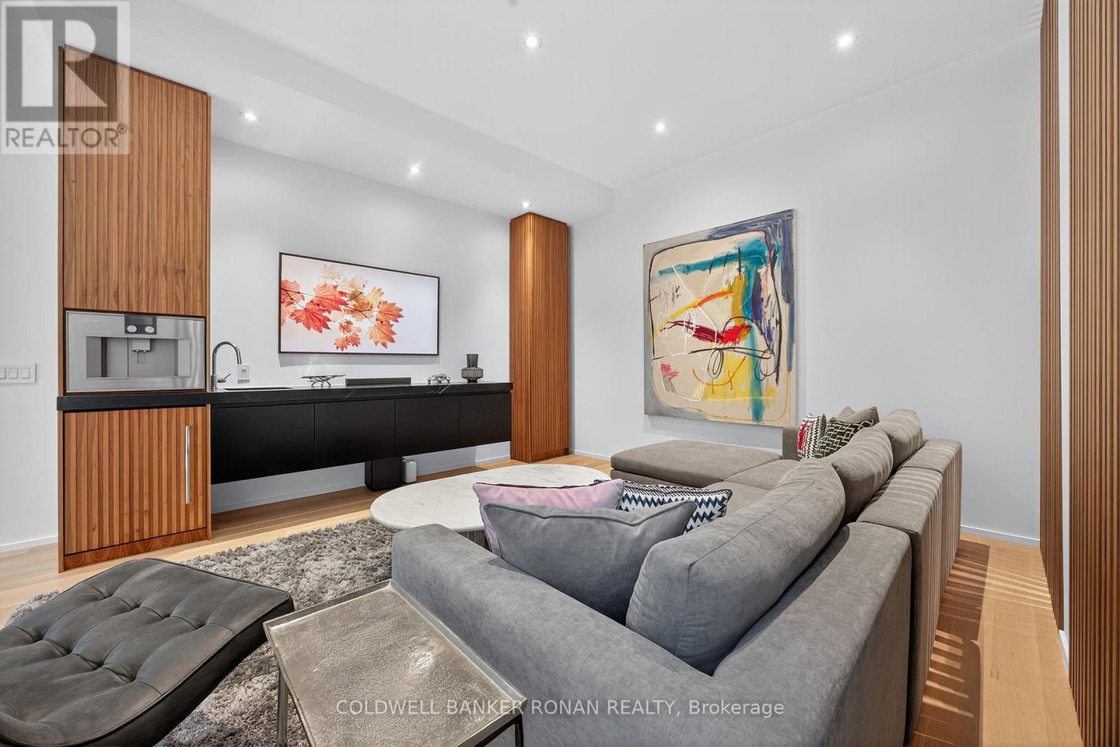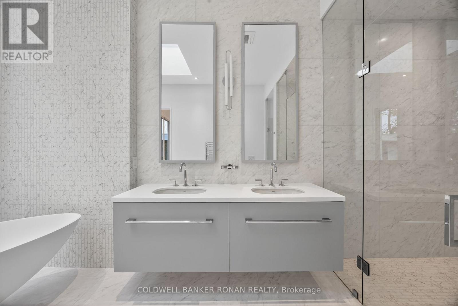 Luxury living in this breathtaking Forest View Home, crafted by Georgio Lolos Designs w/ interiors curated by ABella Design Inc. This stunning property is built with an eye for elegance & functionality. Step into the home through a custom wood slatted wall foyer. Six skylights flood the space with natural light. Open riser, Hollywood stairs w/ sleek glass railings lead to a private bedroom retreat over the garage. Specialty lighting highlights the grandeur of the 18-foot A-frame vaulted ceiling in the main living area, creating an inviting ambiance around the 50" gas fireplace clad in black soapstone. The home showcases 6' White Oak flooring throughout for a seamless & warm finish. The powder room impresses w/ a Starck wall-hung toilet, integrated marble sink & an exquisite book-matched Bianco Lasa marble wall. The heart of the home features a dream kitchen, equipped w/ walnut cabinetry, an impressive 14-foot waterfall island & a handcrafted 50' Julien sink. Grey Lilac marble adorns the kitchen & pantry, complemented by full-slab backsplashes. Cooking is elevated w/ a 36' Gaggenau induction cooktop, 30' Gaggenau wall oven, fully integrated 36' Thermidor fridge & Bosch dishwasher. The custom range hood & gold fixtures adds an elegant touch while a wine fridge in the pantry & a wall mounted pot filler over the stove round out the space's luxury. The TV lounge features a built-in Gaggenau coffee maker & beverage fridge, elegantly integrated into custom cabinetry & a sophisticated walnut accent wall. Each bedroom offers an ensuite bathroom & custom closets. Primary ensuite is a private oasis w/ custom wall hung vanity, a luxurious Knief, K-Stone tub, a wall-mounted AeT DOT 20 Italia toilet, an oversized shower towel warmer. Laundry room is carefully designed, with beautiful cabinetry, clothes drying area & a custom dog wash station. A must see property for those seeking a refined yet comfortable living experience. (id:4555)
