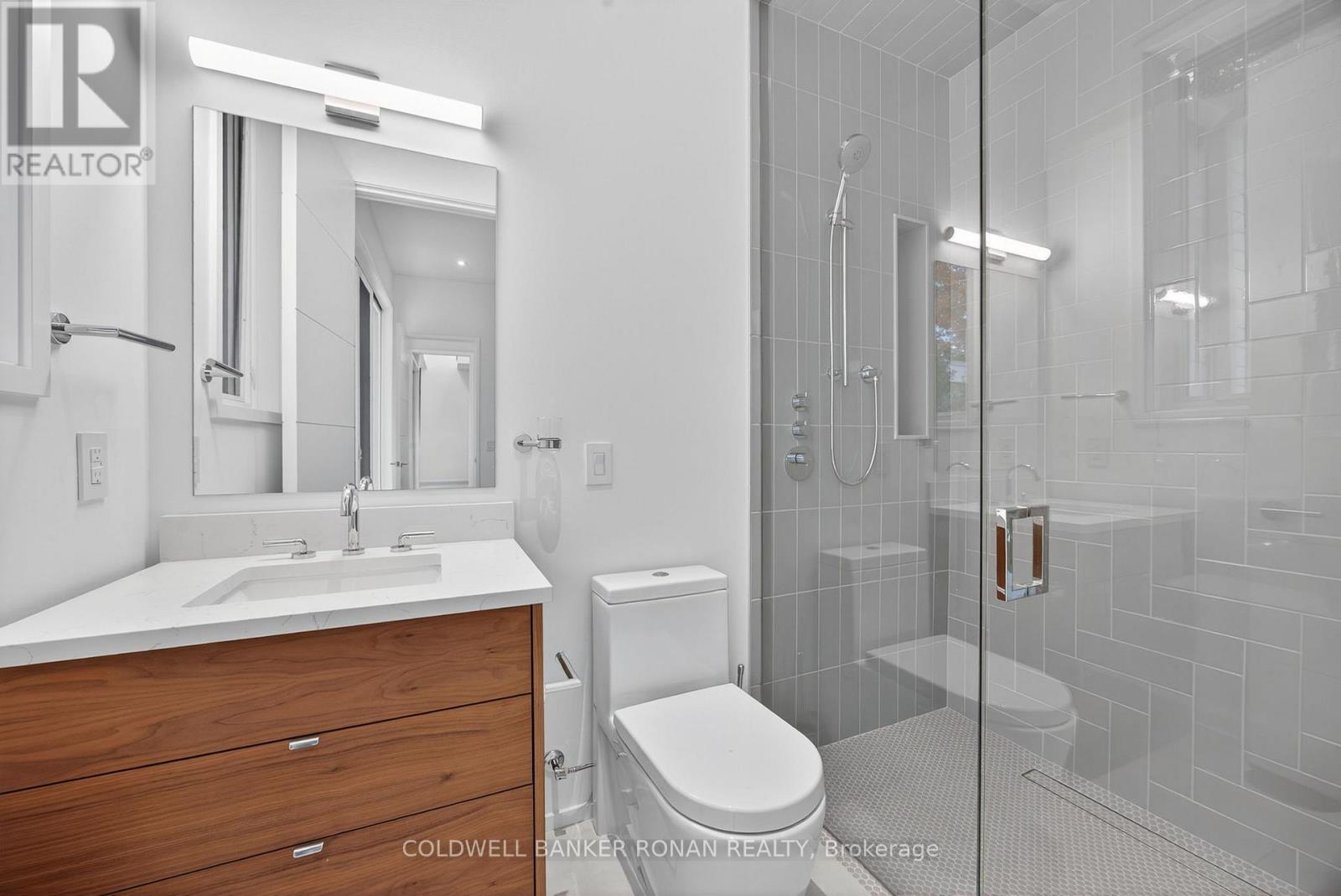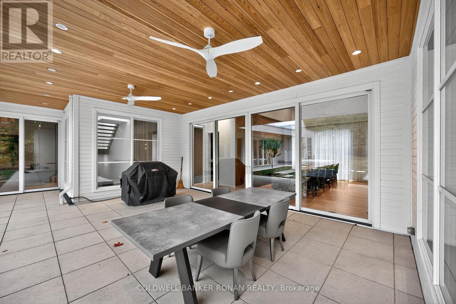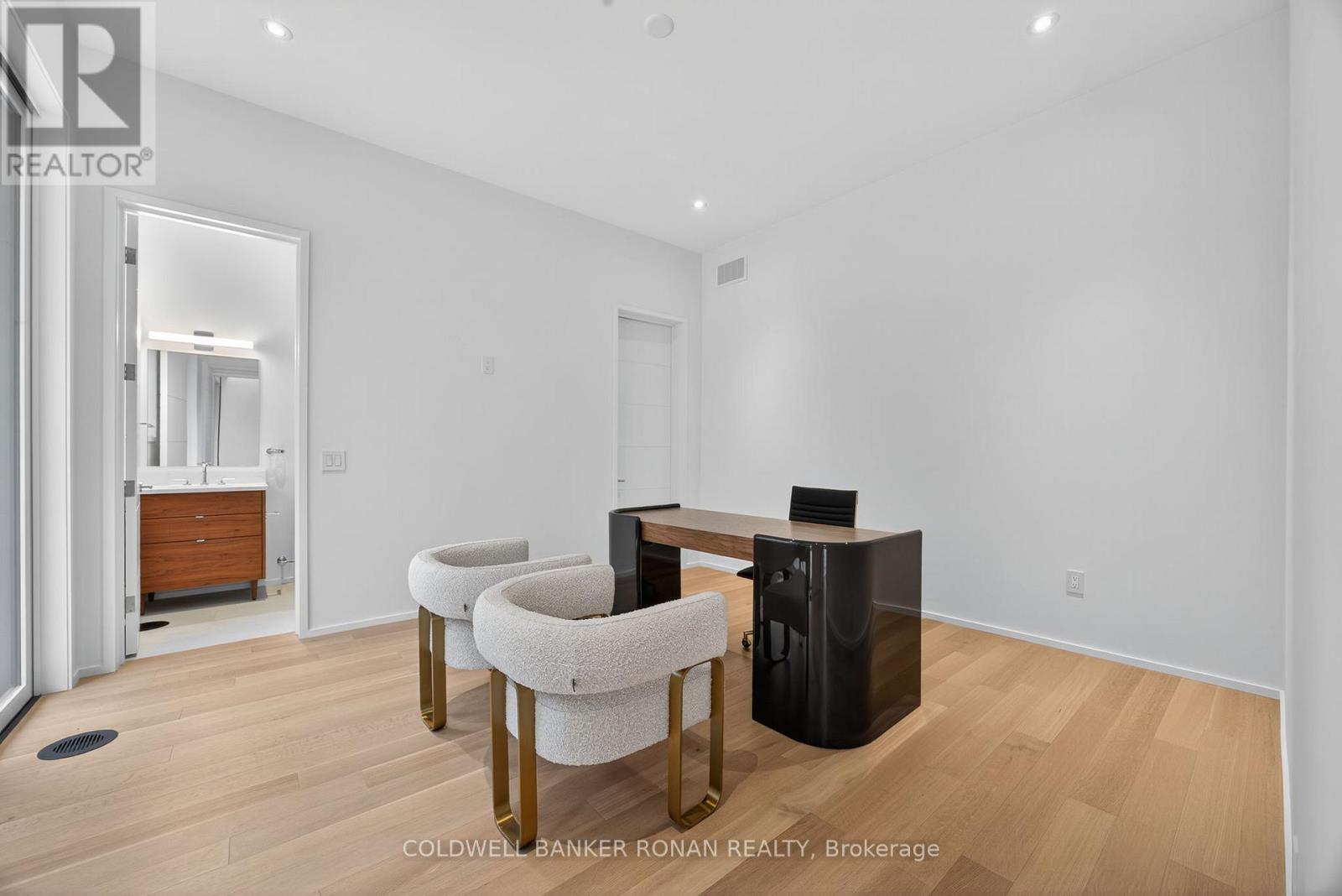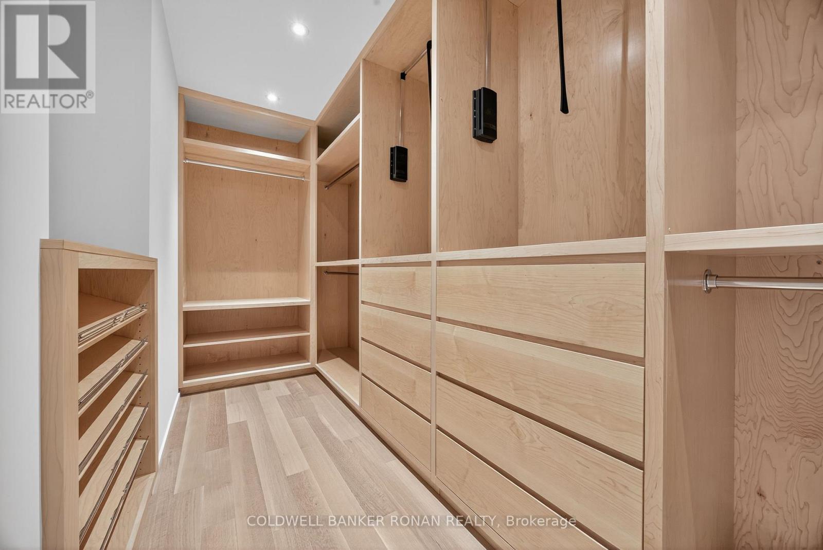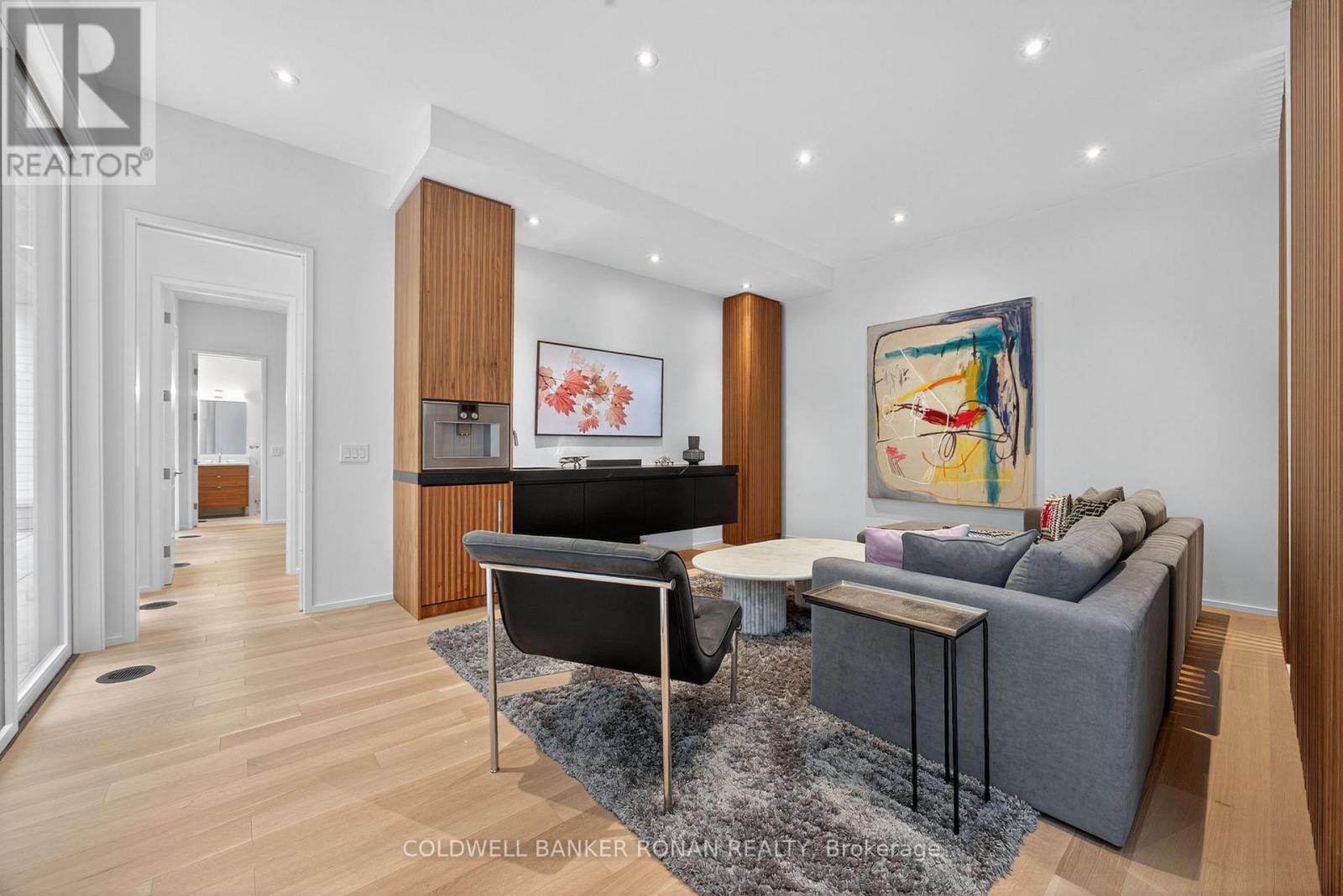 Luxury living in this breathtaking Forest View Home, crafted by Georgio Lolos Designs w/ interiors curated by ABella Design Inc. This stunning property is built with an eye for elegance & functionality. Step into the home through a custom wood slatted wall foyer. Six skylights flood the space with natural light. Open riser, Hollywood stairs w/ sleek glass railings lead to a private bedroom retreat over the garage. Specialty lighting highlights the grandeur of the 18-foot A-frame vaulted ceiling in the main living area, creating an inviting ambiance around the 50" gas fireplace clad in black soapstone. The home showcases 6' White Oak flooring throughout for a seamless & warm finish. The powder room impresses w/ a Starck wall-hung toilet, integrated marble sink & an exquisite book-matched Bianco Lasa marble wall. The heart of the home features a dream kitchen, equipped w/ walnut cabinetry, an impressive 14-foot waterfall island & a handcrafted 50' Julien sink. Grey Lilac marble adorns the kitchen & pantry, complemented by full-slab backsplashes. Cooking is elevated w/ a 36' Gaggenau induction cooktop, 30' Gaggenau wall oven, fully integrated 36' Thermidor fridge & Bosch dishwasher. The custom range hood & gold fixtures adds an elegant touch while a wine fridge in the pantry & a wall mounted pot filler over the stove round out the space's luxury. The TV lounge features a built-in Gaggenau coffee maker & beverage fridge, elegantly integrated into custom cabinetry & a sophisticated walnut accent wall. Each bedroom offers an ensuite bathroom & custom closets. Primary ensuite is a private oasis w/ custom wall hung vanity, a luxurious Knief, K-Stone tub, a wall-mounted AeT DOT 20 Italia toilet, an oversized shower towel warmer. Laundry room is carefully designed, with beautiful cabinetry, clothes drying area & a custom dog wash station. A must see property for those seeking a refined yet comfortable living experience. (id:4555)