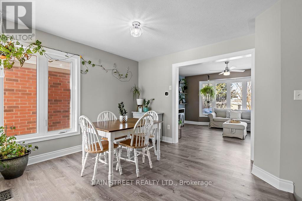 Welcome to this beautifully updated and exceptionally well-maintained 3-bedroom, 3-bath home in a sought-after, family-friendly neighbourhood in Alliston, just steps to schools, trails, parks, and everyday amenities. At the heart of the home is a fully renovated kitchen designed for both everyday living and entertaining. Featuring quartz countertops, stainless steel appliances, and a spacious eat-in peninsula, this bright and functional space flows seamlessly through an oversized sliding door to the backyard. Step outside to a large two-tiered deck overlooking the private, landscaped yard and peaceful greenspace beyond, creating the perfect extension of your living space during warmer months. Modern, matching flooring runs throughout the main and upper levels, while durable vinyl flooring completes the finished basement bonus area, ideal for a playroom, home office, or additional family room. Upstairs, the spacious primary bedroom offers a large walk-in closet and a private ensuite with picturesque views, creating a comfortable retreat at the end of the day. Many high-end upgrades include all brand new windows in 2022. Beautifully landscaped front and back, and complete with an interlock driveway providing extra parking, this impeccably maintained home is truly move-in ready, offering the space, setting, and lifestyle families are searching for in Alliston. (id:4555)