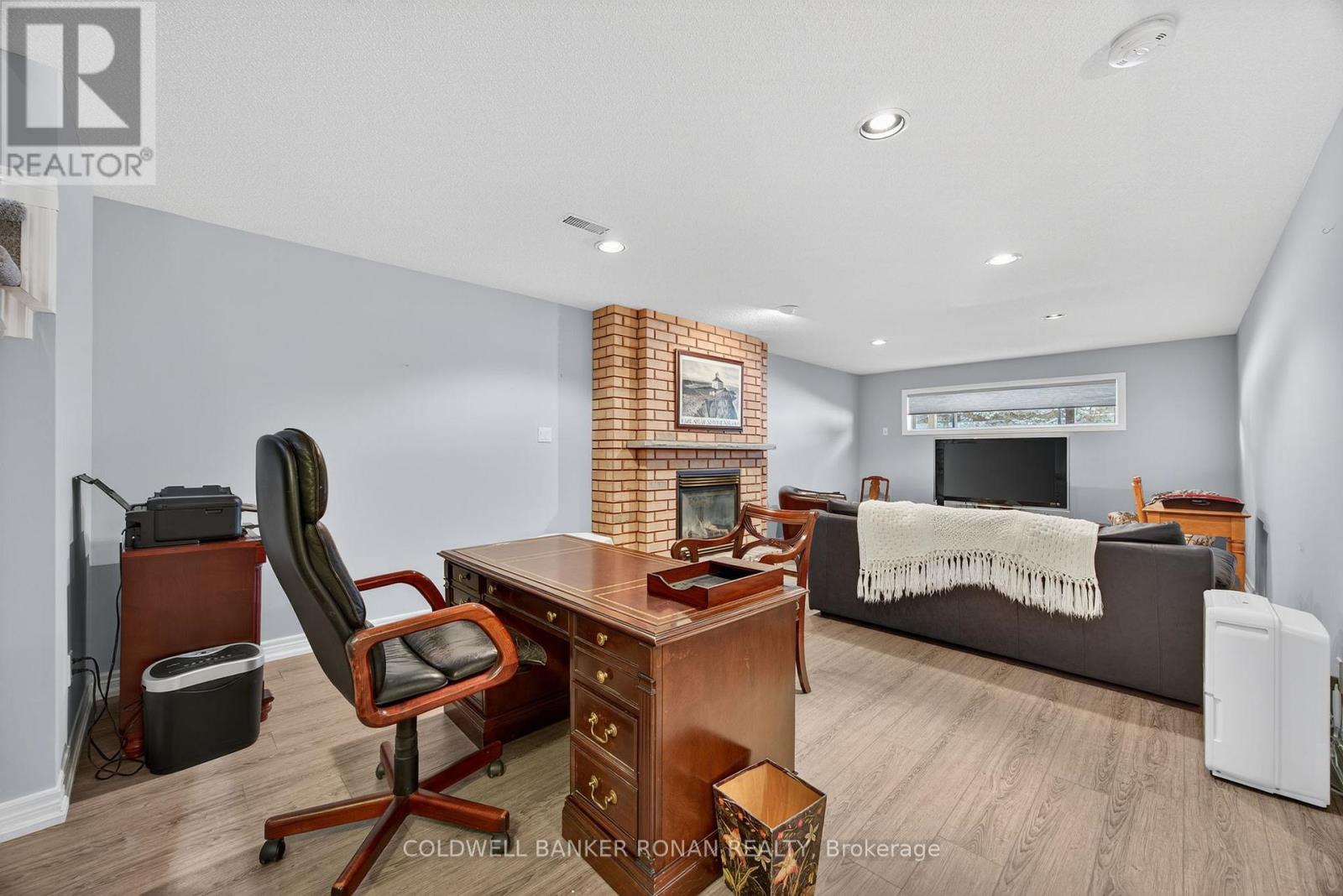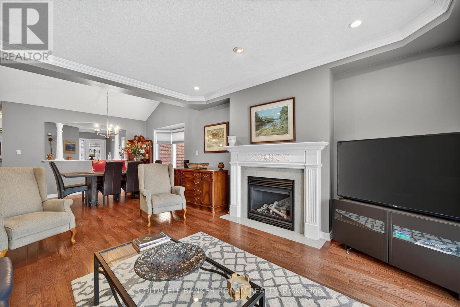 Charming Detached 1+1 Bedroom Bungalow Overlooking the Golf Course. This beautifully maintained bungalow offers peaceful living with a private deck backing onto the golf course. The primary bedroom features hardwood flooring, double closets, and a private ensuite. The bright eat-in kitchen includes ample cabinetry and a large bay window. The combined living and dining area boasts hardwood floors, a cozy gas fireplace, and a walkout to the deck. Convenient main-floor laundry is included. The lower level extends your living space with a spacious family room, an additional bedroom, and generous storage areas. The home also includes a single-car garage and an interlock driveway with parking for two vehicles. Enjoy all the amenities of the Briar Hill community while being just minutes from the town of Alliston. (id:4555)