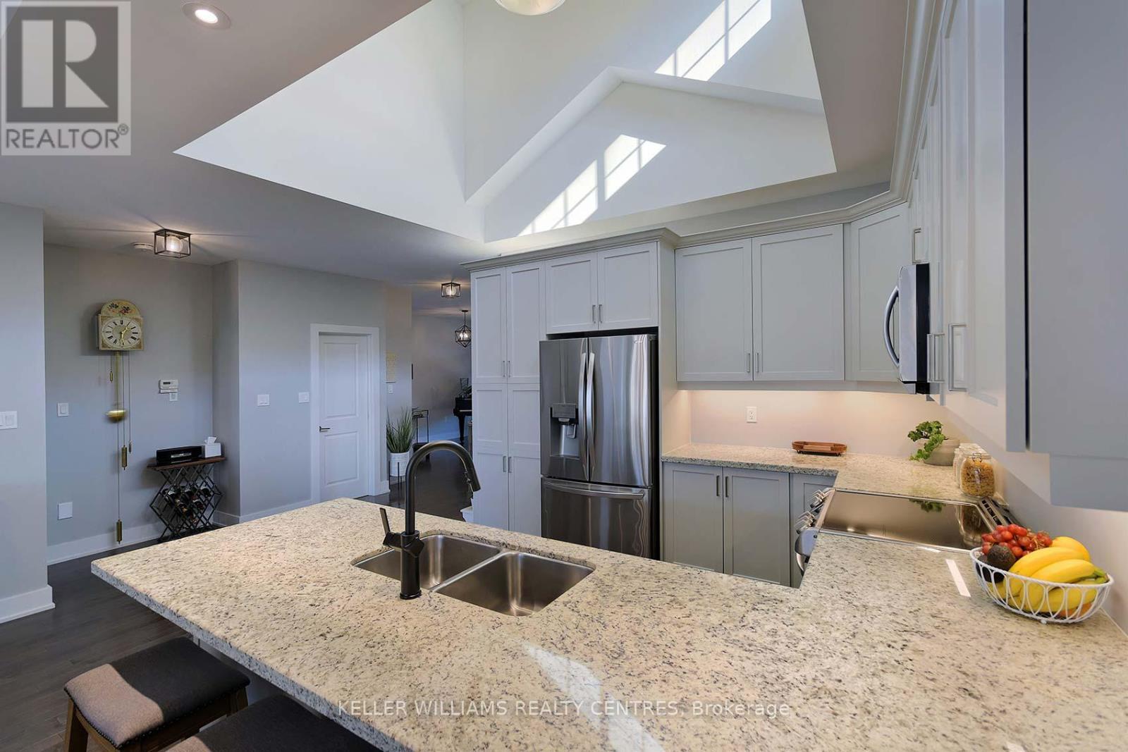 Bright and spacious 5-year-old home with a fantastic floor plan, 9' ceilings on the main floor, walk-out basement, and parking for four vehicles. Units are joined at the garage for added privacy. Enjoy your morning coffee on the sunny front porch, then step inside the welcoming foyer, or use the convenient entry from the garage.The kitchen is filled with natural light from a soaring vaulted ceiling and dormer window, featuring a huge granite peninsula, perfect for entertaining. There's room for a large dining table and an open-concept living room with a gas fireplace and walkout to the west-facing deck, complete with BBQ gas hookup. A convenient powder room is available for guests.The primary bedroom shares the same west view and includes a 3-pc ensuite with a walk-in shower.The fully finished basement offers a bright second bedroom, huge recreation room with fireplace, ample storage and a walkout to a private west-facing patio-ideal for relaxing outdoors. There's also a den area perfect for a home office, a full 4-pc bathroom, and a fully finished laundry room with extra storage. Garage access to the back yard and patio adds convenience.Enjoy easy living in Briar Hill, where lawn care, window cleaning, and exterior maintenance are handled for you. A vibrant community offering golf, arts, music, and social events-everything you need for an active, carefree lifestyle! The possibilities for connection and enjoyment are endless. (id:4555)