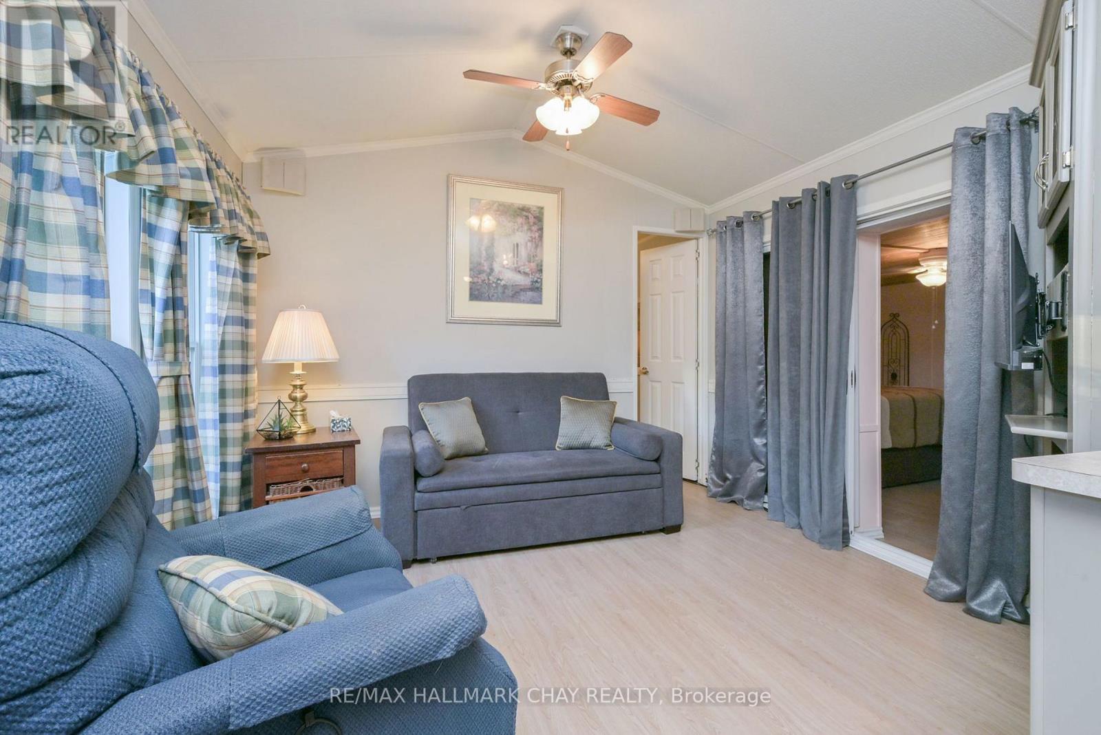 Affordable Year-Round Living at Rolling Acres Campground! Discover comfort and convenience in this beautifully maintained 2-bedroom, 1-bathroom home, featuring a bonus room perfect as a 3rd bedroom, home office, or extra storage. This versatile space adapts to your needs, whether you're downsizing, retiring, or simply seeking a peaceful escape surrounded by nature.Step into the open-concept kitchen with ample cupboard space ideal for cooking and entertaining. The spacious living area flows seamlessly out to a massive deck overlooking the scenic Nottawasaga River, offering tranquil views and the perfect spot for morning coffee or evening relaxation.Oversized Master bedroom with cozy gas fireplace! 2 Garden Sheds perfect for additional storage space. Located just minutes from Alliston, Honda of Canada Manufacturing, and the Nottawasaga Inn Resort, this home combines rural charm with convenient access to local amenities.Whether youre looking for affordable year-round living, a retirement retreat, or a nature lovers haven, this property checks all the boxes- Gated community with check-in attendant! Monthly fees roughly $730 + HST (includes water, septic pump outs, garbage and property taxes) (id:4555)