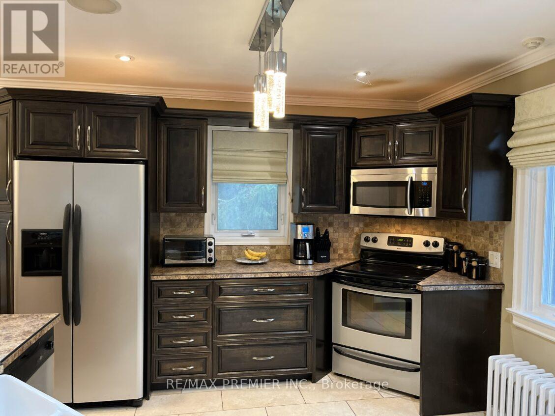 Welcome to this beautifully maintained bungalow in the heart of Old Newmarket! Just a short walk from downtown amenities, Fairy Lake, Trails, and the GO Station. This home combines modern updates with classic charm. Step into the natural light-filled open concept home, newly renovated kitchen featuring a breakfast bar, pot lights, ceramic flooring, and a stylish backsplash, with Stainless Steel Appliances. The main level showcases a huge family room with gorgeous hardwood floors, and crown moldings, enhancing the home's character. A four-piece bath with a deep soaker tub and two large spacious bedrooms and closets complete the main floor. Access to rear deck and yard, with convenient two entry doors. The finished lower level offers a spacious rec room with a built-in entertainment unit, 2 entry doors to the heated garage, a third bedroom, a brand-new three-piece bath, and bright new laundry room. Outside, enjoy a double-tiered deck at the front and rear, perfect for outdoor gatherings. The Home Also boasts a private, treed backyard, with garage access, and a w/o to an attached garage for added convenience. Don't miss the chance to lease this charming property that perfectly balances location, modern amenities, and cozy living. (id:4555)