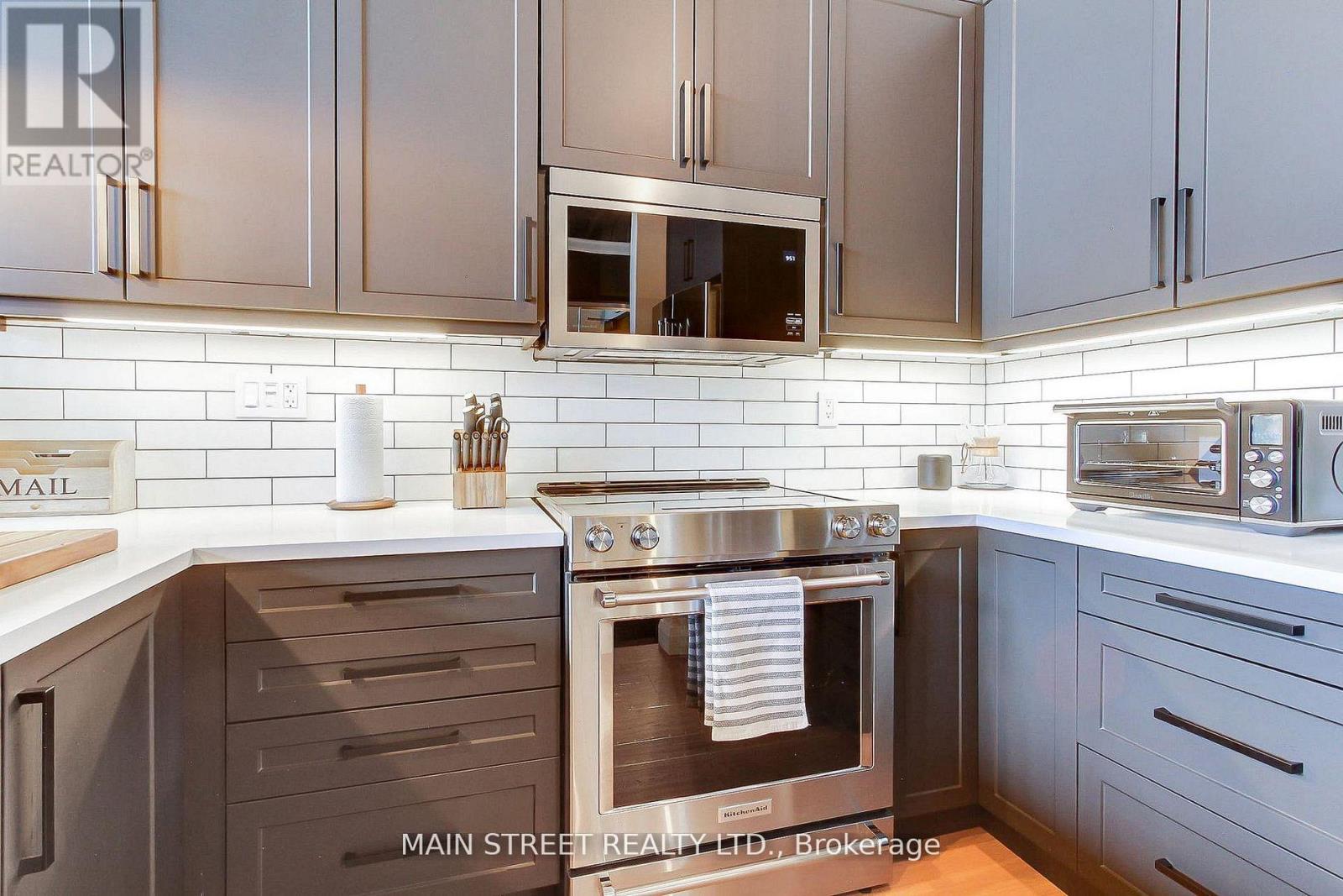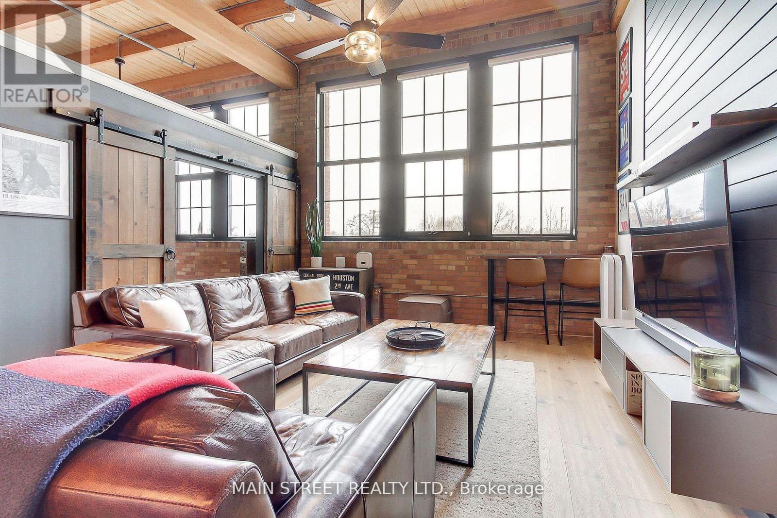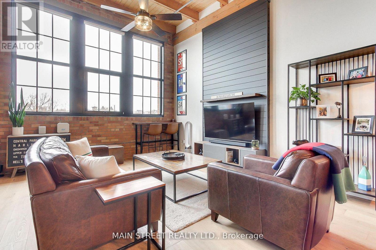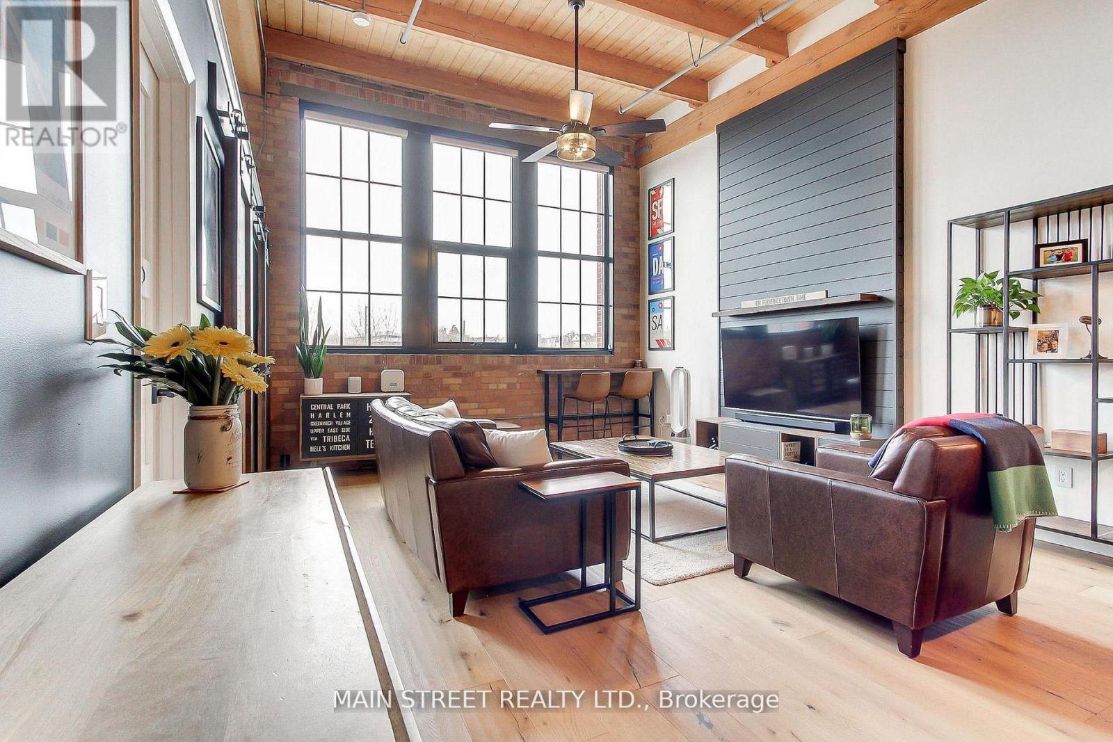 Welcome to Unit 310 at 543 Timothy Street - a stylish loft in the heart of Newmarket, offering modern living with urban flair. This bright and open-concept suite features soaring ceilings, large windows, and an efficient layout perfect for professionals, downsizers or first-time buyers. The newer kitchen is beautifully updated with contemporary finishes, ample cabinetry, and generous quartz waterfall counter, ideal for cooking and entertaining. The renovated bathroom adds a fresh, spa-like touch to everyday living. Enjoy the convenience of in-suite laundry, 2 dedicated parking spots one surface and the other underground, and a well-managed building just steps from Main Street shops, restaurants, trails, and transit. A fantastic opportunity to own a move-in-ready loft in one of Newmarket's most walkable locations. Recent renos are Kitchen, Faucets, Quartz Waterfall Counters, Ceramic Backsplash, Appliances, Light Fixtures, Bathroom, Engineered Hardwood Floors and top of the line Custom Barn Doors. An exceptional west exposure delivers panoramic sunset views of Historical Downtown Newmarket and radiant natural light throughout the day. Black Upgraded Interior Windows. New windows were installed last year, and included in the maintenance fee is $240 to pay off remaining loan balance for approx 4 years. Amenities included are Gym, Top floor patio with 2 BBQ, Theatre room, Games Room, Board meeting room, Large party room with a professional kitchen. (id:4555)