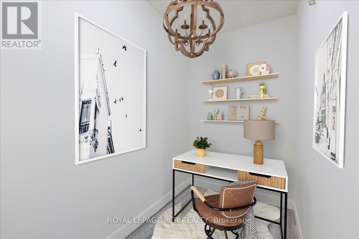 Beautifully upgraded and move-in ready, this bright 1 + 1 bedroom, 1-bath condo offers unbeatable value in central Newmarket. Featuring engineered hardwood floors throughout the living/dining area, main hall, and bedroom, plus updated baseboards and freshly painted with a modern paint colour. The open-concept living and dining space flows to a west-facing balcony with sweeping views and evening sunsets. Enjoy a spacious, modern kitchen with abundant cabinetry, lots of counter-space, a glass backsplash and new stainless steel fridge (2025). A large bonus space is ideal as a home office, walk-in pantry, or extra storage. Updated 4-piece bathroom, newer windows, and a new patio door enhance this condo is move-in ready. One outdoor parking space and one locker included. Prime location steps to Upper Canada Mall, GO Station, restaurants, shops, parks, schools, and just minutes to Hwy 404 or Hwy 400. Perfect for first-time buyers or those seeking affordable living in a thriving, walkable community. Pride of ownership throughout! **Pictures have been virtually staged** (id:4555)