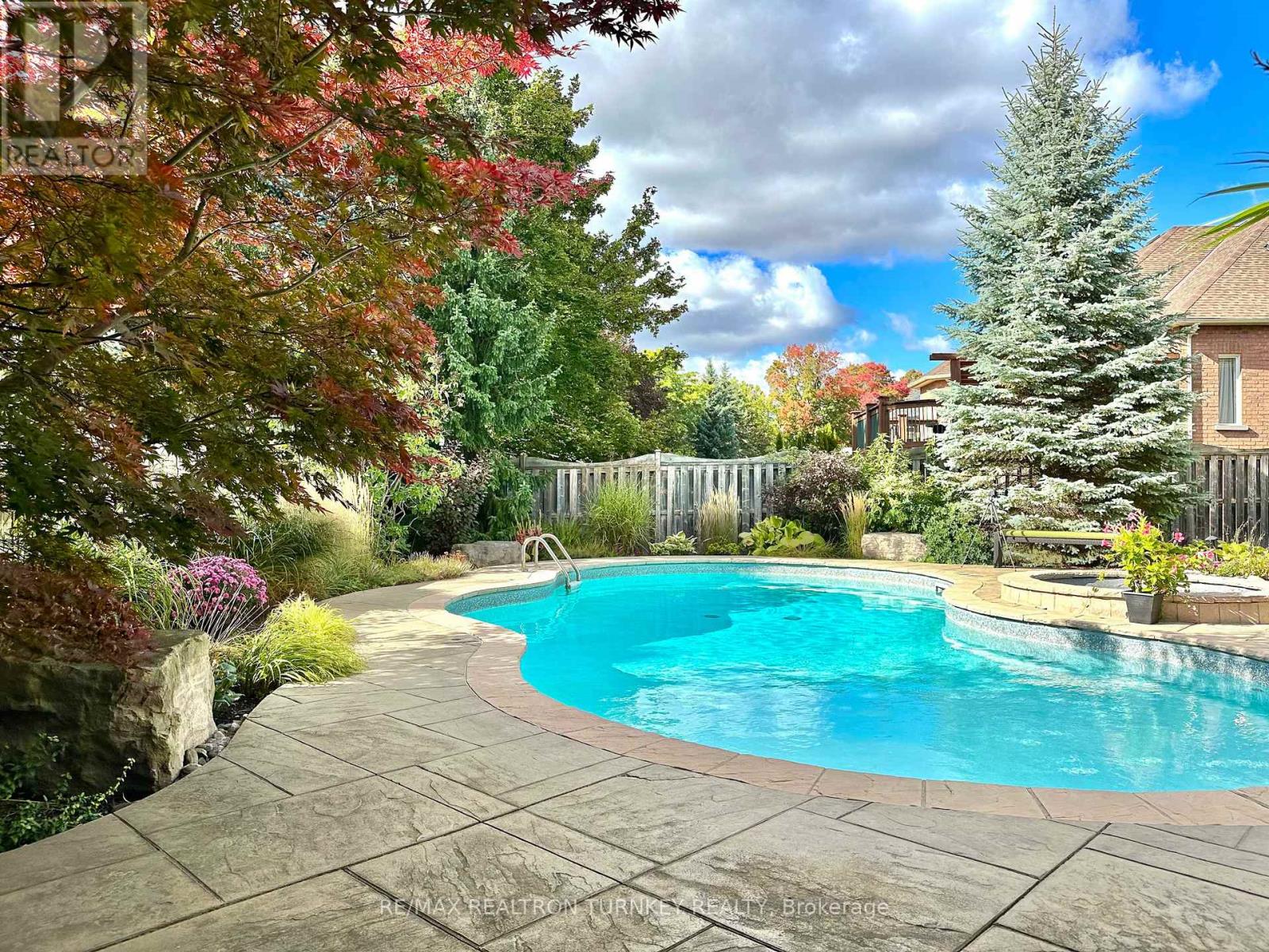 Discover a rare offering in one of Newmarket's most prestigious neighbourhoods! This exceptional move-in ready family home in Stonehaven offers both elegant living and a resort-inspired backyard retreat. The perfect blend of luxury & comfort with over 4,500 sq ft of beautiful living space. This 4+1 bedroom, 3-bathroom home with a 3-car garage sits on a generous 58x138 ft lot with great views. Thoughtfully upgraded with inviting and functional spaces for everyday life & unforgettable entertaining. You'll appreciate the stunning engineered hardwood floors throughout the main and upper levels (2025), complemented by beautifully renovated bathrooms including the spa-like primary ensuite (2025), upper bath (2026), and powder room (2020). The chef's kitchen features sleek white cabinetry, Corian countertops, stainless steel GE Profile gas range & double wall ovens, breakfast bar, and spacious eat-in area, flowing into the large sun-filled family room with vaulted ceilings & cultured stone gas fireplace. Walk out from this perfect gathering space to the elevated deck overlooking your private backyard oasis. Designed for both relaxation and entertaining, the private and peaceful backyard features a saltwater pool with overspill hot tub, sunset-facing cabana, generous lounge area, and lush landscaping. The finished open-concept basement (2021) features a large entertainment/media zone, fitness space, pot lights, hardwired HDMI, abundant storage, and rough-in bath. Additional highlights include a main floor office (with integrated Murphy Bed to double as guest room), formal living and dining rooms, and a laundry/mudroom with front-load washer & dryer (2022). Major upgrades ($300K+) add lasting value throughout the property. Embrace your chance to own a truly special home with convenient access to Newmarket's best schools and amenities, and highway 404. Are you ready to enjoy sun-filled days, afternoon swims, sunset hot tubs & peaceful evenings in your own private retreat? (id:4555)