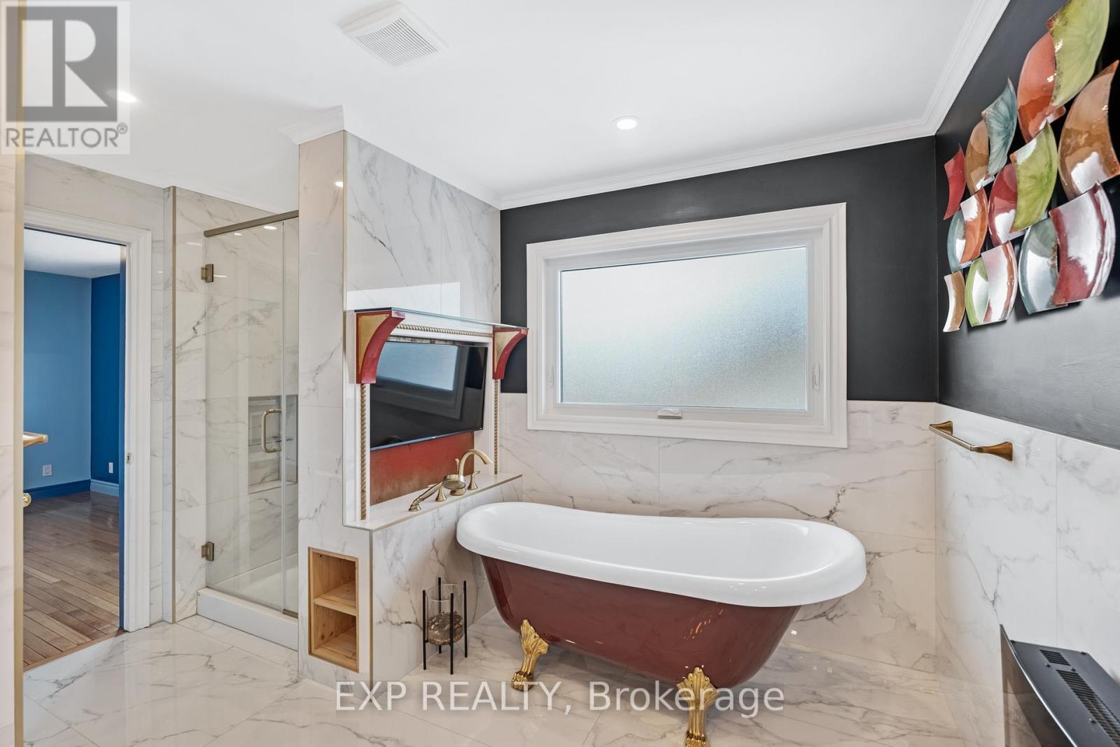 Welcome to this beautifully appointed home in a highly desirable, family-friendly neighbourhood close to schools, parks, and shopping. Designed for everyday comfort and effortless entertaining, this spacious residence offers four generously sized bedrooms and four bathrooms, plus a convenient powder room in the pool house. The main level features a large eat-in kitchen, separate dining room, private office, and additional playroom-ideal for growing families and work-from-home living. An upper-level laundry room adds convenience, complemented by a second laundry area. The expansive mudroom offers ample storage and a built-in dog washing station, thoughtfully designed for busy households. The beautifully renovated primary retreat is a true standout, complete with a private deck, cozy gas fireplace, renovated ensuite, and an impressive walk-in closet/wardrobe (formerly a fifth bedroom). A cedar closet and intercom system in the bedrooms further enhance comfort and functionality. Bedrooms three and four share a Jack-and-Jill semi-ensuite. The fully finished basement features a separate entrance, kitchen, bedroom, and bathroom-ideal for extended or multi-generational living. Step outside to your private backyard oasis with an in-ground saltwater pool and pool house with its own powder room. The pool has been extensively updated with a new salt cell (2024), heater (2025), filter (2025), and a liner scheduled for Spring 2026. Major updates include all-new windows (2020), roof (2017), furnace and hot water tank (2016), and air conditioner (replaced in 2025). Meticulously maintained and thoughtfully updated throughout, this home truly has it all. (id:4555)