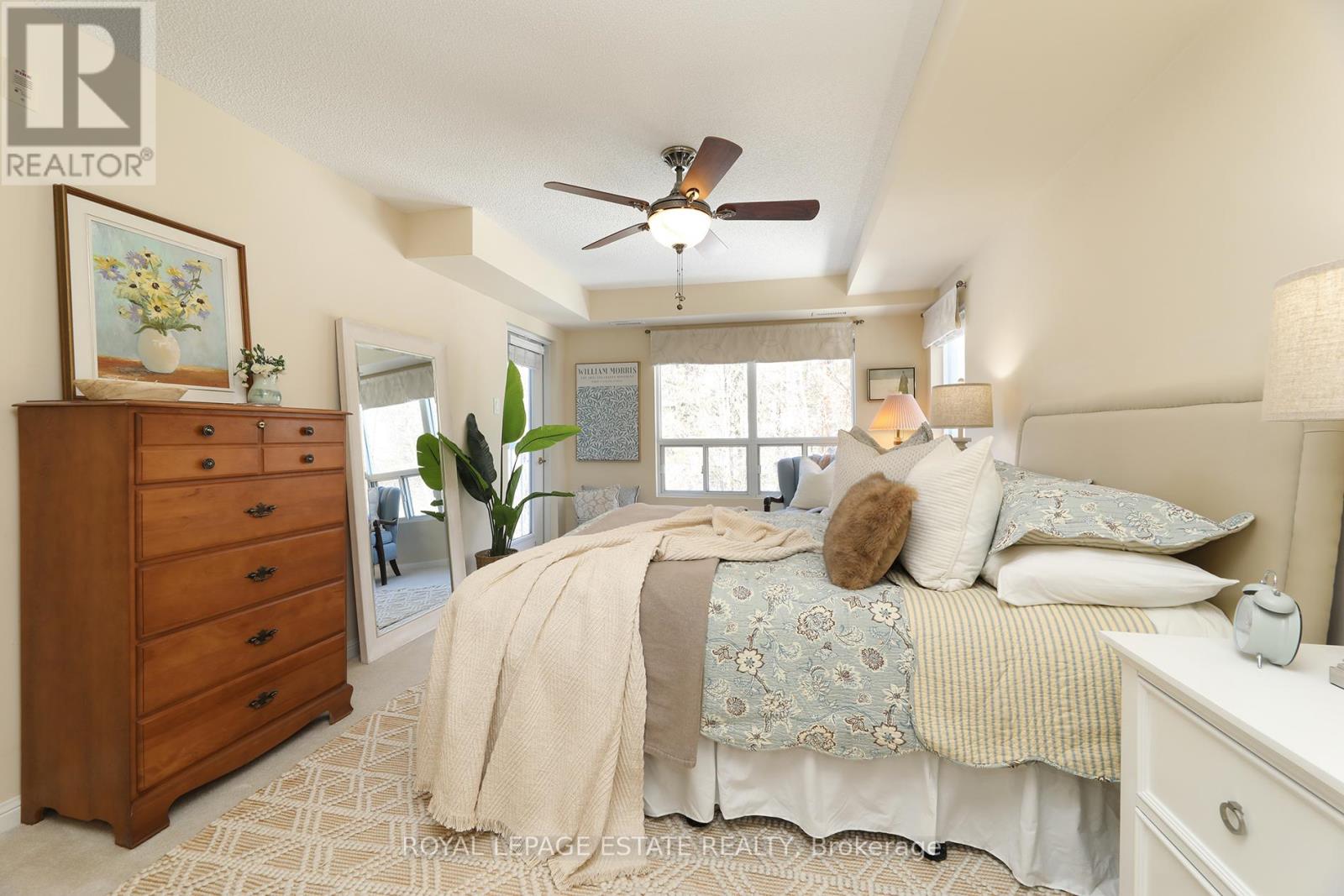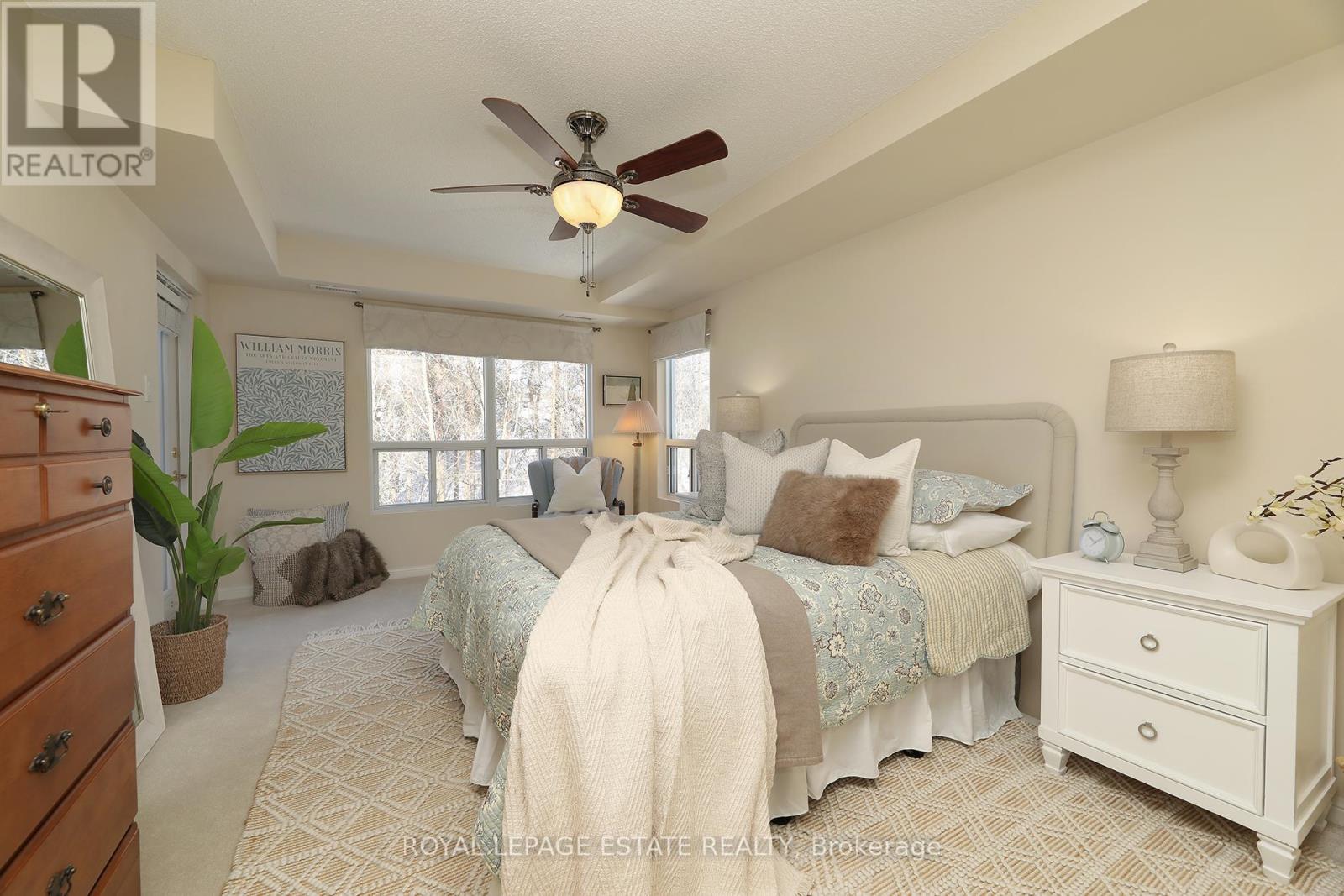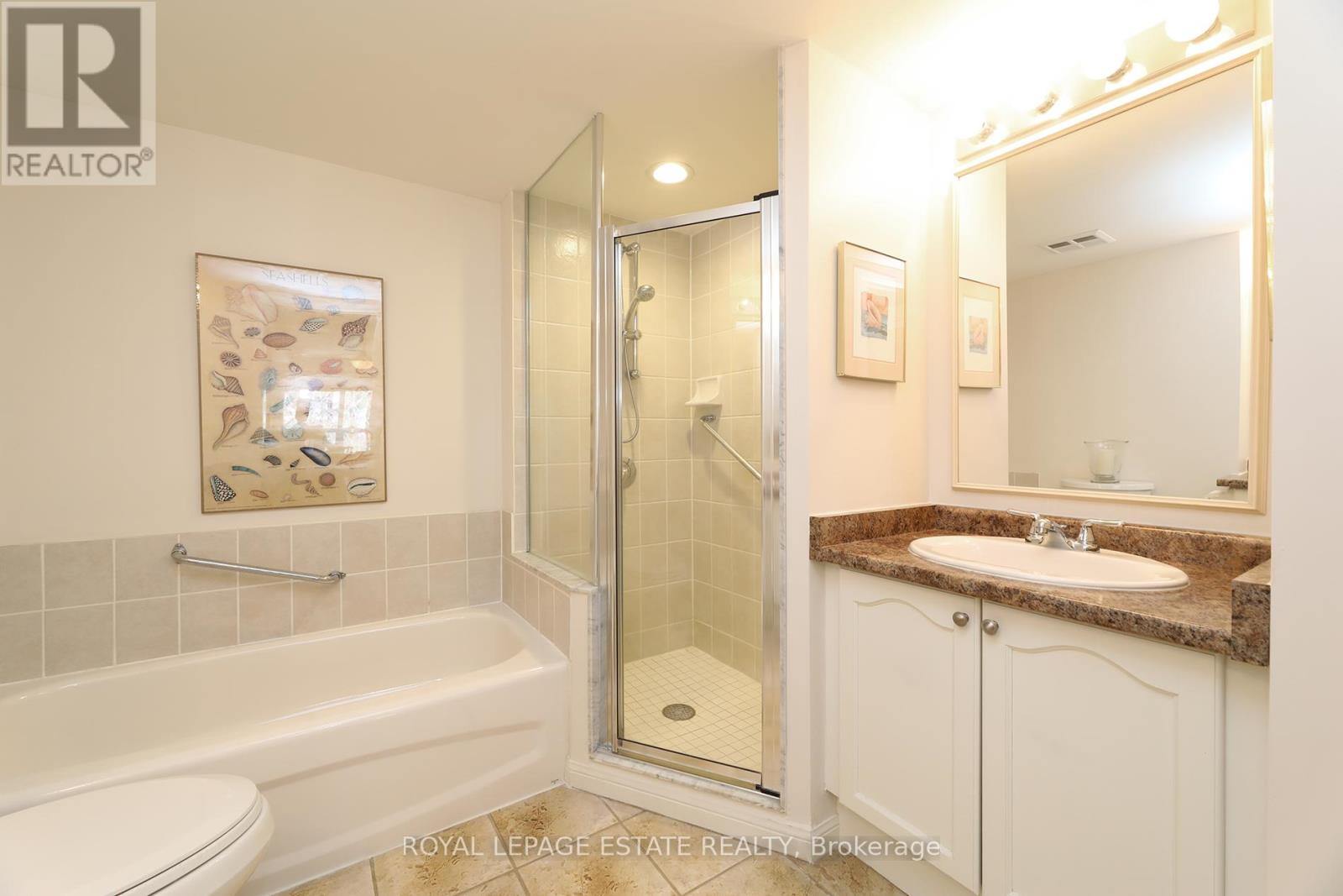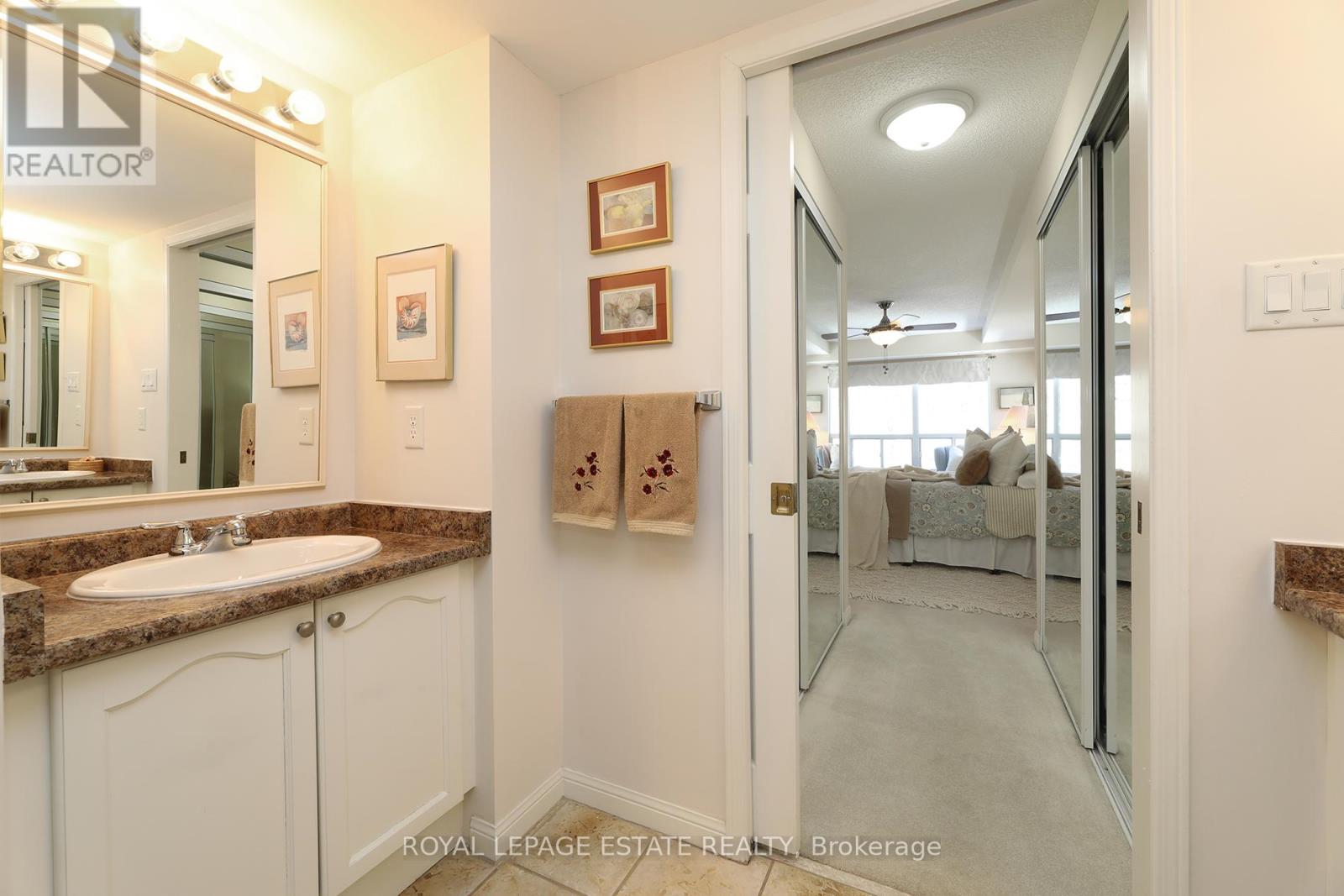 Welcome home to Reflections on Bogart Pond, a peaceful, adult-oriented community surrounded by mature trees, scenic walking trails, a tranquil pond, and river. This beautifully updated 2-bedroom, 2-bath condo offers 1,126 sqft. of thoughtfully designed move-in-ready living space with a desirable split floor plan and a large private balcony overlooking a lush forest. The updated kitchen features quartz countertops, quality cabinetry, and stainless-steel appliances, flowing seamlessly into a spacious living area and a separate dining room with plenty of room for your dining room table. The generous primary suite offers balcony access with an invisible screen, his-and-hers mirrored closets, and a large 5-piece ensuite bathroom. A second bedroom is privately positioned beside a full bath, ideal for guests, den or a home office. Residents enjoy an exceptionally welcoming community with social activities and amenities including large party room with outdoor patio, BBQs, full kitchen, library and pool table, that make it easy to connect and truly feel at home. Conveniently located near Highway 404, shopping, restaurants, and all of Newmarket's amenities, this is an outstanding downsizer opportunity offering comfort, connection, and lifestyle. (id:4555)