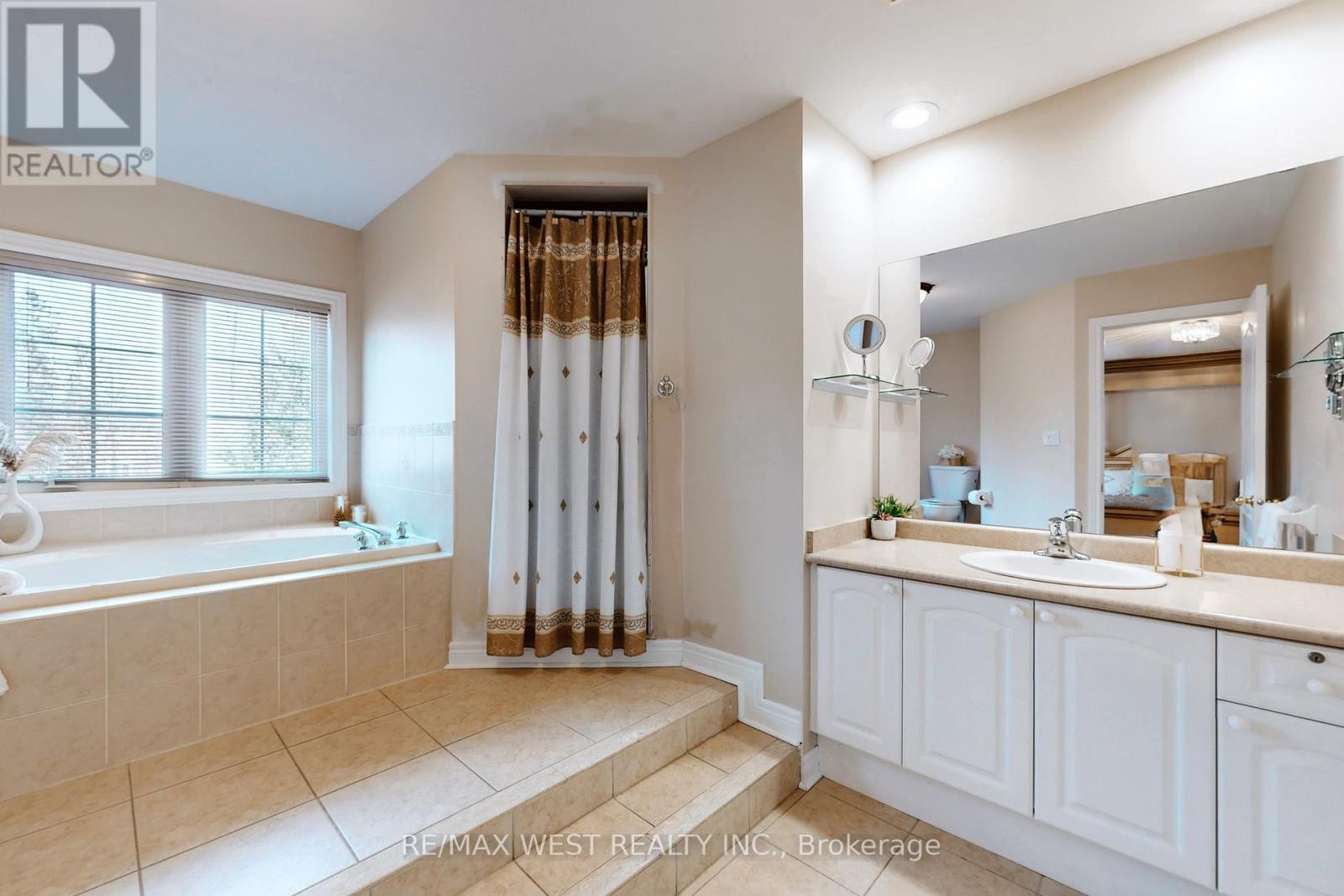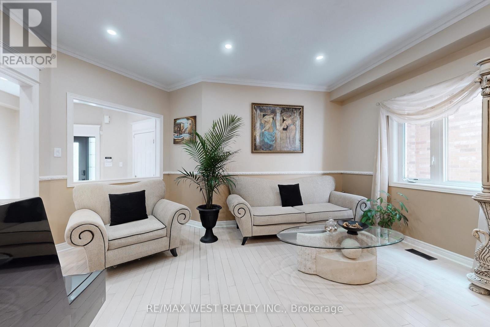 Welcome to this elegant Acorn-built home in sought-after Summerhill Estates, offering over 3,200 sq ft of beautifully finished living space designed for family living and entertaining.The main level features 9-ft ceilings, hardwood floors, decorative casings, and an upgraded front door with frosted glass. Spacious principal rooms create a warm, sophisticated feel, including a formal living/dining room with crown moulding. The inviting family room showcases a 10-ft raised ceiling, marble fireplace, and large windows for abundant natural light.The eat-in kitchen offers stainless steel appliances, upgraded cabinetry, dark granite countertops, and a ceramic backsplash, with a French door walkout to a fully fenced backyard featuring perennial gardens and an interlock patio.An oak staircase with skylight leads to four generous bedrooms. The primary suite includes a walk-in closet and 4-piece ensuite, while the sunken fourth bedroom with cathedral ceiling offers flexible use as a bedroom, family room, or guest space.The finished basement provides an open-concept rec or fitness area with hardwood flooring, pot lights, mirrored accent wall, plus storage, cold room, and laundry with newer washer/dryer.Major updates (within 5 years): shingles, furnace, A/C, and central vac.Ideally located near schools, parks, shops, transit, and Hwy 400-this home offers the perfect blend of space, elegance, and convenience. (id:4555)