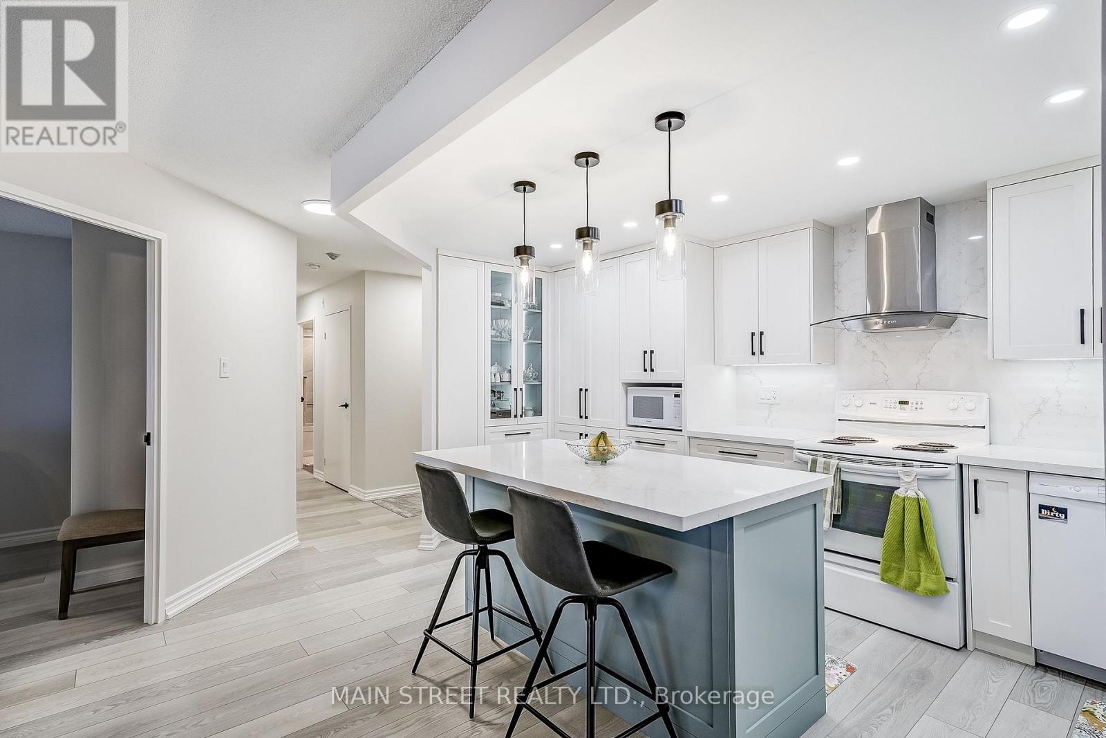 Welcome to 250 Davis Dr, Newmarket, "The Atwood Condominium", This recently renovated 1160 sq.ft., 2 bedroom condo, with amazing new white kitchen cabinets & Quartz countertops and backsplash, Bright pot lighting over the center island, undercabinet lighting and much more, Bosch dishwasher, LR & DR combination, new laminate flooring throughout, LR window has electric blinds, west exposure, 1-4pc and 1-3 pc fully reno'd baths, solarium area off bedroom, 1 underground parking, visitor parking, Great for entertaining, Walk to Main Street and Dining/Entertainment, Don't miss out, A must to see! (id:4555)