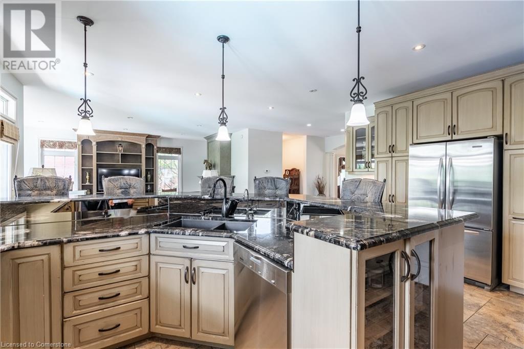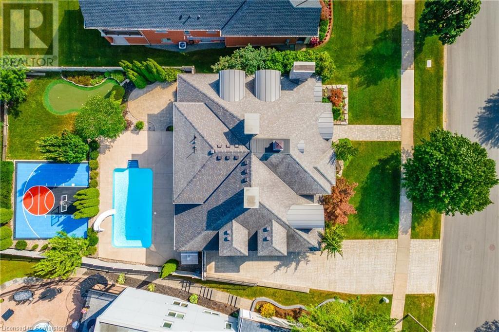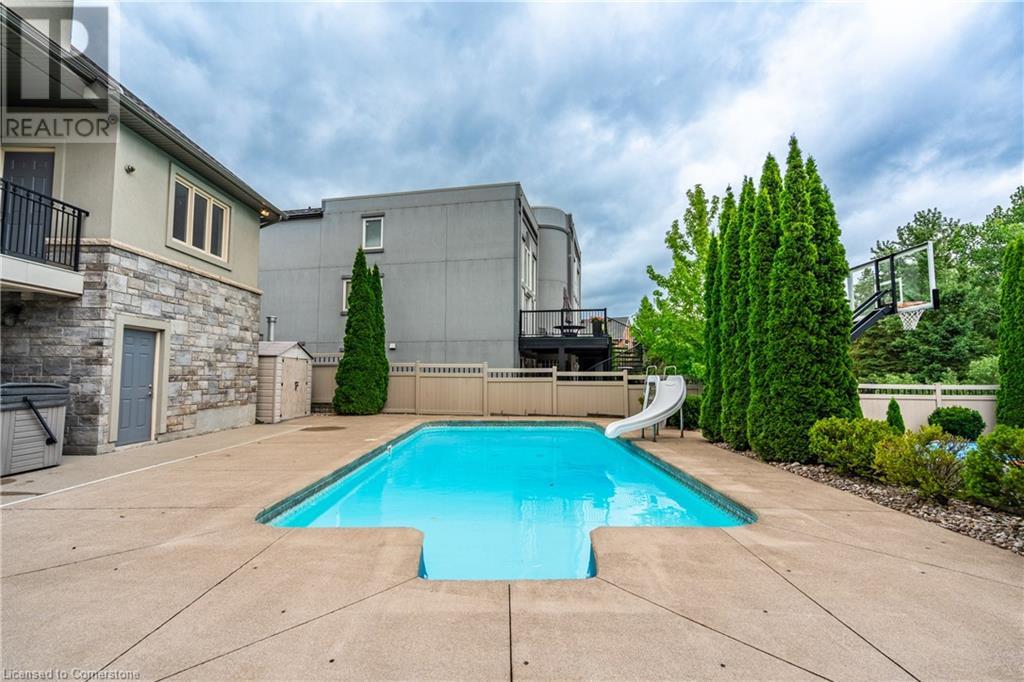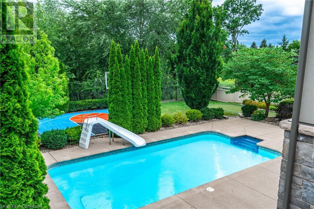 Welcome to 3542 Matthews Drive — a stunning custom-built estate in one of Niagara Falls’ most prestigious enclaves. This meticulously designed home offers the perfect balance of refined elegance, comfort, and unforgettable outdoor living, all backing onto a serene ravine setting. From the moment you arrive, you’ll be captivated by the grandeur and thoughtful layout of this residence. The main floor features a private home office with custom built-ins, ideal for professionals or those working from home. A sunken living room with a gas fireplace and expansive windows fills the space with warmth and natural light, while the open-concept kitchen is a chef’s dream — complete with built-in appliances, an abundance of counter space, stylish storage solutions, and a peninsula breakfast bar perfect for entertaining. Upstairs, you’ll find four generously sized bedrooms, each with massive closets, including a primary retreat with a spa-inspired ensuite that invites you to relax and unwind in luxury. The fully finished walk-out basement adds even more living space with a fifth bedroom, wet bar, dedicated guest area, ample storage, and direct access to the backyard. Step outside to your own private resort-style paradise, featuring a large in-ground pool with slide, hot tub, putting green, and a half-court basketball area — all set against a beautifully landscaped backdrop that backs onto a peaceful ravine. Additional highlights include a finished 4-car garage, classic finishes throughout, and a layout that blends sophistication with everyday functionality. This is more than a home — it’s a lifestyle. Don’t miss your chance to own one of Niagara Falls’ finest properties. (id:4555)