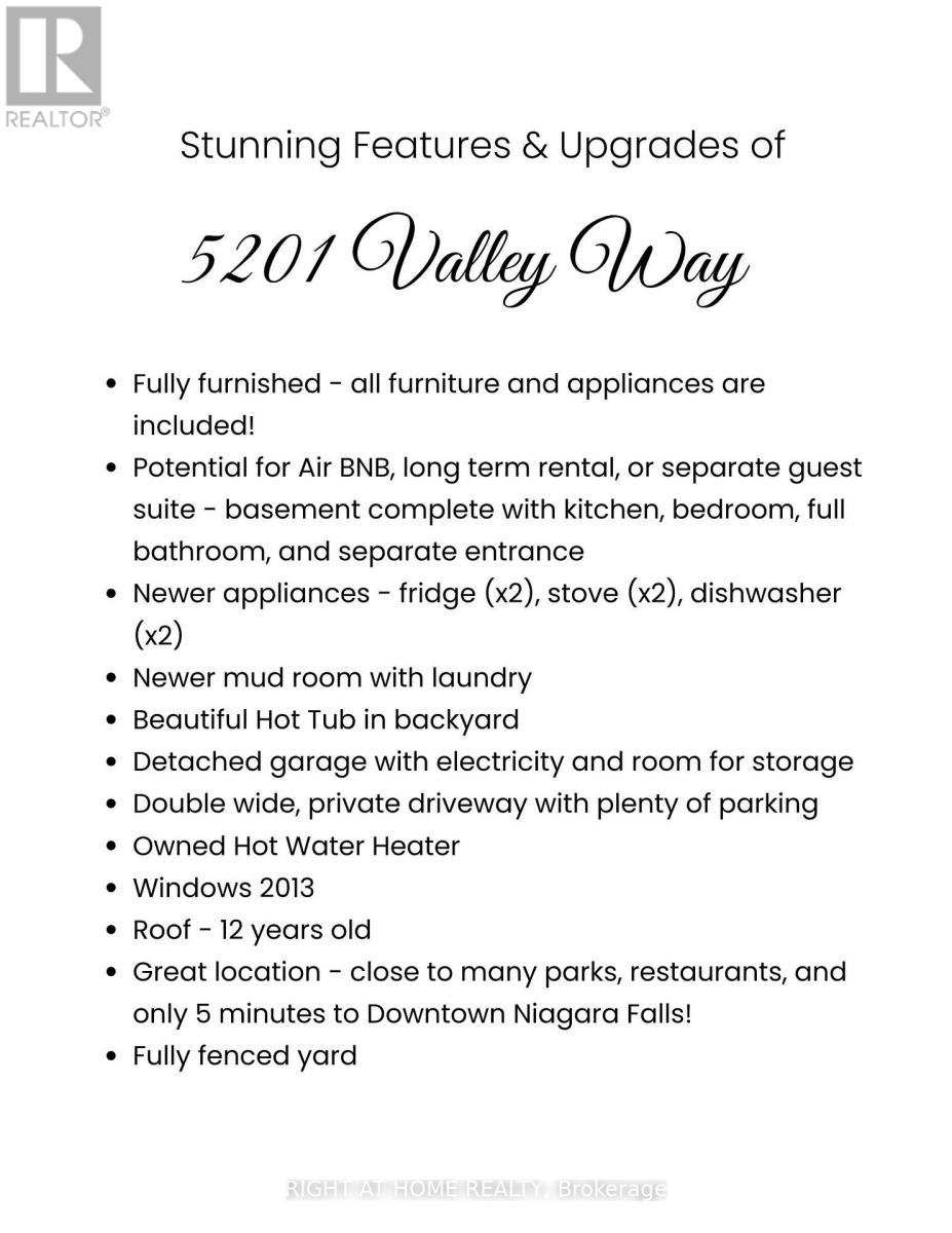 BE FIRST! to view this stunning, all-brick bungalow in Niagara Falls. You will not find another with all this has to offer! See photo #3 for features. This home has had all the upgrades done. Just move right in. Appealing to different lifestyles. Main floor living plus lower level 1 bedroom apartment for fabulous rental income or extended family. Situated on a gorgeous boulevard, in the quiet part of the neighbourhood. Kitty corner, to a lovely park. Inside on the upper floor, you will find a newer kitchen, stone countertops, built-in appliances, eat-in area, and a large living room with wood burning fireplace as a focal point, lots of windows, neutral tones, and stunning floors throughout. Main bathroom has a huge walk-in shower plus second bedroom on this level. The laundry is perfectly situated with plenty of storage. Lower level is a self-contained 1 bed apartment with murphy bed for guests, large living room, updated kitchen, and bathroom. All furnishings are included! So much to offer here. You must see to experience the possibilities...book your appointment today! (id:4555)