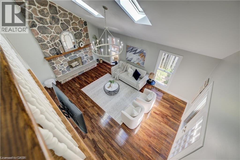 Welcome to serenity!! This stunning home is situated in a beautiful and QUIET neighbourhood with mature trees, yet only minutes to major hwys! Gorgeous fireplace with stone feature sets the tone for this lovey home creating a welcoming atmosphere. Professional upgrades include a Kitchen a chef would love! Stunning cabinetry, pot lighting, quartz countertop, island & stainless steel appliances. Main level primary bedroom with walk-in closet and fully updated bath. The view from the upper level looking over the living room is breathtaking!! An additional added feature, is the open upper hall (could be used as home office). Wood floors, freshly painted and ready for YOU! Enjoy this summer is a VERY large fully fenced yard where you can enjoy some family time! (id:4555)
