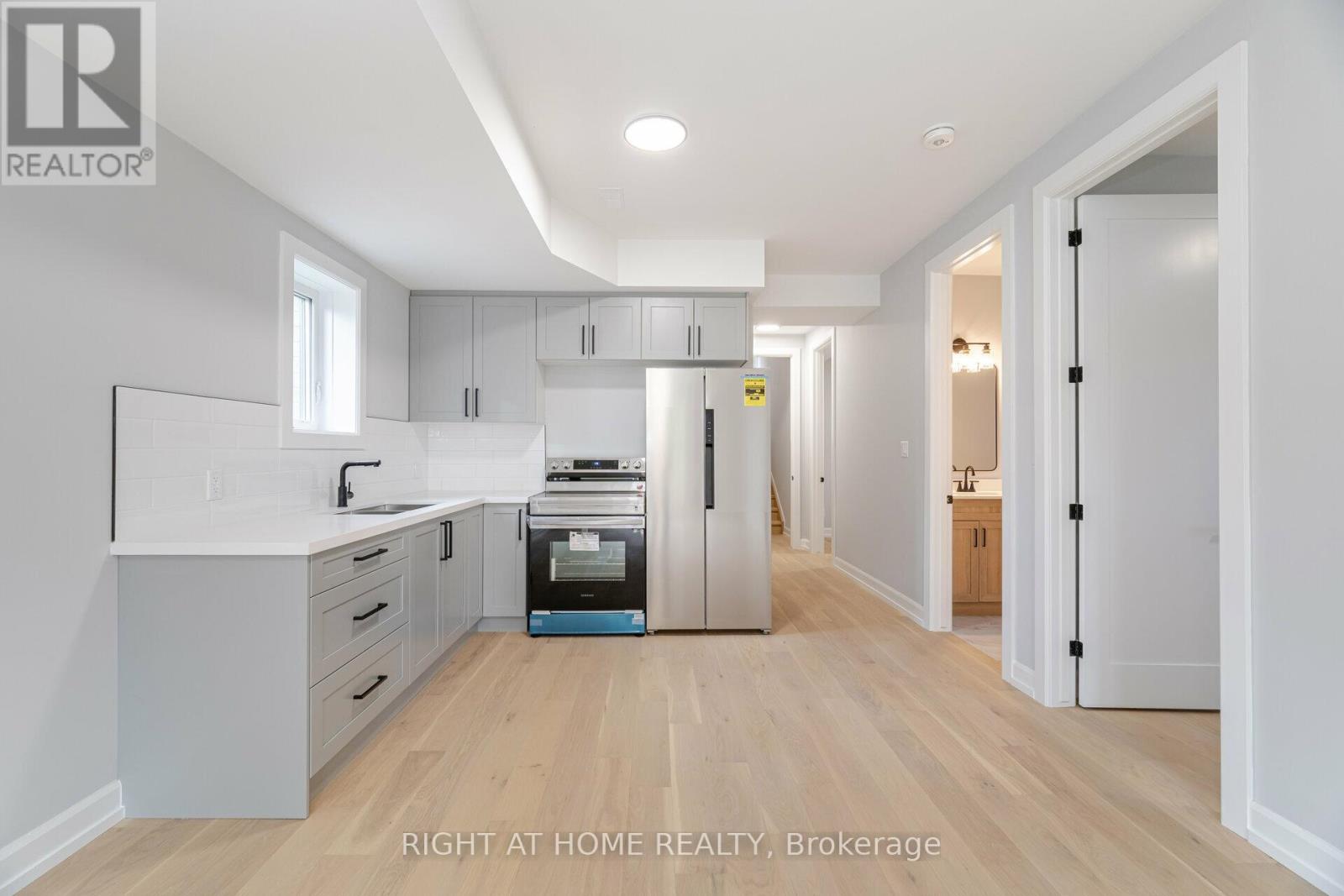 2 year-new walk-up basement apartment in a custom-built luxury home, nestled in a peaceful and family-friendly neighborhood. This stunning unit features 9-foot ceilings and large above-ground windows, allowing for abundant natural light. The thoughtfully designed space includes two spacious bedrooms, a fully equipped kitchen, and a beautifully finished 3-piece bathroom. With a private, separate entrance and elegant hardwood flooring throughout, the open-concept kitchen, dining, and living area create a modern and inviting atmosphere. Perfect for a small family, a couple, or an individual seeking a stylish yet affordable home, this semi-walkout unit offers the feel of an above-grade apartment. Tenant pays 40% of utilities and enjoys the convenience of one dedicated driveway parking space. Well-qualified applicants are preferred. **This is a must-see! Pictures were taken prior to current tenants moving in. (id:4555)