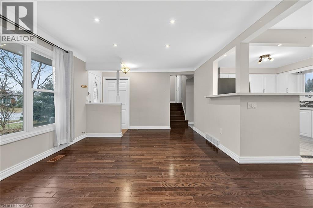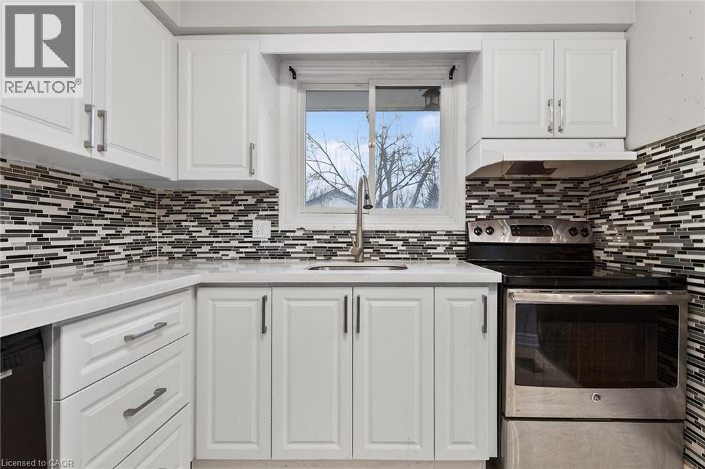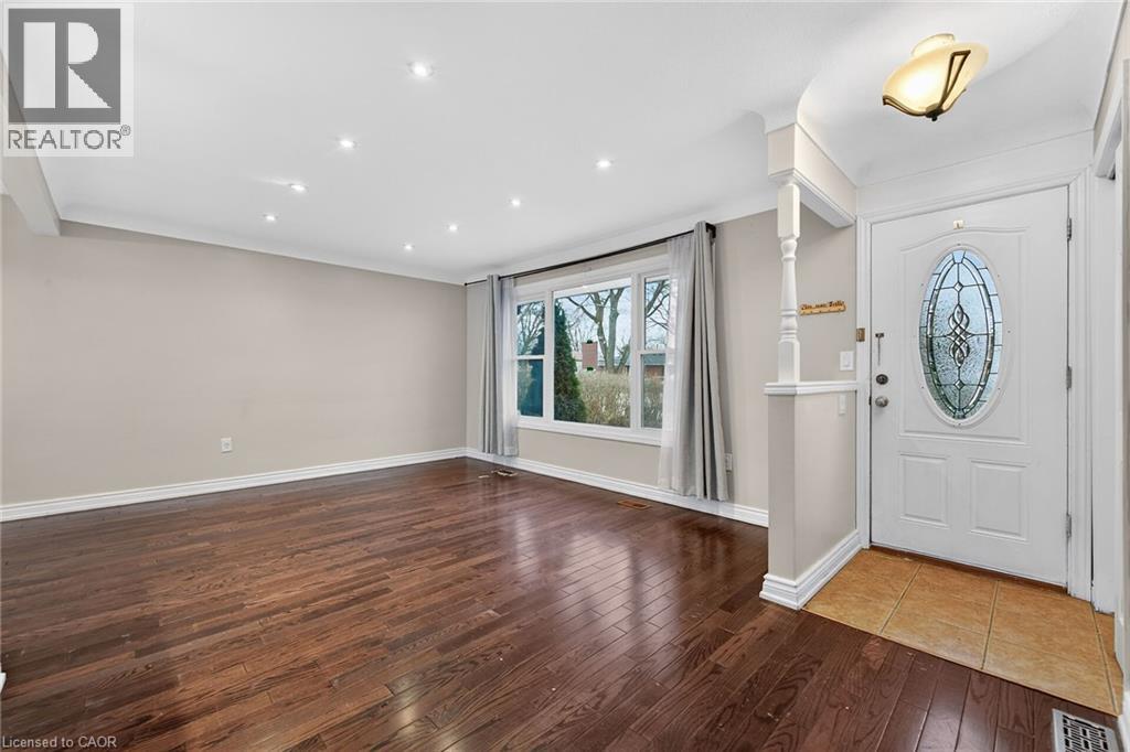 Fully finished, 4 level side split, located in family friendly neighborhood. Step inside and you will appreciate the open concept main level with gleaming hardwood floors and plaster coved ceiling detail. Bright, spacious living room features over sized windows and pot lights. Patio door access from dining room to huge back yard. Modern, updated kitchen with white cabinetry, under mount sink and mosaic tile backsplash. Upper level offers 3 spacious bedrooms with dark stained hardwood floors. Tastefully updated main bathroom with white vanity, tiled floor and shower. Bring the in-laws! Separate rear entrance to family room level and basement level. Unlimited potential with a second kitchen and 1.5 bathrooms. Ideal location for commuters with easy highway access. Don't miss out. (id:4555)