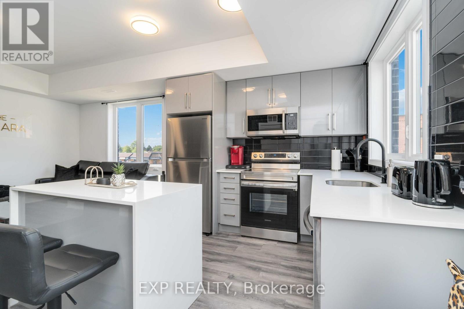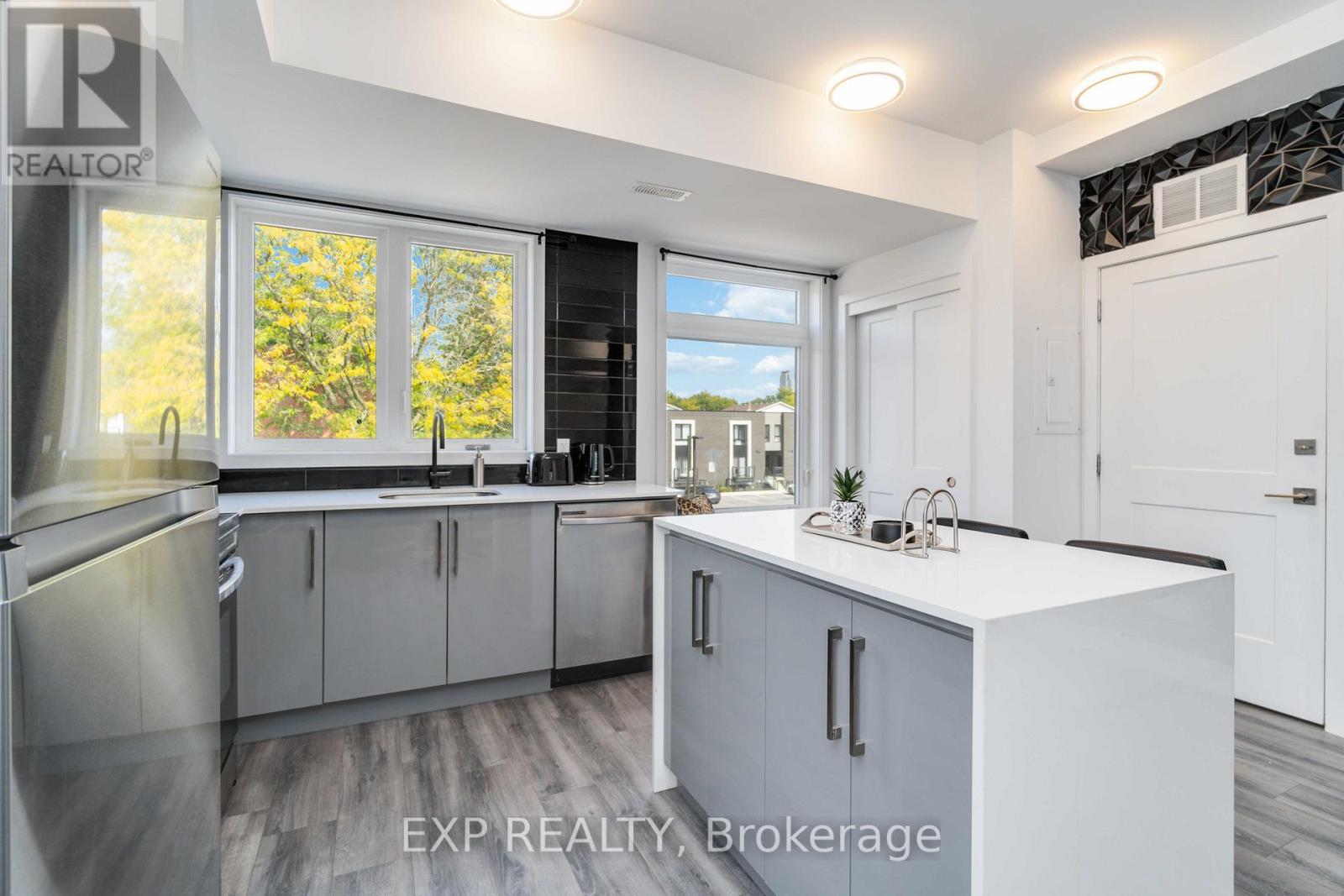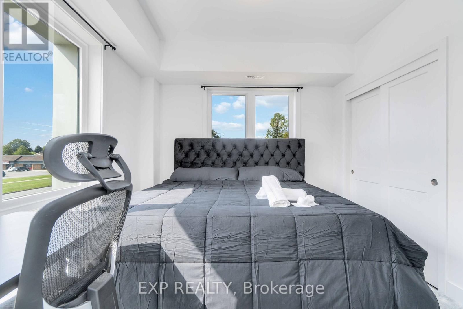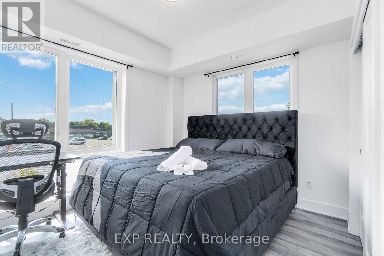 Turnkey Furnished Investment With Rare Rooftop Terrace!Welcome to this stunning modern corner two-storey condo offering over 1,000 sq ft of stylish living space and strong cash-flow potential. Fully furnished and move-in or rental ready, this rare unit is ideal for investors, short-term rental operators, or end users seeking low-maintenance luxury living.The upgraded chef's kitchen features quartz countertops, a waterfall breakfast bar island, designer backsplash, and premium stainless steel appliances. It opens seamlessly into a bright open-concept living and dining space, perfect for entertaining. 9-ft smooth ceilings, upgraded hardwood flooring, and large windows fill the home with natural light and elevate the modern design.The spacious primary bedroom retreat offers large windows and a private 4-piece ensuite with sleek glass rain shower. Upstairs, you'll find a second generously sized bedroom and full bathroom-ideal for guests, family, or added rental flexibility.One of the home's standout features is the rare 350 sq ft private rooftop terrace, creating the perfect outdoor space to relax or entertain while enjoying open views.Located less than 5 minutes from Clifton Hill, and close to golf courses, Costco, Walmart, restaurants, shopping, major highways, and the U.S. border, this prime location offers exceptional convenience and lifestyle appeal. (id:4555)