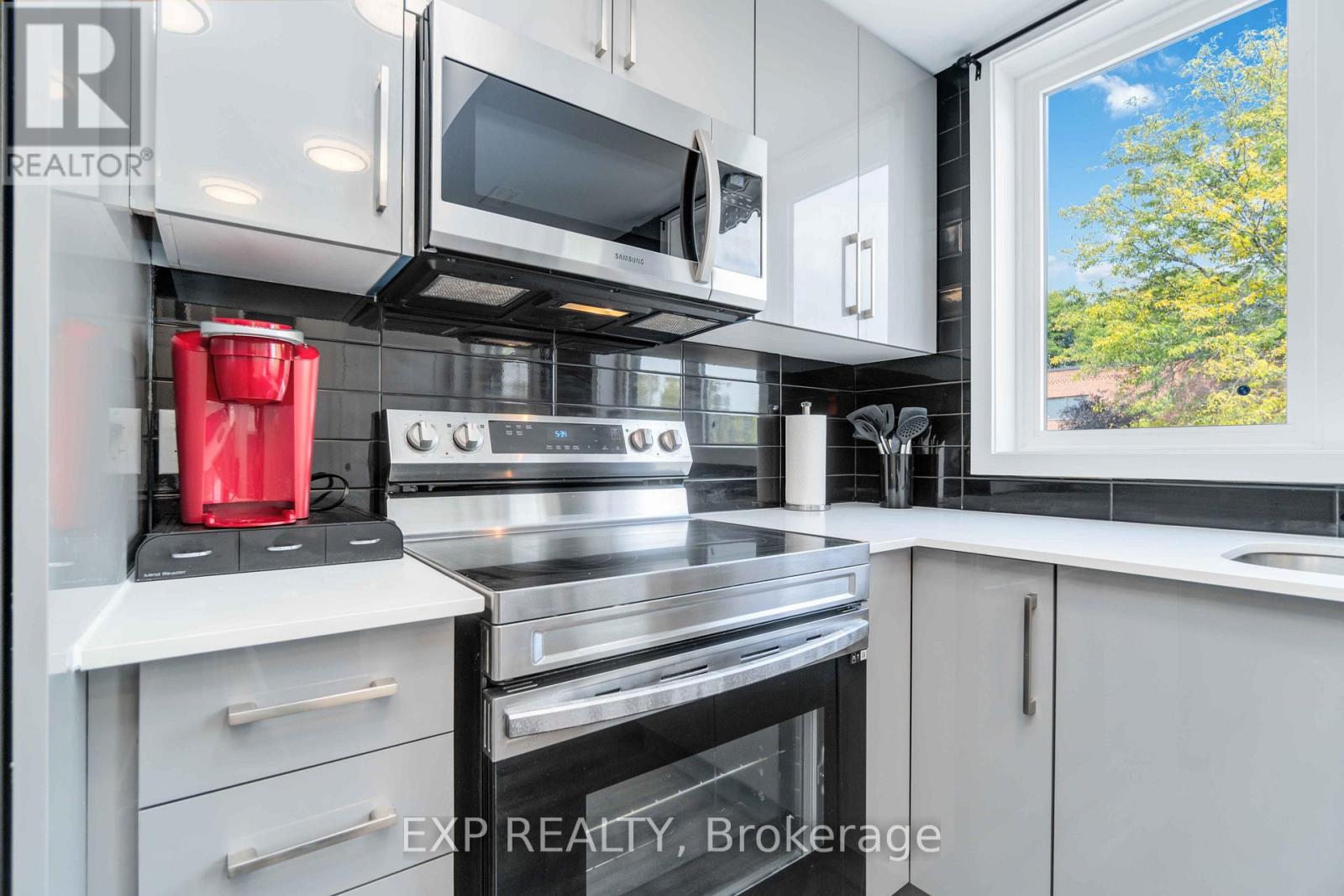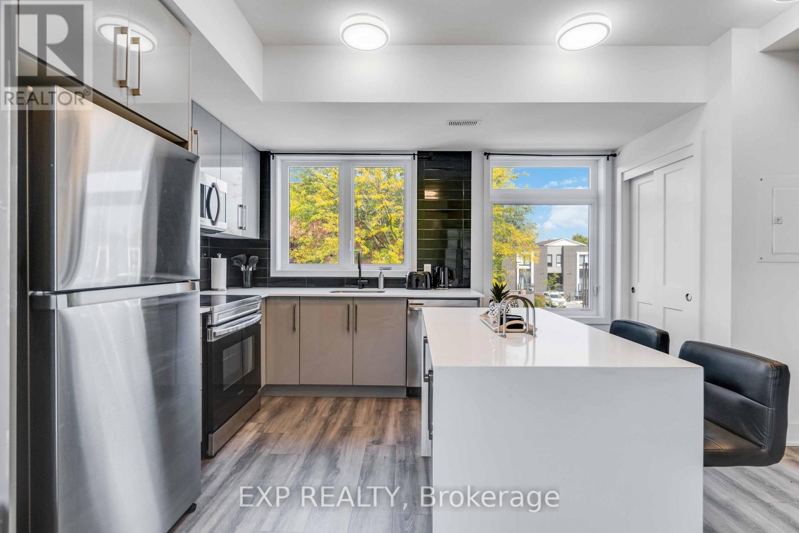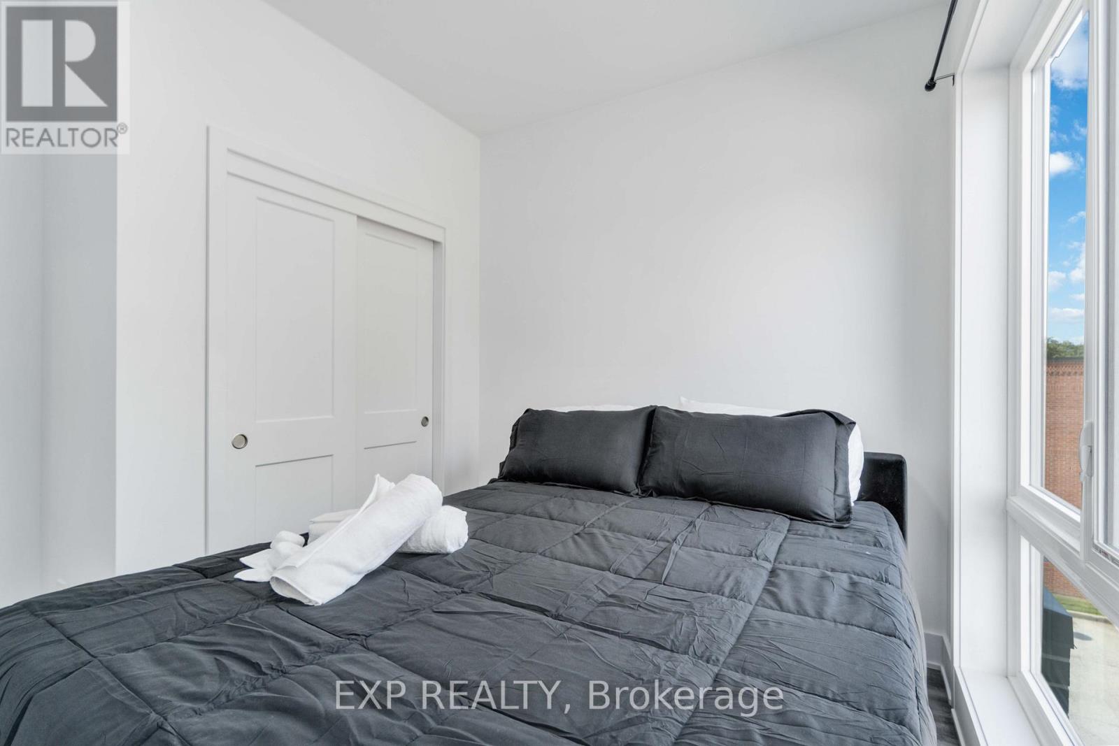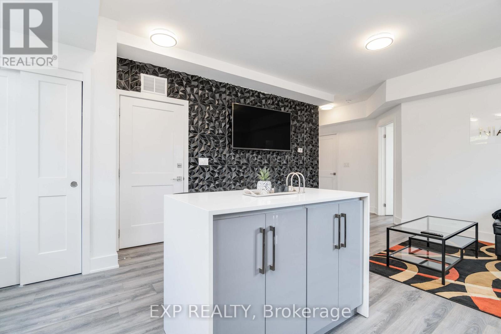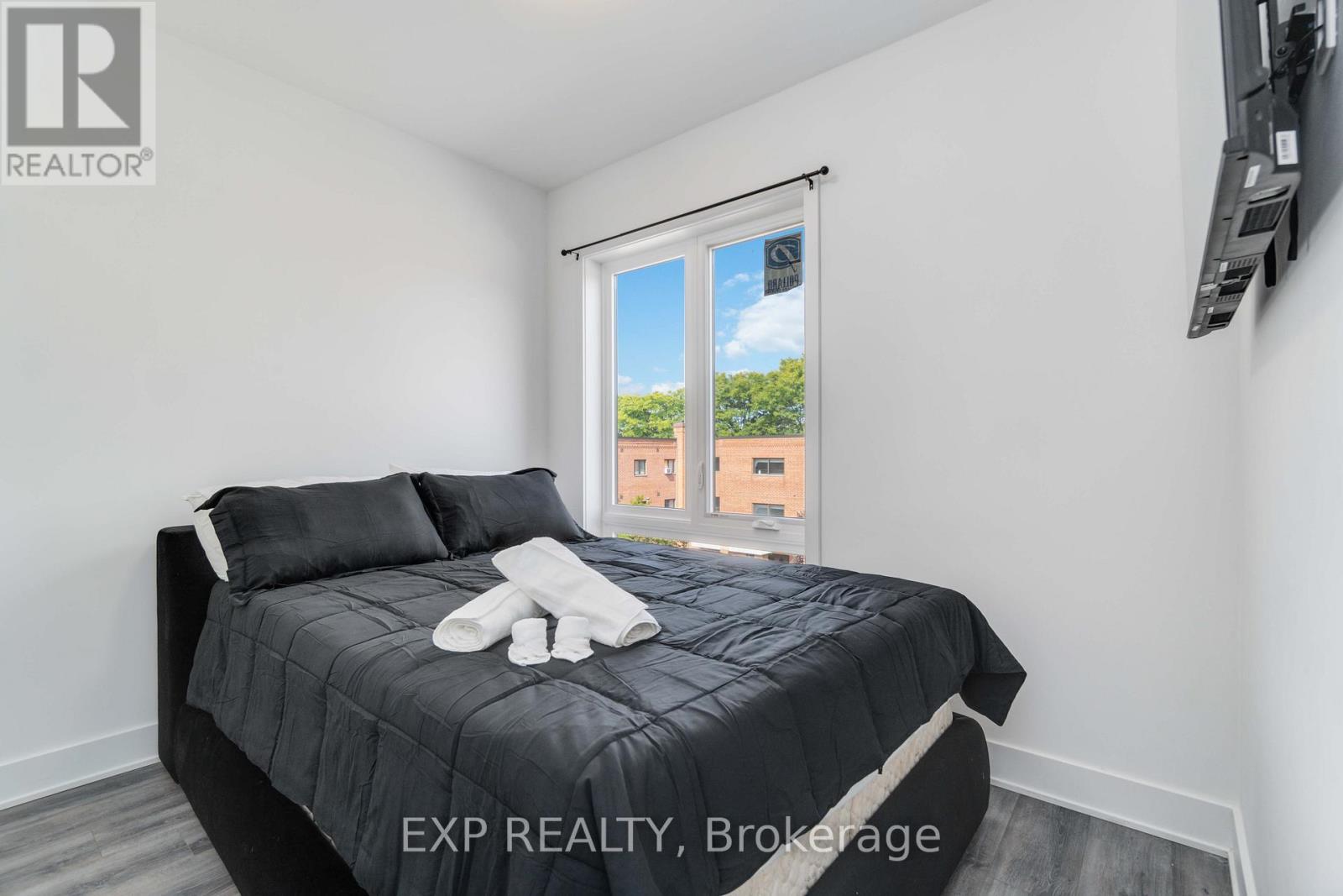 Turnkey Furnished Investment With Rare Rooftop Terrace!Welcome to this stunning modern corner two-storey condo offering over 1,000 sq ft of stylish living space and strong cash-flow potential. Fully furnished and move-in or rental ready, this rare unit is ideal for investors, short-term rental operators, or end users seeking low-maintenance luxury living.The upgraded chef's kitchen features quartz countertops, a waterfall breakfast bar island, designer backsplash, and premium stainless steel appliances. It opens seamlessly into a bright open-concept living and dining space, perfect for entertaining. 9-ft smooth ceilings, upgraded hardwood flooring, and large windows fill the home with natural light and elevate the modern design.The spacious primary bedroom retreat offers large windows and a private 4-piece ensuite with sleek glass rain shower. Upstairs, you'll find a second generously sized bedroom and full bathroom-ideal for guests, family, or added rental flexibility.One of the home's standout features is the rare 350 sq ft private rooftop terrace, creating the perfect outdoor space to relax or entertain while enjoying open views.Located less than 5 minutes from Clifton Hill, and close to golf courses, Costco, Walmart, restaurants, shopping, major highways, and the U.S. border, this prime location offers exceptional convenience and lifestyle appeal. (id:4555)