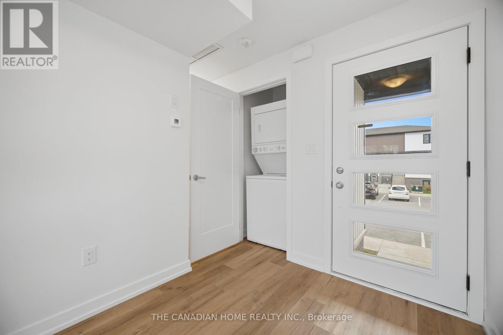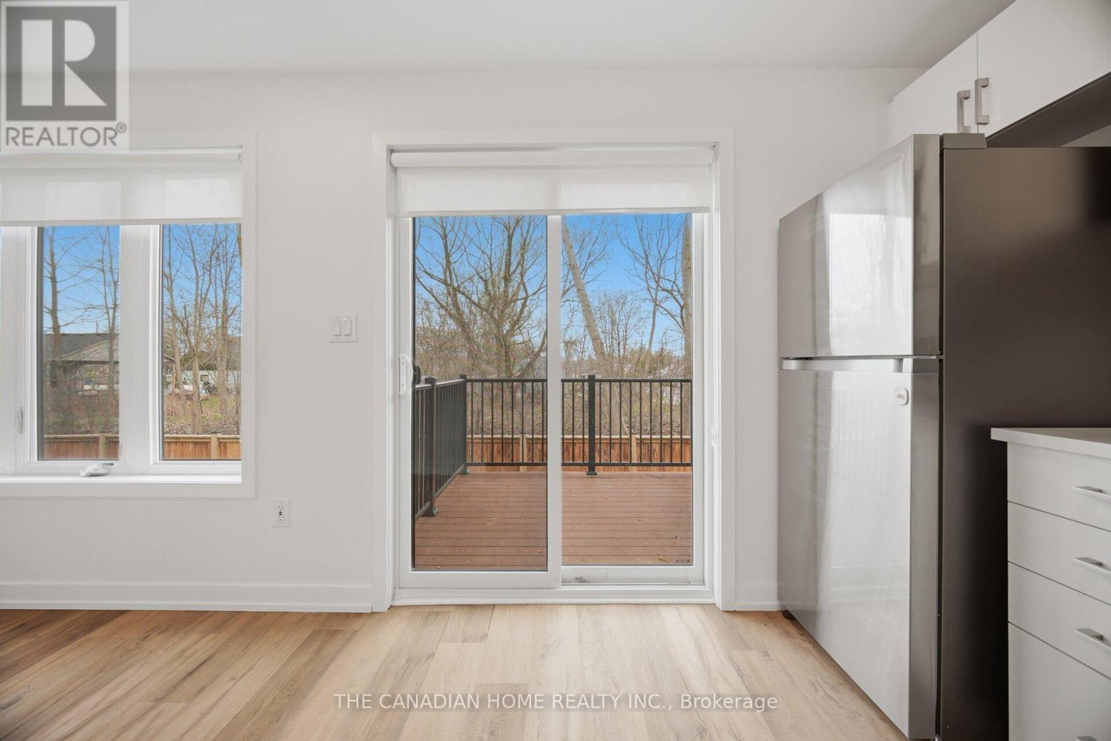 Experience modern living in this newer stacked townhouse by Newcastle Communities, ideally situated in the heart of downtown Niagara Falls-offering the added benefit of low property taxes. This sought-after "Riverside" model is the only two-bedroom layout featuring a spacious 10' x 10' private deck, and as a ground-level end unit, it enjoys added privacy with no rear neighbours. Designed for comfort and style, the home features large windows that flood the space with natural light, along with smooth ceilings and durable luxury vinyl plank flooring throughout for easy maintenance. The open-concept layout creates a bright and airy atmosphere, perfect for both everyday living and entertaining. The modern kitchen is equipped with sleek white cabinetry with soft-close doors, upgraded quartz countertops, a stylish chevron backsplash, and stainless-steel appliances. Both bedrooms are generously sized, each with its own window and closet. The home includes a full 4-piece bathroom with a quartz vanity and tub, as well as a convenient 2-piece powder room for guests. Relax in the cozy living area with pot lights, overlooking the kitchen and dining space, with sliding doors that lead to your private wooden deck-complete with aluminum railings and a privacy divider, backing onto a peaceful treeline. Located just a 3-minute drive to Niagara GO Station/VIA Rail and only 6 minutes to the Falls, this property is ideal for commuters and those looking to stay close to the waterfront and the U.S. border. The unit includes one parking space conveniently located nearby, with additional parking options available on the street or nearby Green P lots. (id:4555)