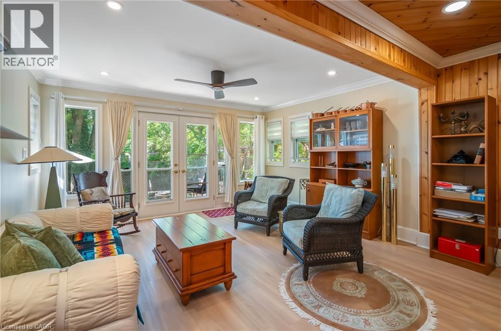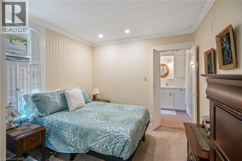 Location, location, location!! Just 1.5 blocks from Downtown!! The Bookseller’s Cottage is an historical NOTL icon, circa 1939. The location and value can’t be beat. Just a two-minute walk to downtown Queen Street takes you to cafes, restaurants, gelato bars and bakery shops, theatre, unique shops and everything NOTL has to offer. Despite the proximity to Downtown, this home is exceptionally quiet inside and no traffic can be heard inside. The main house, previously renovated, has also been substantially updated over the past 2 years with over $150k in improvements and repairs. [Please see photo #3 with the long list of features and upgrades]. Entering the home, you are greeted by a large open living room with a high-end, built-in elegant brick fireplace. This is one of two built-in, brick fireplaces in the house, each operated with remote controls. The living room also features two walls of near-floor-to-ceiling bookshelves. The primary bedroom is located discreetly off the living room through a sheer-curtained English-paned door, with a Jack-n-Jill ensuite. The bedroom is large and can be renovated back to 2 bedrooms if so desired. The kitchen has very substantial storage, newer appliances, a dining area open to a comfortable seating area also with its own brick, built-in fireplace, and welcomes you to the new four-season sunroom. The large double-door assembly and new windows provide an abundance of natural light with walk-out to rear garden. The sunroom also has a new 2-piece powder room behind a frosted pocket door. The back garden has a number of seating areas, flower gardens and locking, wood storage bins. The Garden Suite (second building) is the “pièce de résistance” – a separate new four-season dwelling complete with full shower, on- demand hot water, combined ductless heat-A/C unit, and living/sleeping area. A rare find and perfect for family, friends and guests. The home is priced to sell!!! Book your appointment today to see this one-of-a-kind gem. (id:4555)