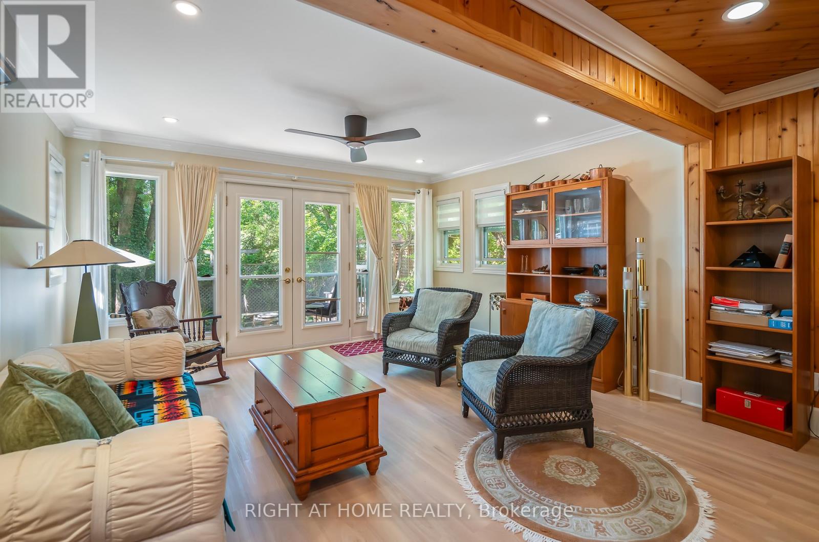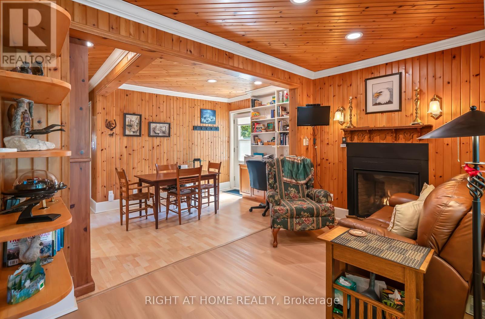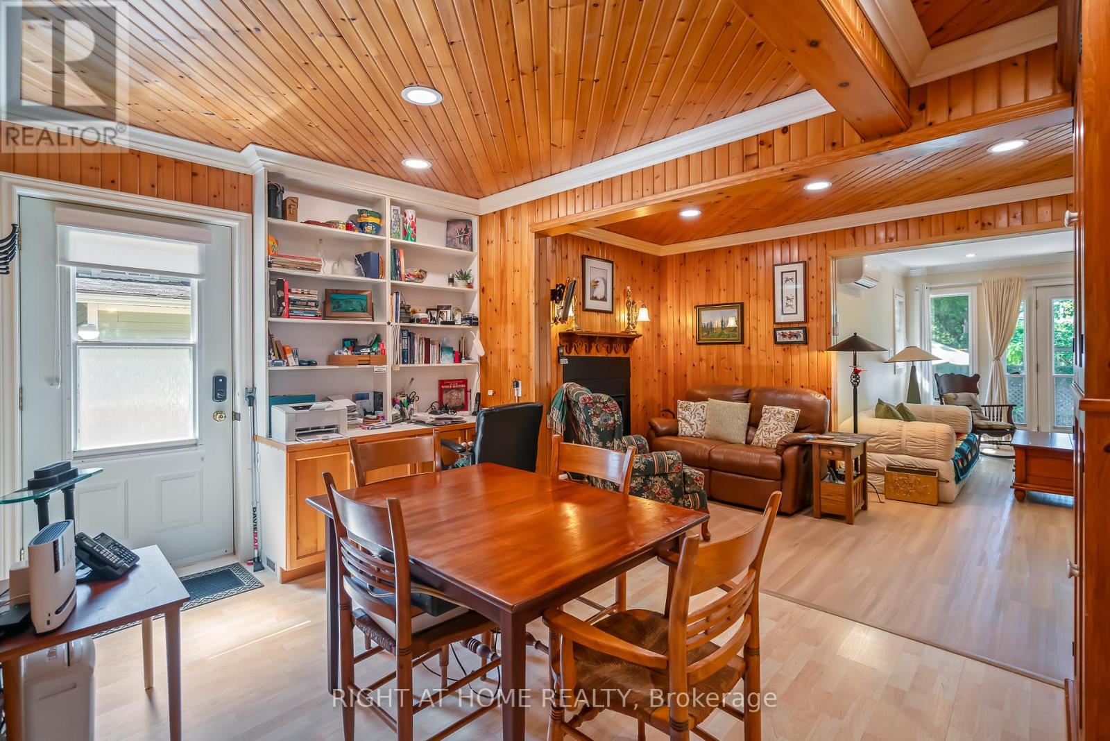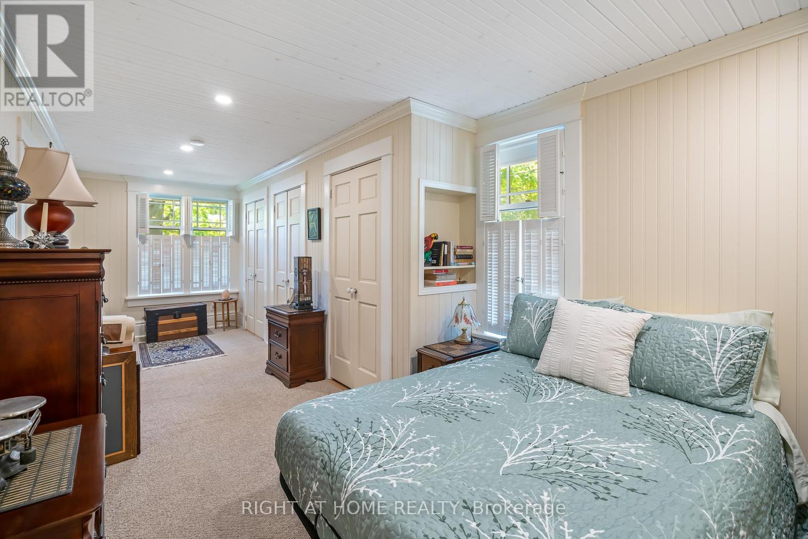 Location, location, location!! Just 1.5 blocks from Downtown!! The Booksellers Cottage is an historical NOTL icon, circa 1939. The location and value cant be beat. Just a two-minute walk to downtown Queen Street takes you to cafes, restaurants, gelato bars and bakery shops, theatre, unique shops and everything NOTL has to offer. Despite the proximity to Downtown, this home is exceptionally quiet inside and no traffic can be heard inside. The main house, previously renovated, has also been substantially updated over the past 2 years with over $150k in improvements and repairs. [Please see photo #3 with the long list of features and upgrades]. Entering the home, you are greeted by a large open living room with a high-end, built-in elegant brick fireplace. This is one of two built-in, brick fireplaces in the house, each operated with remote controls. The living room also features two walls of near-floor-to-ceiling bookshelves. The primary bedroom is located discreetly off the living room through a sheer-curtained English-paned door, with a Jack-n-Jill ensuite. The bedroom is large and can be renovated back to 2 bedrooms if so desired. The kitchen has very substantial storage, newer appliances, a dining area open to a comfortable seating area also with its own brick, built-in fireplace, and welcomes you to the new four-season sunroom. The large double-door assembly and new windows provide an abundance of natural light with walk-out to rear garden. The sunroom also has a new 2-piece powder room behind a frosted pocket door. The back garden has a number of seating areas, flower gardens and locking, wood storage bins. The Garden Suite (second building) is the pièce de résistance a separate new four-season dwelling complete with full shower, on- demand hot water, combined ductless heat-A/C unit, and living/sleeping area. A rare find and perfect for family, friends and guests. The home is priced to sell!!! Book your appointment today to see this one-of-a-kind gem. (id:4555)