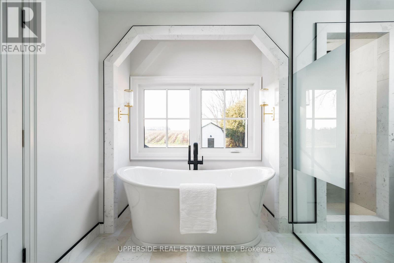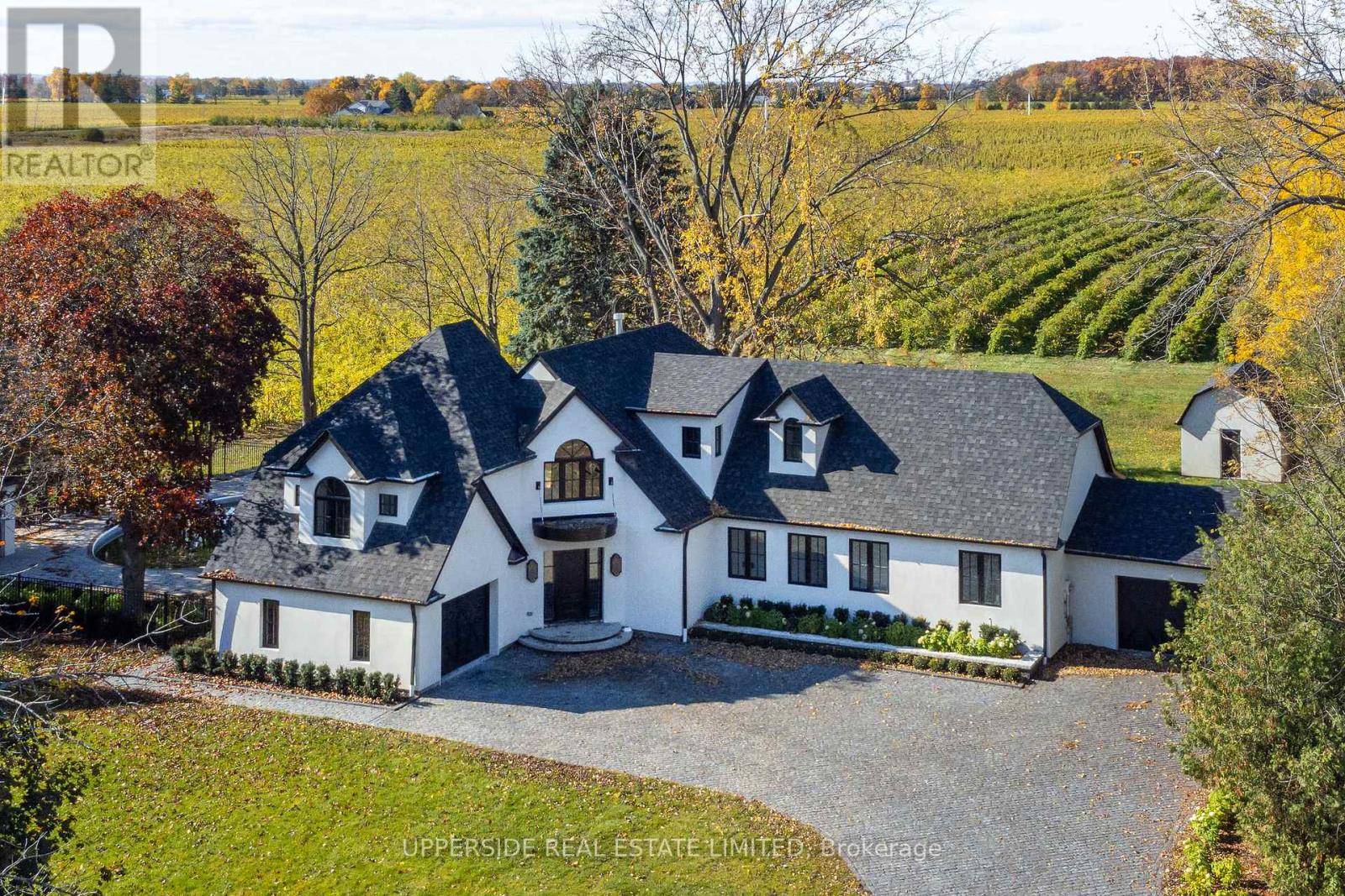 *Niagara Wine Country Estate with Vineyard Backdrop on Niagara River Parkway* Just a short drive from Toronto, this fully renovated wine-country estate offers a rare opportunity to own a private retreat in the heart of Niagara-on-the-Lake.Located along the scenic Niagara River Parkway, the 1.5-acre property backs directly onto vineyards and enjoys unobstructed views of the Niagara River-one of the most sought-after settings in Ontario's wine region.Originally the residence of a vineyard owner, the home has been completely redesigned and renovated, with every interior space rebuilt using custom finishes, bespoke millwork, and carefully selected materials. The result is a sophisticated wine-country residence that combines craftsmanship, privacy, and lifestyle.The approx. 3,900 home features 4 bedrooms & 4 bathrooms, expansive living areas for entertaining, and large windows framing vineyard and river views throughout the home.Outdoor living is designed for relaxed weekends and gatherings with family and friends. Landscaped grounds surround a resort-style saltwater pool, while multiple terraces provide ideal spaces for outdoor dining and sunset views over the vineyards.A detached barn offers additional possibilities for future owners, with potential to create a studio, wellness retreat, or private guest space.This property is perfectly positioned for the Niagara lifestyle. From the front of the home, the scenic Niagara River recreational trail provides direct access to one of Ontario's most beautiful cycling routes. Within minutes are many of Niagaracelebrated wineries, restaurants, and golf courses, making the property an ideal weekend escape for wine lovers, golfers, and outdoor enthusiasts from the GTA. Private, fully renovated, and surrounded by vineyards and river views, this exceptional property offers a rare opportunity to own a true wine-country retreat just outside Toronto. (id:4555)
