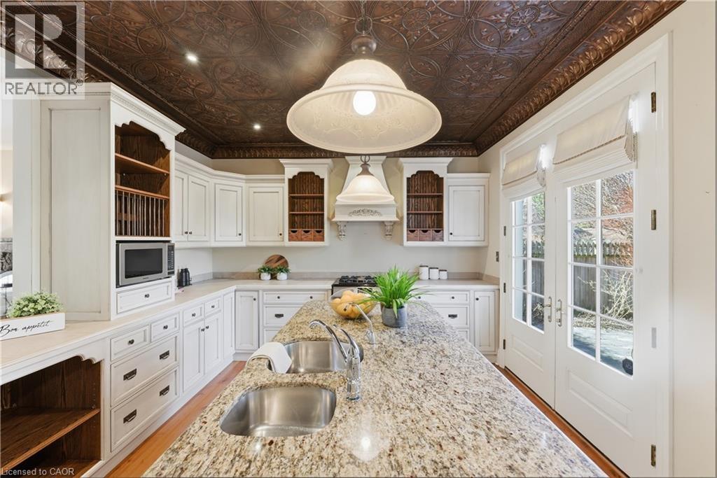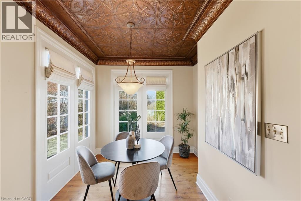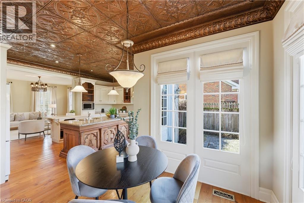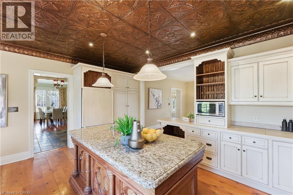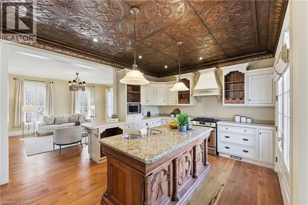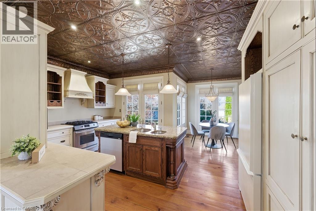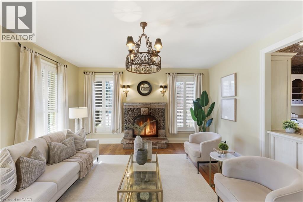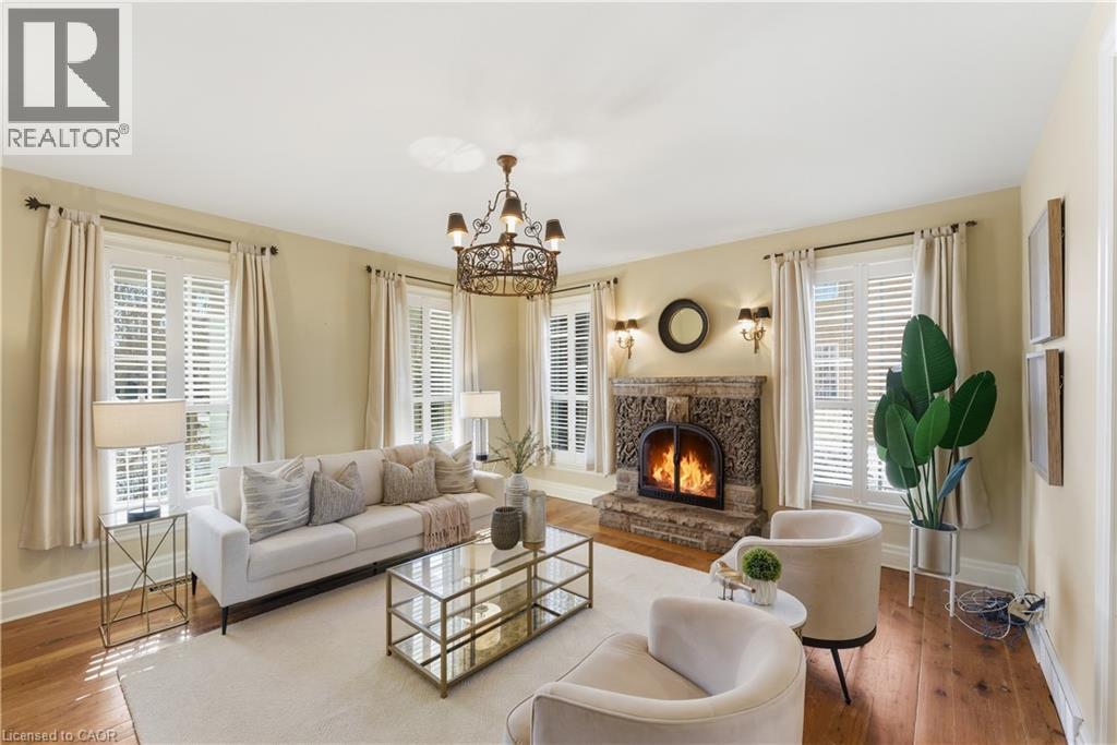 Nestled on a quiet street in the heart of Niagara-on-the-Lake, this stunning 4-bedroom, 3-bath residence offers approximately 2,925 sq. ft. of thoughtfully designed living space, blending timeless character with luxurious finishes. A gorgeous stone wraparound porch welcomes you home. Step inside to a grand foyer featuring an extra-wide staircase and elegant wall sconces. The main floor showcases wide-plank hemlock wood flooring, creating warmth and character. The living room is highlighted by a stone wood-burning fireplace and walkout access to the wraparound porch. The large eat-in dining room offers plenty of room for family gatherings and dinner parties, with additional doors leading directly to the porch. At the heart of the home lies the kitchen. A copper ceiling in the kitchen and breakfast nook creates a dramatic focal point. The breakfast area opens directly onto a stone patio and backyard. Completing the main floor is a convenient 2-piece bath and a versatile bonus room-ideal as a home office, craft room, or potential 5th bedroom. Upstairs, you'll find four generously sized bedrooms, offering large windows and ample closet space. The primary suite serves as a private retreat, featuring a spa-inspired 4-piece ensuite complete with a built-in vanity, soaker tub, and stand-up shower. An additional 4-piece bath provides convenience for family and guests. The finished basement expands the living space with a large recreation room anchored by a second stone fireplace. There is also plenty of additional storage space. Outside, the spacious backyard offers endless possibilities for entertaining, play, or relaxation, with abundant garden space for gardening enthusiasts. A double-wide attached garage and ample driveway. Located in an exceptional Niagara-on-the-Lake location, this home combines luxury, character, and tranquility, all while being close to the town's renowned wineries, dining, and charming amenities. (id:4555)