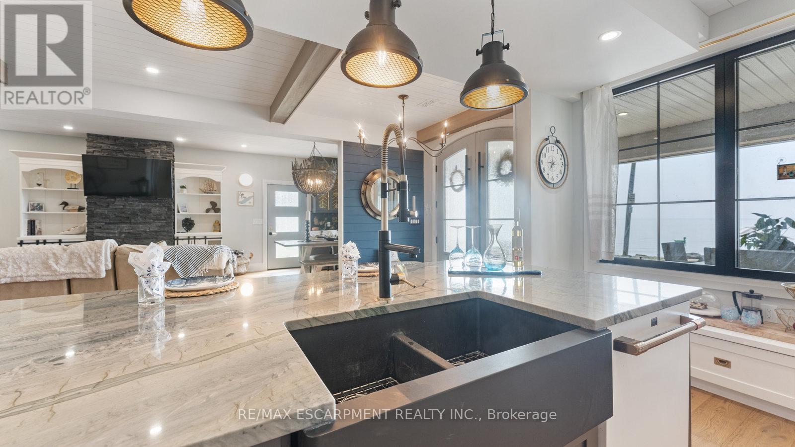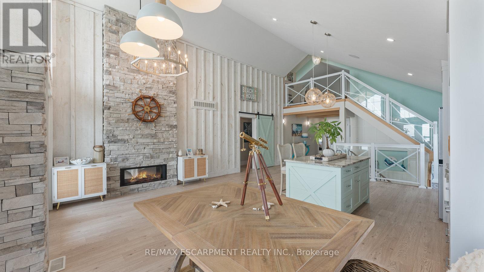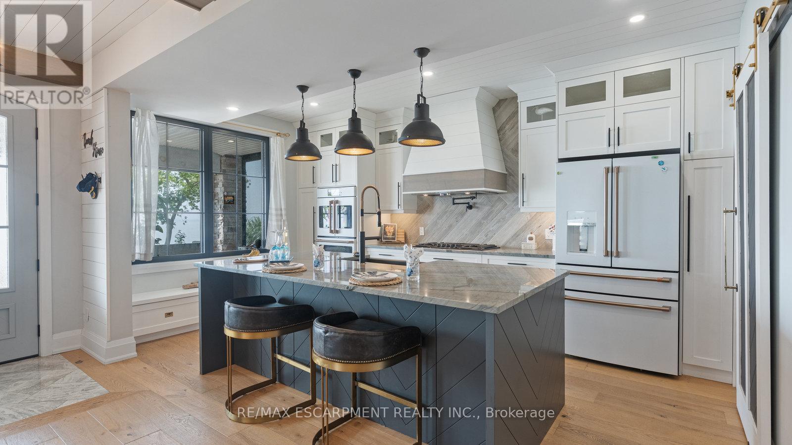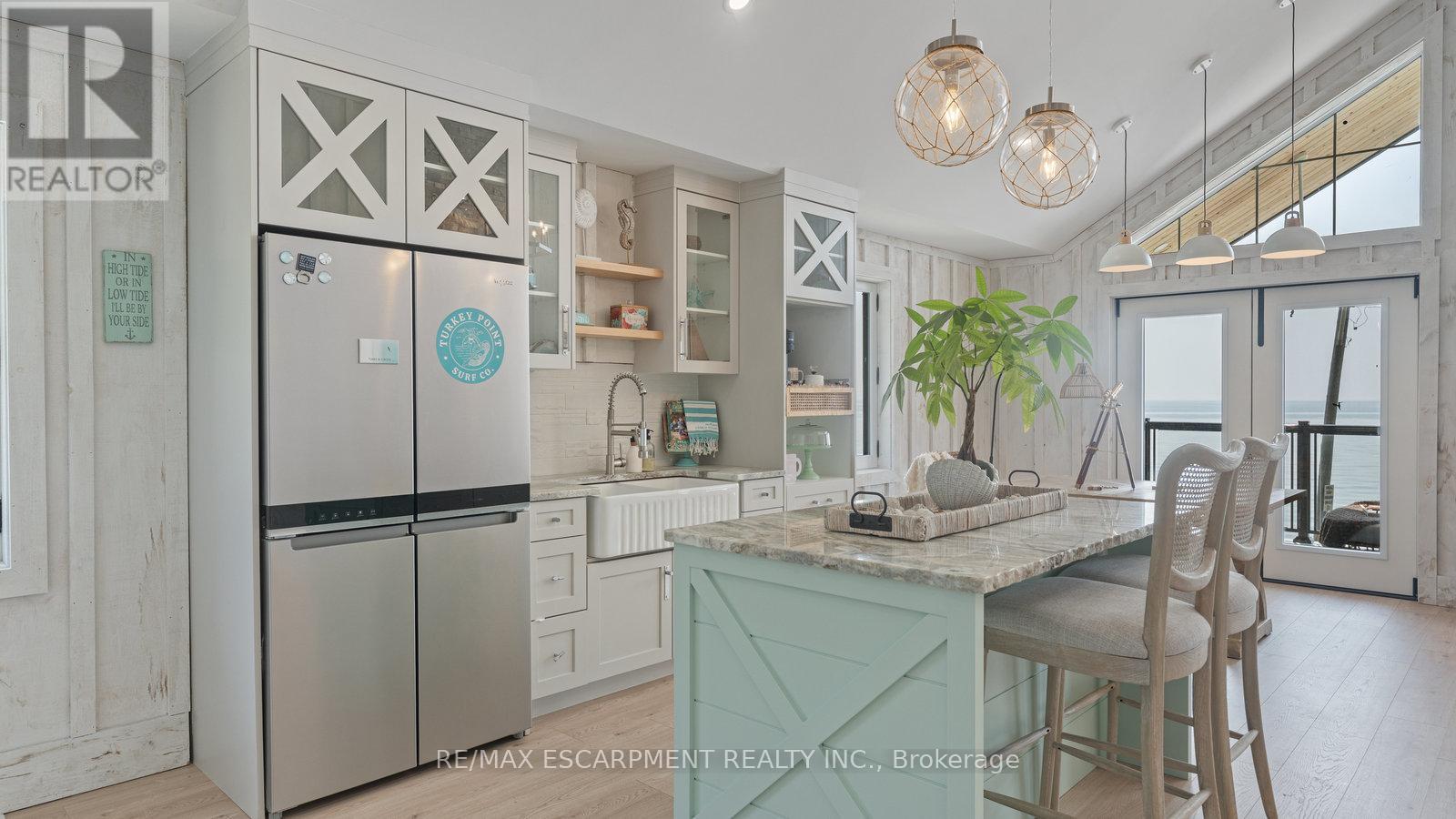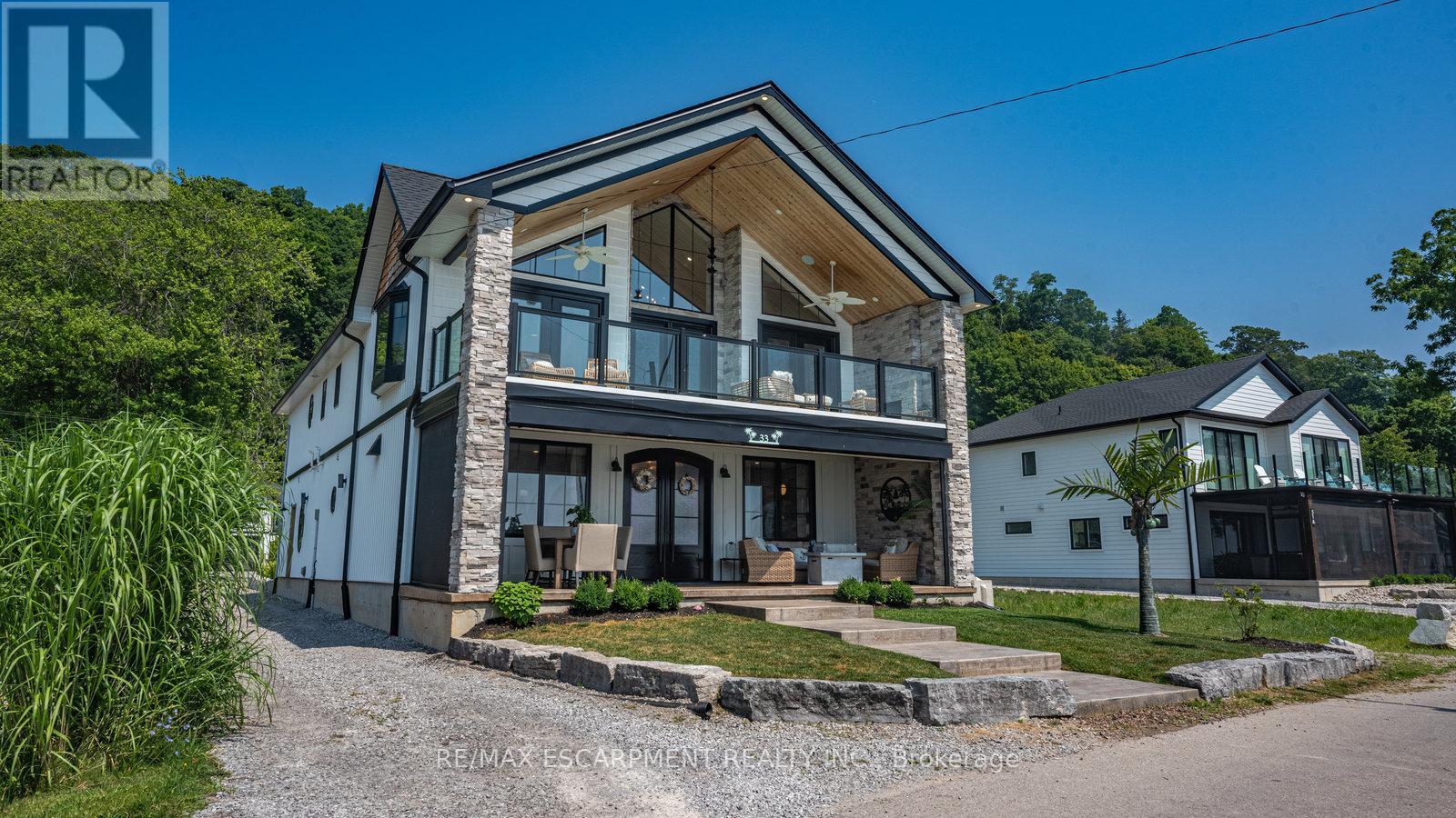 Imagine waking each morning to gentle waves lapping the shore, sunlight dancing across endless water. This is life at Turkey Point, where Lake Erie's northern shore becomes your personal paradise. Nestled in charming Turkey Point, Ontario, this extraordinary property offers the ultimate retreat from everyday life. Here, cozy cottages dot the shoreline, local eateries serve fresh catches, and life moves to the gentle cadence of boats returning to harbor. This peaceful enclave has long been a magnet for those seeking authentic waterfront living, and now it can be yours. Built in 2022 on a tranquil dead-end cul-de-sac, this stunning lake house was designed with one singular vision: to celebrate the magnificent water views that stretch endlessly before you. Every angle, every room, every carefully placed window serves to connect you with the ever-changing beauty of Lake Erie. Step through the front door and be embraced by over 3,800 square feet of thoughtfully designed living space. The modern architecture features soaring windows that frame the water like living artwork, transforming your daily routine into breathtaking moments. The two-story design centers around expansive living areas that dissolve boundaries between indoor and outdoor living. Two great rooms provide multiple gathering spaces, each offering its own unique lake perspective. Whether hosting intimate dinners or grand celebrations, guests will be captivated by the ever-present backdrop of shimmering water. The dual kitchen concept ensures entertaining flows seamlessly. Imagine preparing meals while watching sailboats drift by, or enjoying morning coffee as sunrise paints the water in brilliant hues. An elevator provides effortless access to both levels. Five bedrooms offer peaceful retreats. Three bathrooms provide comfort, while the three-car garage includes upper suite potential. From this vantage point, Lake Erie becomes your playground. Nothing beats life on the water! Luxury Certified. (id:4555)