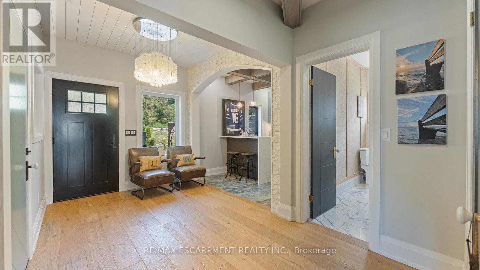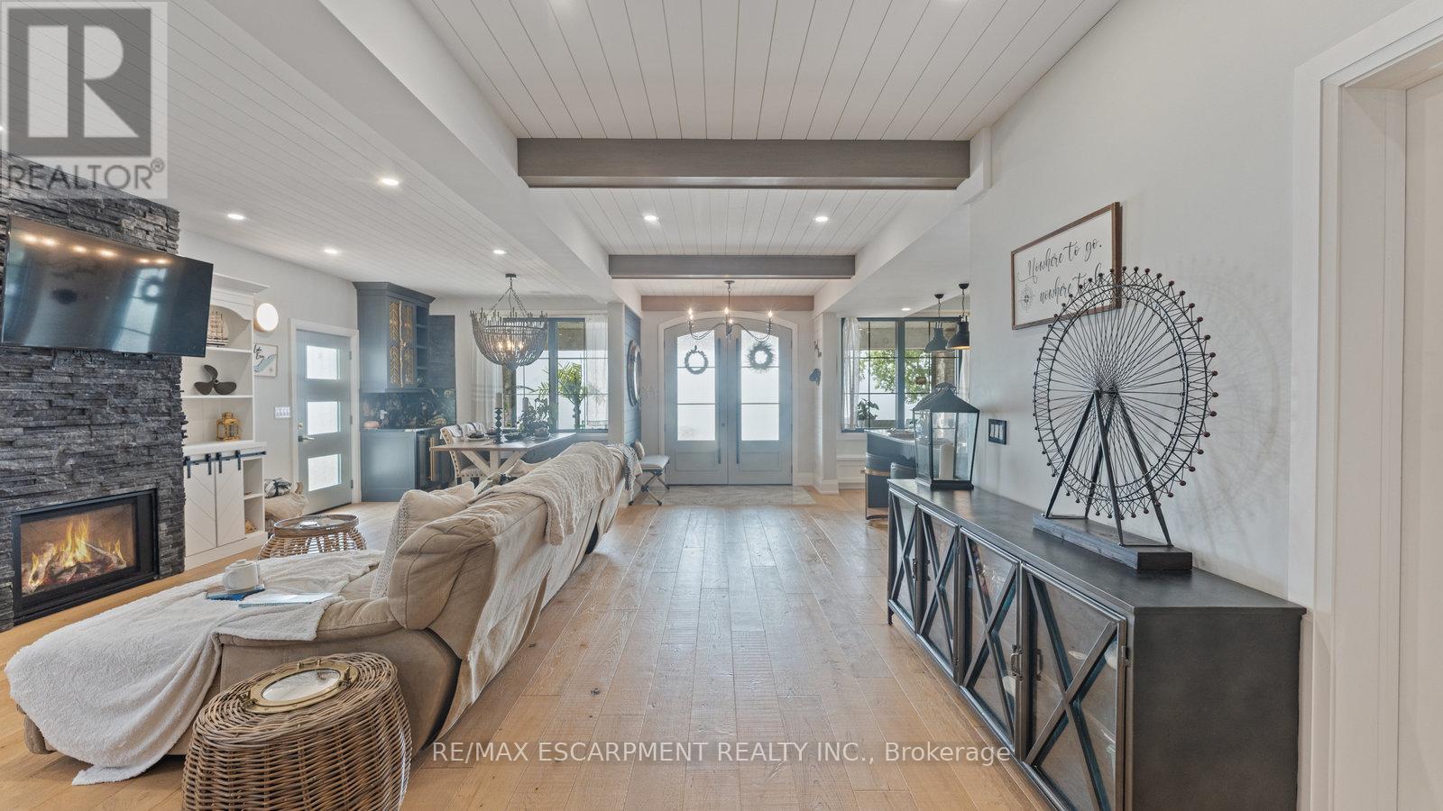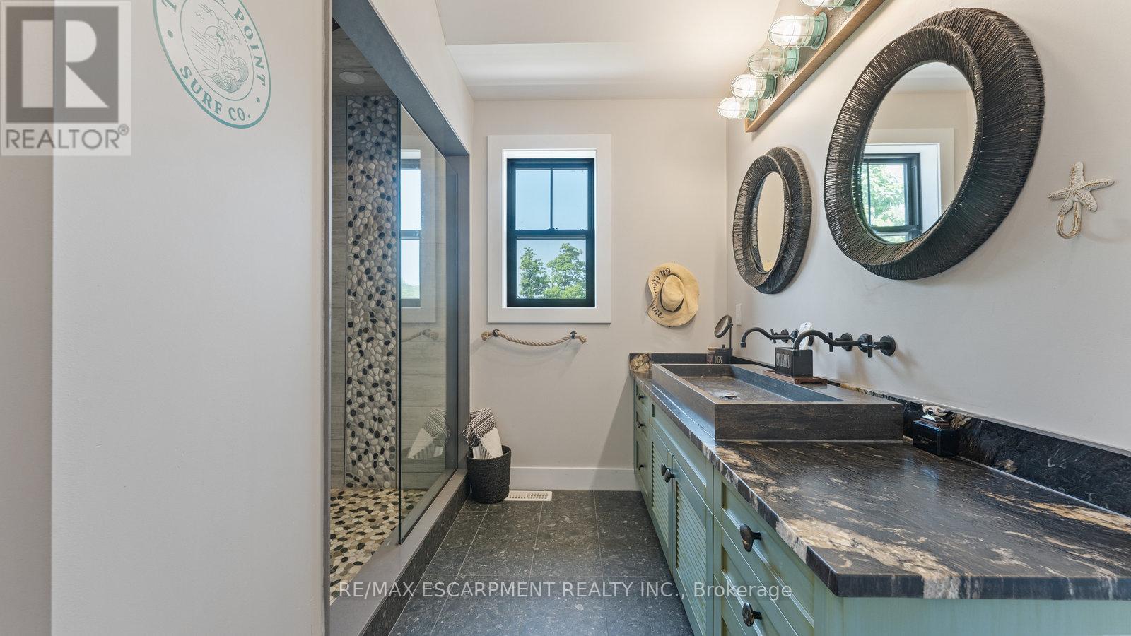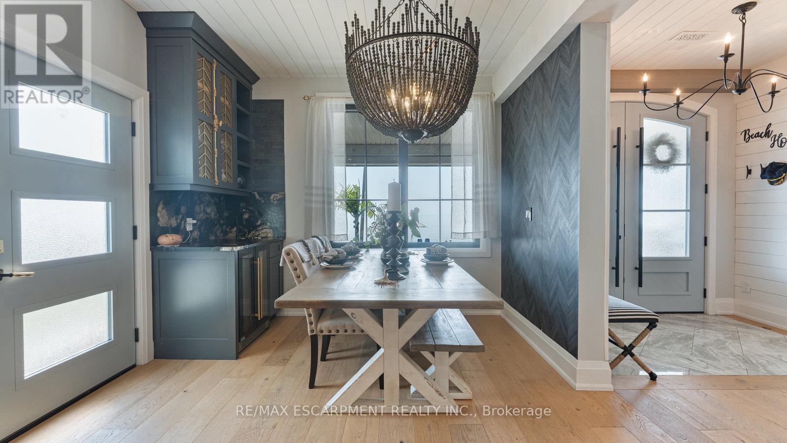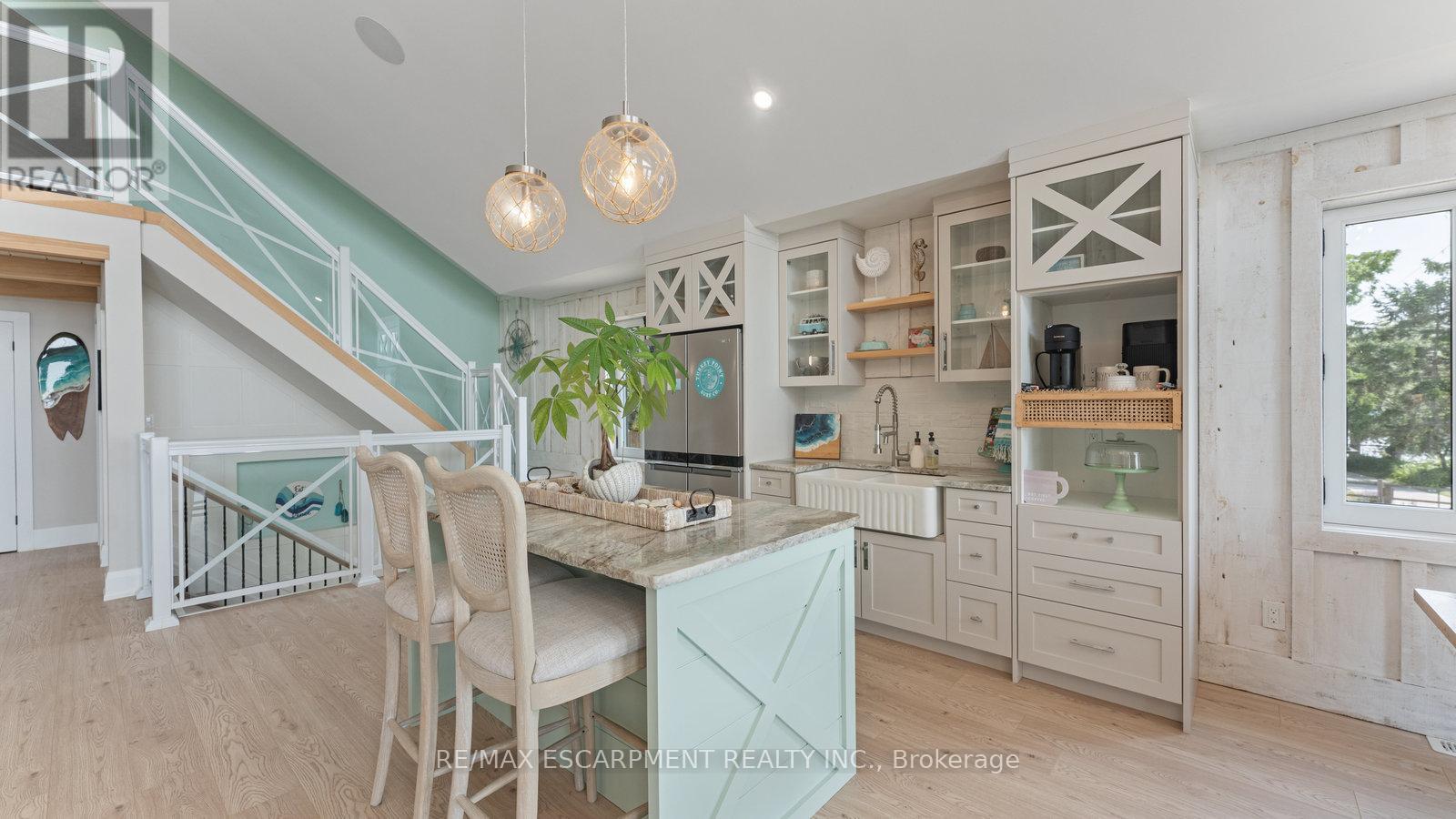 Imagine waking each morning to gentle waves lapping the shore, sunlight dancing across endless water. This is life at Turkey Point, where Lake Erie's northern shore becomes your personal paradise. Nestled in charming Turkey Point, Ontario, this extraordinary property offers the ultimate retreat from everyday life. Here, cozy cottages dot the shoreline, local eateries serve fresh catches, and life moves to the gentle cadence of boats returning to harbor. This peaceful enclave has long been a magnet for those seeking authentic waterfront living, and now it can be yours. Built in 2022 on a tranquil dead-end cul-de-sac, this stunning lake house was designed with one singular vision: to celebrate the magnificent water views that stretch endlessly before you. Every angle, every room, every carefully placed window serves to connect you with the ever-changing beauty of Lake Erie. Step through the front door and be embraced by over 3,800 square feet of thoughtfully designed living space. The modern architecture features soaring windows that frame the water like living artwork, transforming your daily routine into breathtaking moments. The two-story design centers around expansive living areas that dissolve boundaries between indoor and outdoor living. Two great rooms provide multiple gathering spaces, each offering its own unique lake perspective. Whether hosting intimate dinners or grand celebrations, guests will be captivated by the ever-present backdrop of shimmering water. The dual kitchen concept ensures entertaining flows seamlessly. Imagine preparing meals while watching sailboats drift by, or enjoying morning coffee as sunrise paints the water in brilliant hues. An elevator provides effortless access to both levels. Five bedrooms offer peaceful retreats. Three bathrooms provide comfort, while the three-car garage includes upper suite potential. From this vantage point, Lake Erie becomes your playground. Nothing beats life on the water! Luxury Certified. (id:4555)