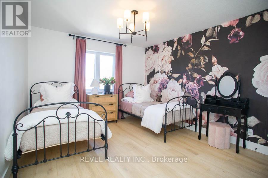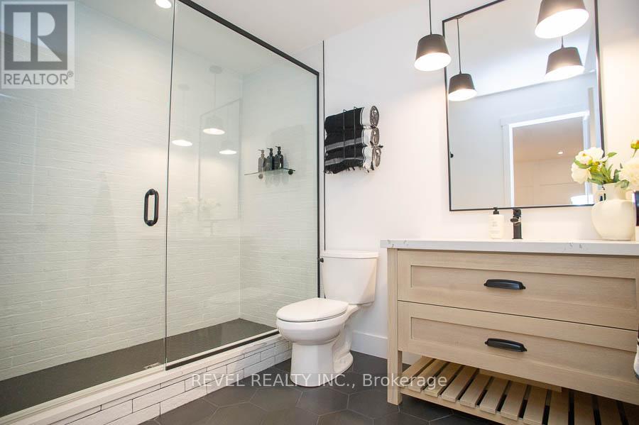 Stunning home in the heart of Waterford - one of Norfolk County's most sought-after communities.This beautifully designed, nearly 2,000 sq ft home offers 3 bedrooms, 2.5 bathrooms, a double garage, and a modern backyard oasis with covered porch. Thoughtfully curated materials and upgrades throughout give this home the feel of a custom build, with style and continuity in every detail. Striking curb appeal is enhanced by professional landscaping, concrete walkways, and steps that wrap elegantly around the home. Inside, a grand foyer welcomes you with wide-plank LVP flooring, wainscoting, and a dramatic hardwood staircase with sconce lighting.The mudroom/laundry space is both functional and stylish, with ample built-in cabinetry, quartz counters, and bench seating - leading to a designer powder room with floating vanity, vessel sinks and honeycomb tile that can be found in all bathrooms. The open-concept main living area is perfect for both everyday life and entertaining. The kitchen features modern white cabinetry, quartz countertops, a massive 9.5 x 4.5 island, open shelving, and two pantries.The adjoining dining and living areas flow seamlessly, highlighted by a sleek concrete fireplace. Patio doors open to a composite covered porch with glass railing, overlooking a beautifully designed backyard with seating area, gazebo, and elegant lighting. Upstairs, the primary suite includes a barn-door walk-in closet and spa-inspired ensuite with soaker tub, glass shower, and quartz vanity. Two additional spacious bedrooms, a designer full bathroom, and a cozy office area with barn doors complete the upper level. This home is a rare blend of luxury, function, and style ready to welcome its next family. (id:4555)