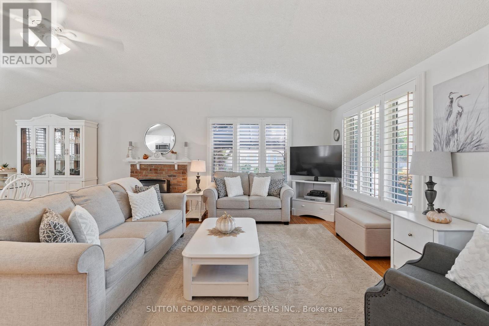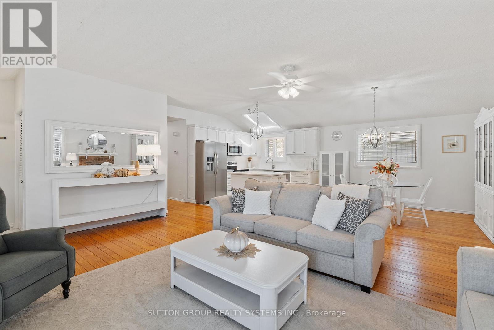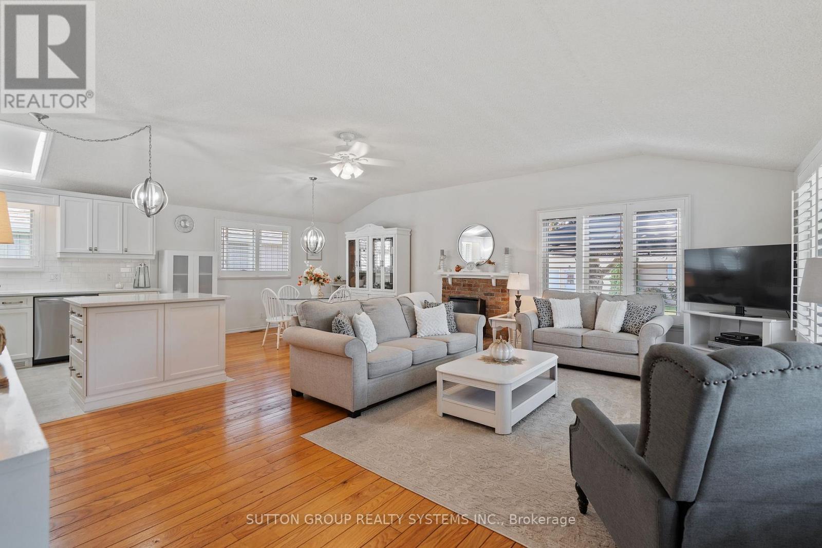 Lovely Lake Views! Spacious and Bright Updated Bungalow with Curb Appeal. Before entering this charming home, take a moment to enjoy the covered porch or deck under the gazebo, offering lovely views of Lake Erie. A reasonable walk to all the amenities Port Dover has to offer: theatre, shops, beach, parks, groceries, dining and professional services. Best of both worlds, this home is in a quiet neighborhood overlooking the marina and lake. Inside Find: Open Concept kitchen/dining/living with high ceilings and panoramic views of the lake through wall to wall windows with California shutters; Hardwood floors; A distinct entryway with a coat closet; Gas fireplace in Living Rm; Kitchen with Skylight, stainless steel appliances, centre island, built-in dishwasher; Large Pantry Adjacent to Kitchen; Large Primary bedroom with walk-in closet; Good Sized 2nd bedroom; Updated spa-like main bathroom w ample cupboard space; Main Floor Laundry, Main Floor 2PC Bathroom; Walk-out to Garage from interior. Garage has a high ceiling that will fit a large vehicle and also has ample storage. 3-4ft high crawlspace under house great for storage. Low maintenance lot features a large side yard with deck, gazebo, and room for BBQ and ample guest seating. Long double-car driveway leads to large shed. (id:4555)