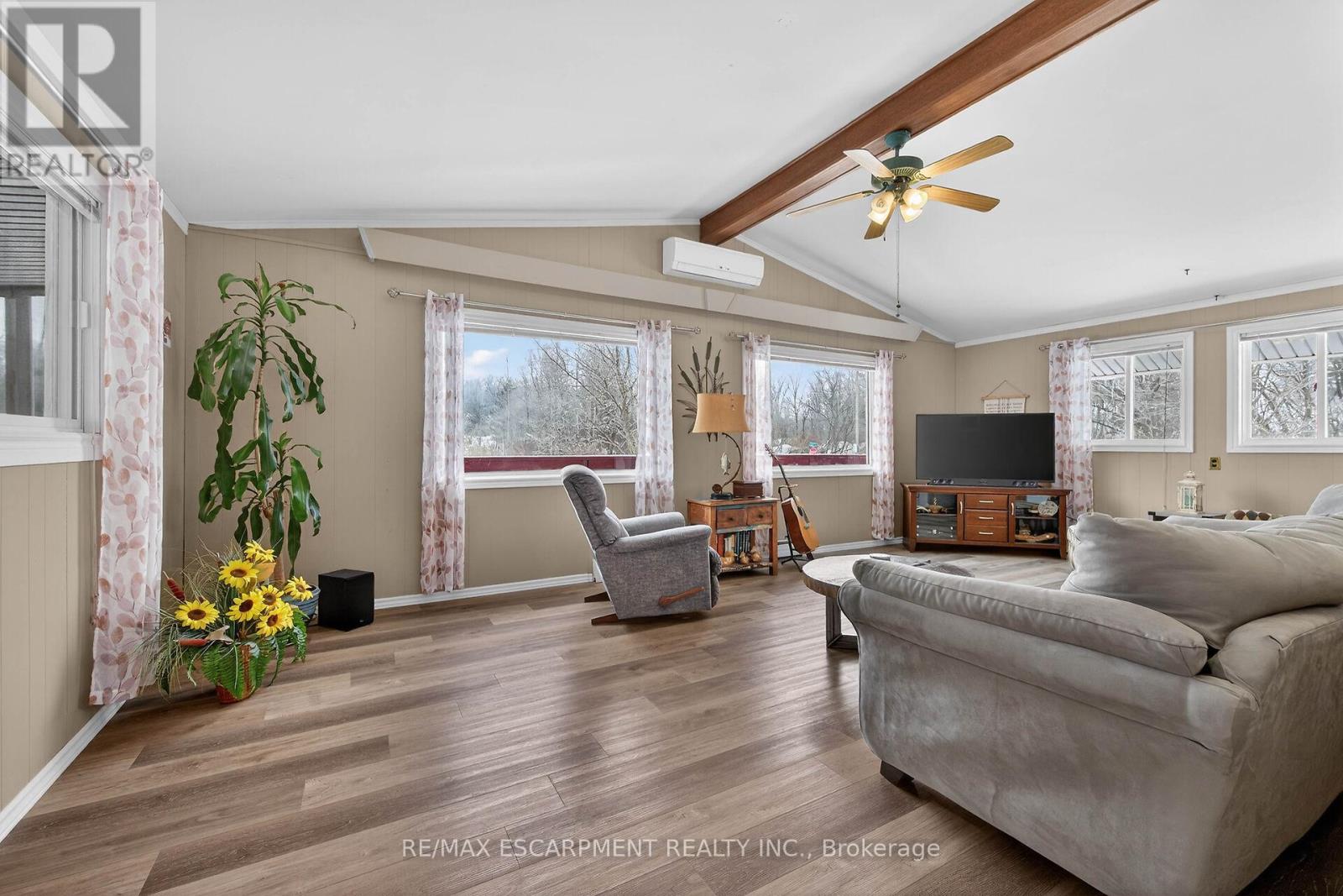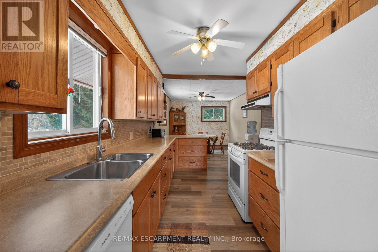 Envision life in Norfolk County - Ontario's Garden County - 10 mins south of Simcoe's amenities - 15 min drive to Port Dover's attractions - in-route to popular destination villages & towns dotting Lake Erie's Golden South Coast. Turn your vision to reality as you discover this well maintained, uniquely designed chalet style home oozing w/country charm positioned majestically on 0.56ac lushly landscaped lot nestling up to towering pines & hardwoods. Enjoys 63.78ft of frontage on Old Brock Rd (known as Vittoria Rd) & Mill Pond Rd - lightly travelled road ideal for walking, ATVing or snowmobiling - loaded w/nature trails dead ending at Young's Creek. Recycled asphalt circular driveway extends past home & det. garage continuing to 2nd entrance off Mill Pond Rd. Embrace outdoor natural beauty in abundance from lower 12x20 freshly stained deck & similar sized upper deck boasting screened-in sun room accessing 2nd level living area introducing 933sf of freshly redecorated, classic décor highlighted w/impressive great room ftrs vaulted ceilings, newer low maintenance flooring (thru-out main floor), ductless heat/cool HVAC & 5 oversized windows letting the "sun shine in". Leads to galley kitchen sporting wood cabinetry, adjacent dining room & stylish updated 3pc bath culminating w/spacious primary bedroom. Convenient staircase descends to 649sf finished grade level incs roomy guest bedroom, rustic family room/poss. 3rd bedroom enhanced w/barn board wainscot, 2pc bath, large laundry room, storage/utility room & walk-out to attached 284sf carport. Mechanics or Hobbyists will appreciate 22x30 det. garage/shop incs insulated front bay, sizeable 2nd bay, conc. flooring, hydro, 2 roll-up doors & roof-2025. Extras-"Navien" n/g hot water boiler HVAC, metal roof-2020, vinyl windows, n/g stand-by generator, 2 garden sheds, excellent drilled well & septic. (hot tub negotiable). Experience a slice of Paradise - with Spring nearing - make that LIFE-STYLE change you have "DREAMT" a (id:4555)