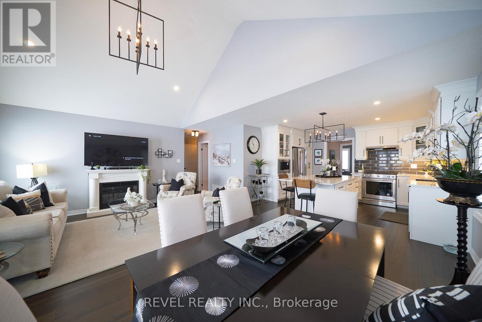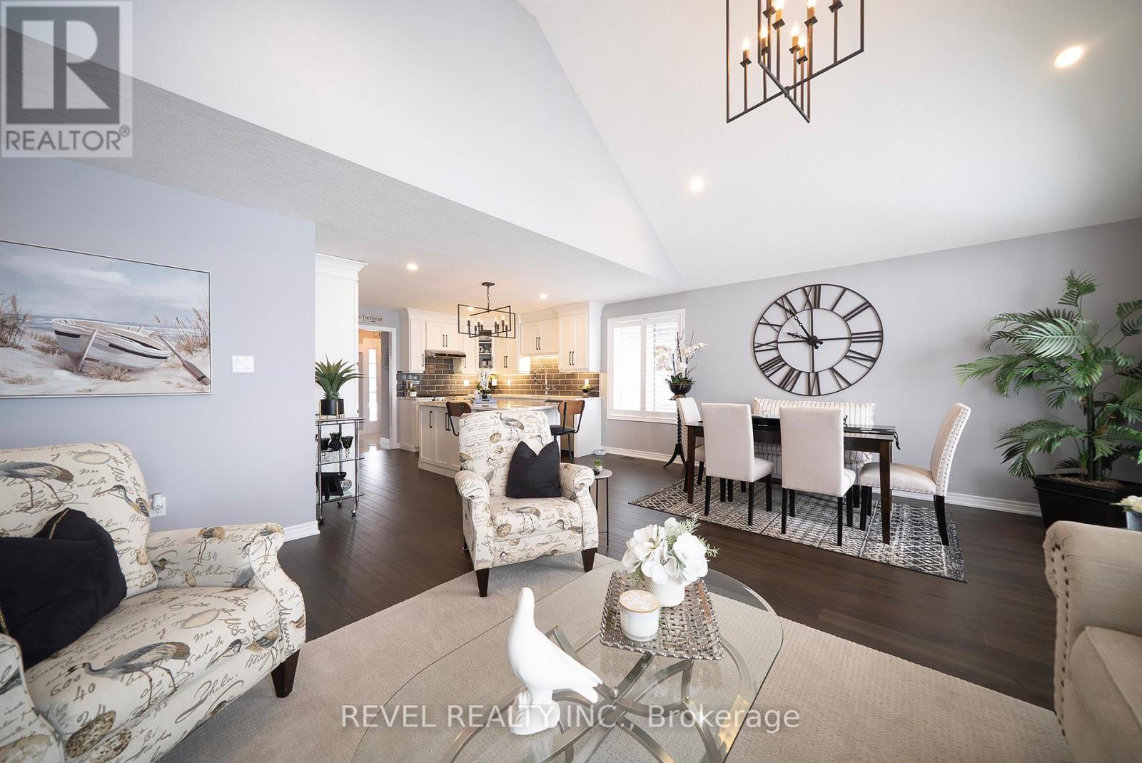 Welcome to 261 Schooner Drive in beautiful Port Dover - a stunning end-unit freehold (POTL) townhome offering stylish, low-maintenance bungalow living. This 2-bedroom, 2-bathroom home features a bright, thoughtfully designed layout just minutes from the lake, beach, golf and the charming shops and restaurants in their downtown core.The main floor offers a desirable open-concept design, enhanced by vaulted ceilings (LR/ DR), engineered hardwood flooring and California shutters throughout the principal rooms and bedrooms. The inviting front entrance leads into an upgraded white shaker kitchen complete with quartz countertops, subway tile backsplash, under-cabinet lighting, stainless steel appliances including a 5-burner gas stove, and a spacious centre island with pendant lighting. The kitchen flows seamlessly into the dining area and great room, creating an ideal space for both everyday living and entertaining. Patio doors extend the living space to a private 16' x 12' concrete patio with no current rear development behind.The spacious primary bedroom offers vaulted ceilings, a walk-in closet and a beautifully appointed ensuite with soaker tub and frameless glass shower. A second bright bedroom and full guest bathroom provide comfortable space for visitors or a home office. Main floor laundry and inside access to the single-car garage add everyday convenience.Ideally located near The Links at Dover Coast Golf Club, David's Restaurant & Spa and the Port Dover waterfront, this meticulously maintained bungalow is perfect for downsizers, retirees or anyone seeking turnkey living in a sought-after lakeside community.Enjoy life by the lake! It's a serious upgrade in lifestyle. (id:4555)