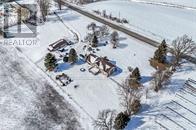 Desirable 6.19 acre rural property located 10 mins west of Simcoe's amenities incs Hospital, schools, arena/rec centres, shopping, eateries & Lynn walking/biking trails - in-route to the popular destination villages & towns dotting Lake Erie's Golden Southcoast. Positioned handsomely on this attractive parcel is 1990 built elevated ranch bungalow enjoying 900ft of frontage on McDowell Road & extends 300ft deep to abutting farm fields w/no immediate neighbors. Main driveway leads to gorgeous setting where sprawling estate-style home is situated to the east & detached 1,405sf triple car garage (built in 1990) is constructed on west side incs conc. flooring, 100 amp hydro & 2 roll-up doors. Spectacular 4,640sf multi-purpose 2 storey building is accessed from convenient 2nd driveway ftrs metal clad exterior/roof covering accented w/brick skirting, insulated lower level, fully open upper level, heavy duty hydro, water well & recently installed septic & tile field. Soaring pine tongue & groove cathedral ceilings, solid hardwood flooring, natural stone wood burning fireplace & patio door rear yard deck walk-out compliment majestic open concept Great room showcasing the 2,363sf of main level living area incs "Chef-Worthy" kitchen sporting ample oak cabinetry & island flowing to adjacent dining area. Floor plan continues w/inviting front foyer, spacious primary bedroom ftrs 2pc ensuite, 2 additional bedrooms & 4pc main bath. On-grade foyer incs functional laundry room incorporating 3pc bath, direct access to 753sf attached garage & staircase descending to 2,108sf finished lower level boasting massive 622sf family room segues to 470sf rec room, 2 huge bedrooms & sizeable storage/utility room housing the dwelling's mechanicals. Possibility for ARU (Additional Residential Unit). Extras - n/g furnace, AC-2017, roof-2020, drilled well-2023, chain link fenced yard, concrete pad & parking compound, water softener/purification system & septic. Incredible Package - Incredible Value (id:4555)