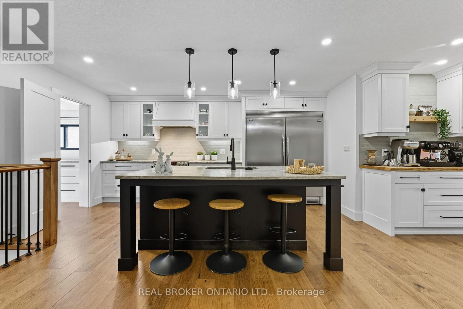 Welcome to your private country retreat just minutes from Port Burwell and the shores of Lake Erie! This beautifully crafted 4+1 bedroom, 2.5-bathroom home sits on a picturesque 4.28-acre lot and offers the perfect blend of modern living and rural charm. Step onto the covered cedar front porch and into an open-concept main floor designed for both style and function. The bright and airy living space features engineered hardwood flooring and flows seamlessly into a gourmet kitchen, complete with stunning white floor-to-ceiling Pioneer cabinetry, a contrasting black island with granite countertops, and a massive walk-in pantry. A main floor bedroom, full 4-piece bathroom, and convenient laundry room round out this level. Upstairs, you'll find a spacious primary bedroom with a large walk-in closet, two additional generous-sized bedrooms, and a luxurious 4-piece bathroom featuring a glass walk-in shower. The fully finished basement extends your living space with an additional bedroom, large rec room, and ample storage-perfect for a growing family or guests. Outside, the possibilities are endless! The 32' x 40' shop is a dream for hobbyists or business owners, featuring two 10' x 10' doors, a loft area, two separate 100-amp panels (with 200 amps at the pole), a cozy wood stove, and heated floors. Other highlights include a durable steel roof, Hardie Board exterior siding, and unbeatable privacy-all just minutes from the beach, marina, trails, and village amenities. Whether you're looking for peaceful country living, space to grow, or a functional live/work setup-this one checks all the boxes! (id:4555)
