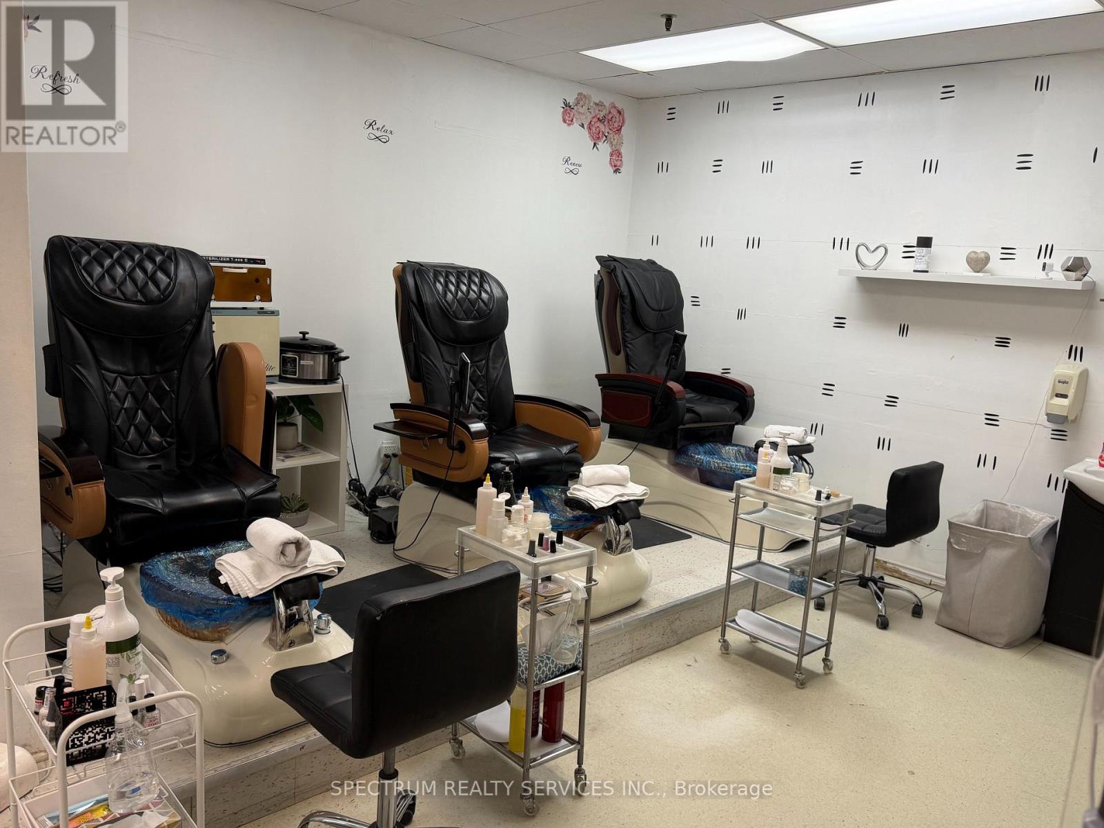 Turnkey nail salon and aesthetics business in a prime high-traffic location. Beautifully designed space featuring modern décor, multiple nail stations, private treatment rooms, and a loyal client base. Fully equipped with 4 Pedicure chairs and 4 Manicure stations, ready for immediate operation. Excellent opportunity for owner-operator or investor to step into an established beauty business. Located in a busy commercial plaza with strong foot traffic. Perfect opportunity to own a thriving beauty business in a desirable area. Current Hours Of Operation: Monday - Wednesday 9AM to 7PM. Thursday - Friday 9AM - 9PM. Saturday 9AM - 6PM. Sunday 11AM to 4PM. (id:4555)