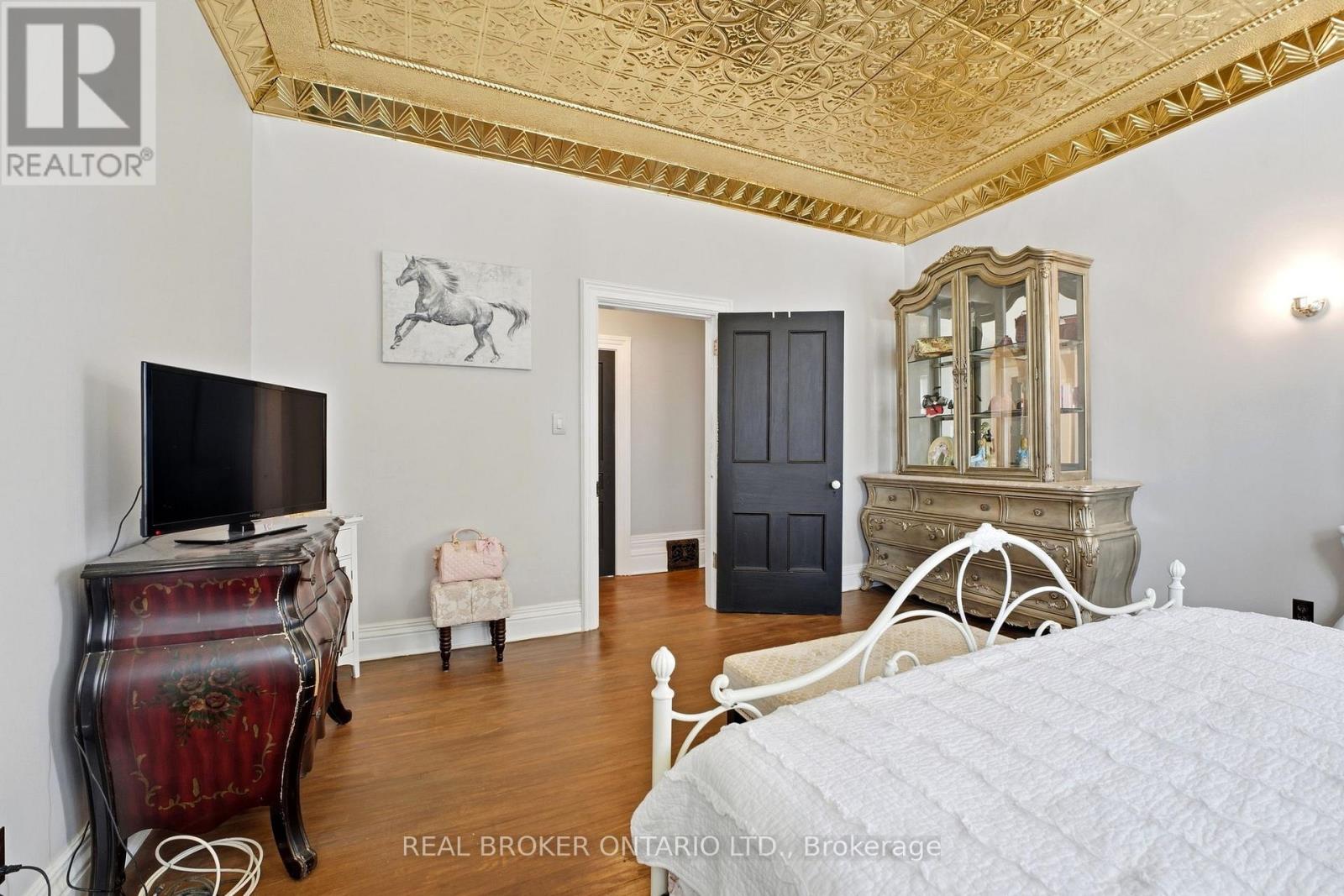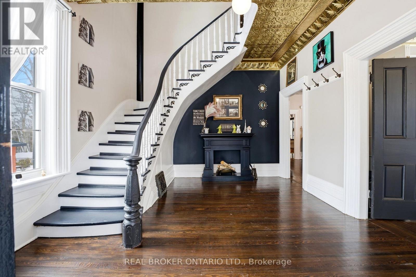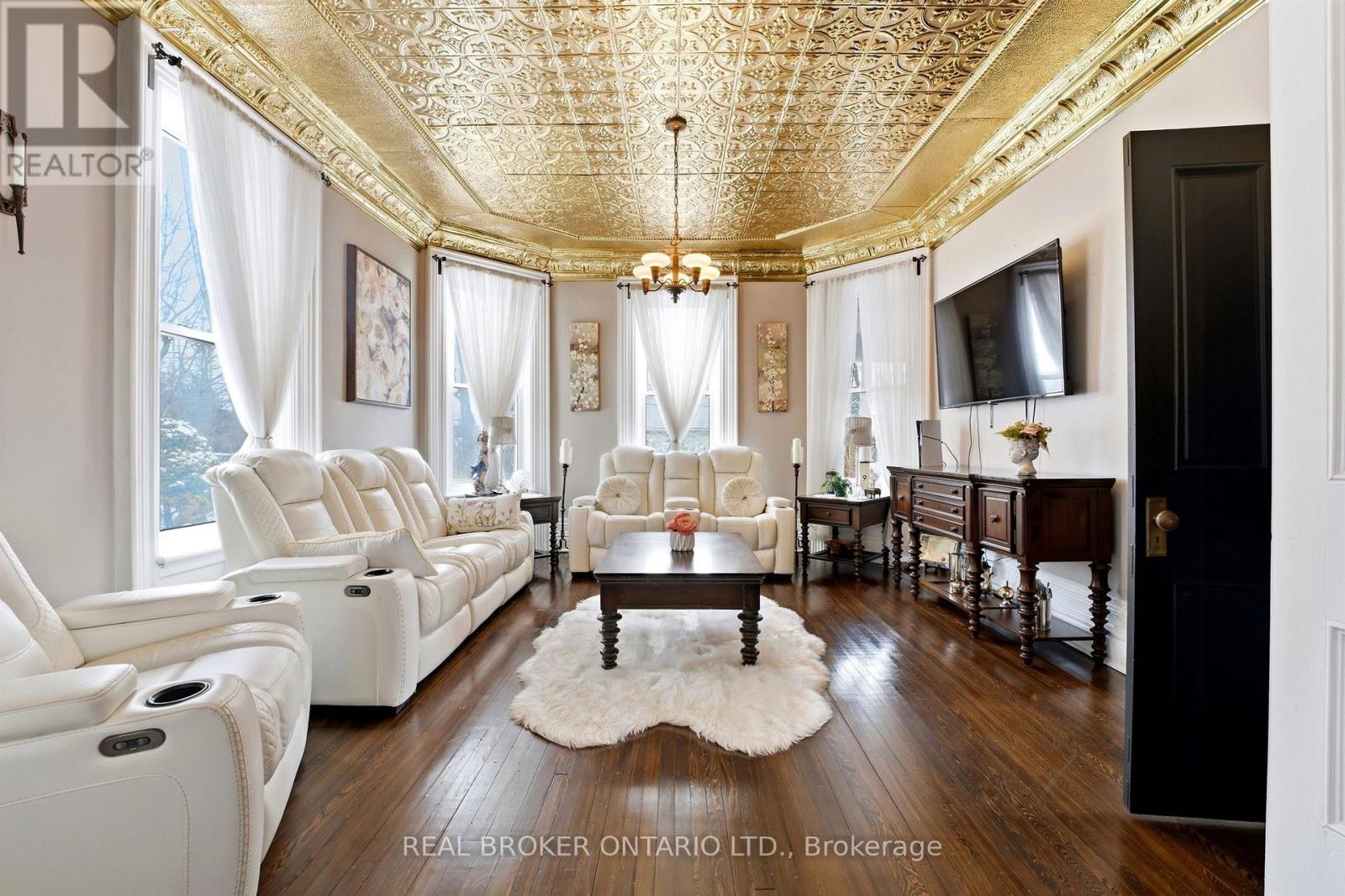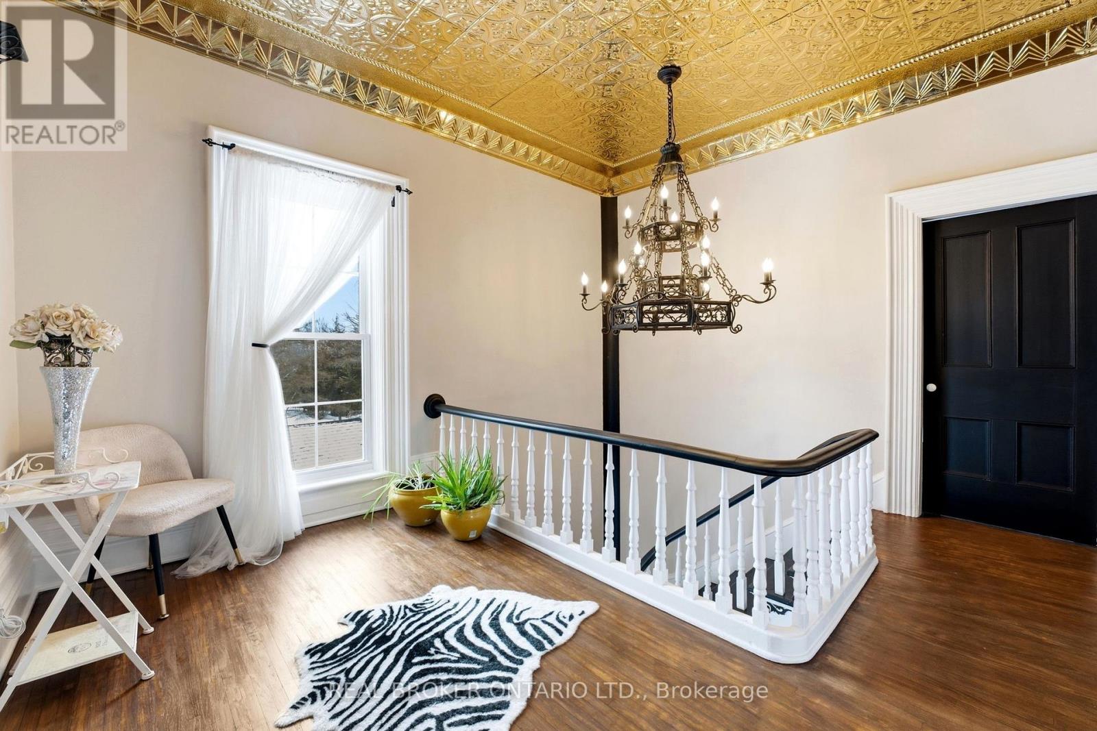 Welcome to the iconic Quance House - a celebrated landmark in Delhi, originally built in 1896 and steeped in local heritage. Once the residence of the prominent Quance family, owners of one of the last operating mills along Big Creek in Norfolk County, this grand 2.5-storey brick home is a timeless showcase of historic craftsmanship and enduring character. Set proudly on a rare half-acre corner lot spanning two streets, this stately property offers 4 spacious bedrooms plus a main floor office, 2 beautifully updated bathrooms, convenient main floor laundry, and a refreshed kitchen that blends modern function with classic style. Inside, the home's rich history is on full display. Soaring tin ceilings, refinished hardwood floors, original trim, and intricate architectural details create a warm and elegant atmosphere reminiscent of a bygone era. The formal dining room and expansive living room provide refined spaces for hosting gatherings or enjoying peaceful evenings at home. Thoughtfully maintained and updated, the home features newer windows, a durable steel roof, a double furnace system for efficient comfort, an owned hot water tank, and a Culligan water softener system. The full walk-through basement offers excellent storage and usability, complete with new awning-style windows that bring in natural light. Outdoors, the detached double-car garage includes an attached heated man cave - perfect for hobbies, a workshop, or entertaining on game day. The expansive backyard offers ample space to relax, garden, or explore the exciting potential for future lot severance. Located just steps from Quance Park, scenic walking trails, and the natural beauty of Big Creek, this is a rare opportunity to own one of Delhi's most treasured historic homes. Historic charm. Modern comfort. Endless potential. (id:4555)