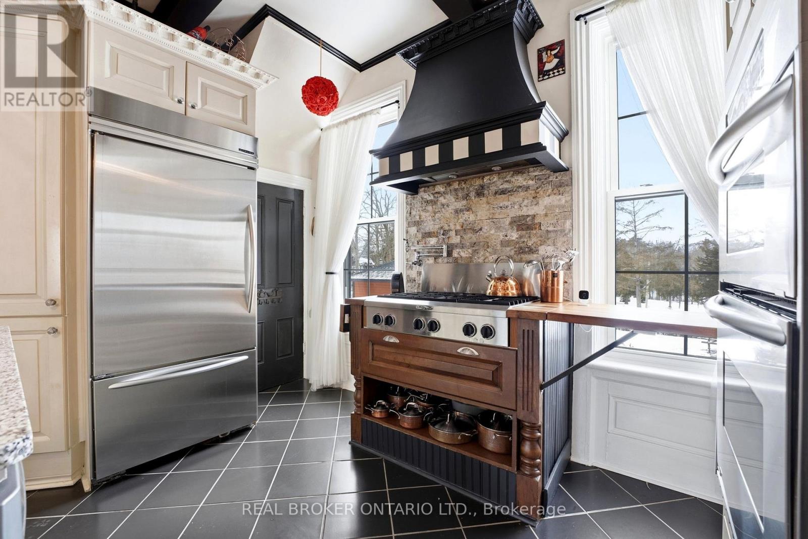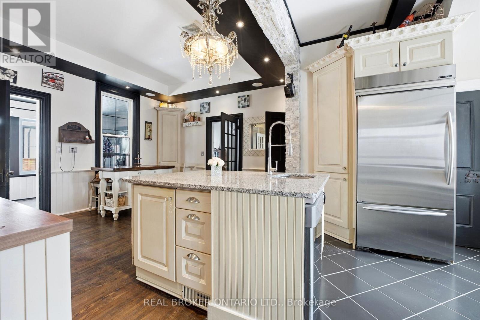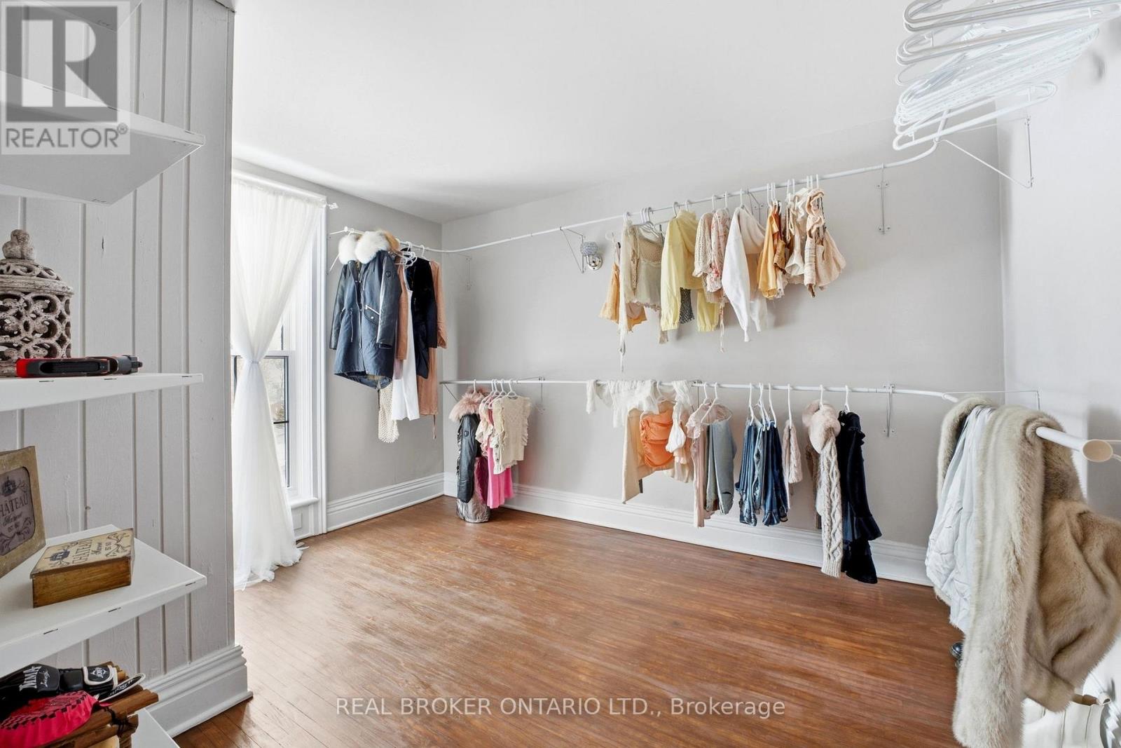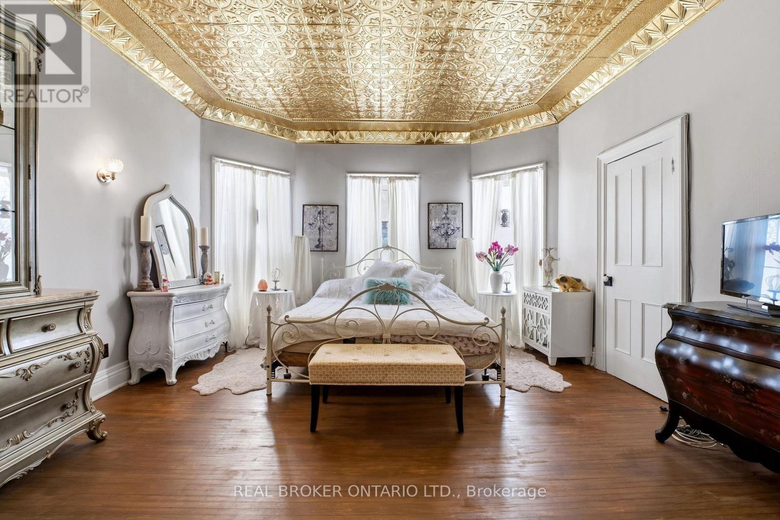 Welcome to the iconic Quance House - a celebrated landmark in Delhi, originally built in 1896 and steeped in local heritage. Once the residence of the prominent Quance family, owners of one of the last operating mills along Big Creek in Norfolk County, this grand 2.5-storey brick home is a timeless showcase of historic craftsmanship and enduring character. Set proudly on a rare half-acre corner lot spanning two streets, this stately property offers 4 spacious bedrooms plus a main floor office, 2 beautifully updated bathrooms, convenient main floor laundry, and a refreshed kitchen that blends modern function with classic style. Inside, the home's rich history is on full display. Soaring tin ceilings, refinished hardwood floors, original trim, and intricate architectural details create a warm and elegant atmosphere reminiscent of a bygone era. The formal dining room and expansive living room provide refined spaces for hosting gatherings or enjoying peaceful evenings at home. Thoughtfully maintained and updated, the home features newer windows, a durable steel roof, a double furnace system for efficient comfort, an owned hot water tank, and a Culligan water softener system. The full walk-through basement offers excellent storage and usability, complete with new awning-style windows that bring in natural light. Outdoors, the detached double-car garage includes an attached heated man cave - perfect for hobbies, a workshop, or entertaining on game day. The expansive backyard offers ample space to relax, garden, or explore the exciting potential for future lot severance. Located just steps from Quance Park, scenic walking trails, and the natural beauty of Big Creek, this is a rare opportunity to own one of Delhi's most treasured historic homes. Historic charm. Modern comfort. Endless potential. (id:4555)