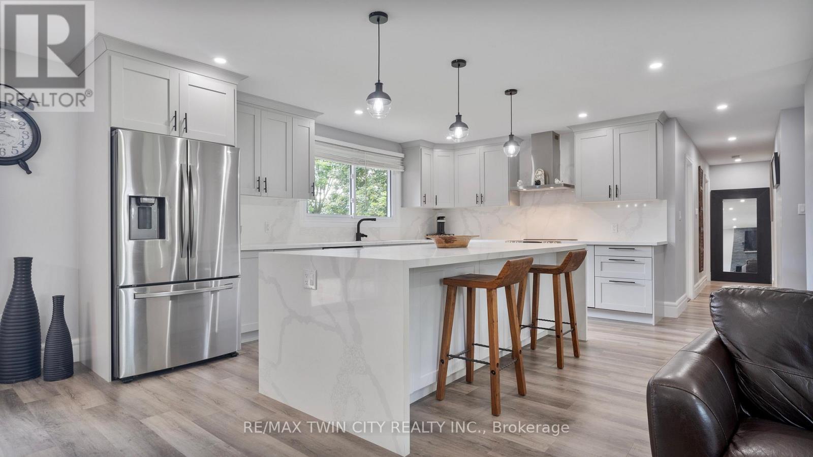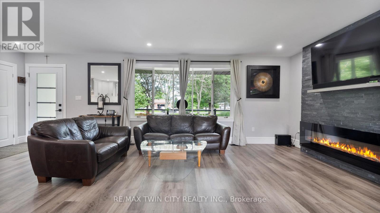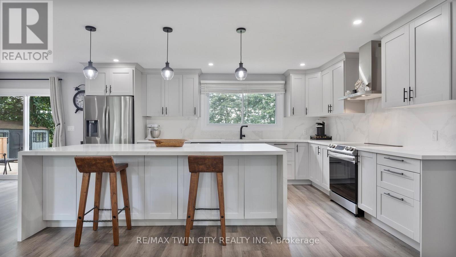 Escape to the peace and charm of country living at 1651 Villa Nova Road in Wilsonville. Set on a serene half-acre lot surrounded by lush greenery, this beautifully renovated bungalow offers a rare combination of privacy, space, and modern comfort. Thoughtfully updated throughout, the home features a walkout basement to the garage, along with major upgrades including a newer furnace and A/C, roof, driveway, garage door, and select windows and doors-providing true move-in-ready confidence. Inside, the bright and open main floor is designed for both everyday living and entertaining, highlighted by a stunning oversized island, stainless steel appliances, and warm rustic finishes that create an inviting atmosphere. With five generously sized bedrooms and three well-appointed bathrooms, there's plenty of room for families of all sizes or multi-generational living. Three electric fireplaces add a cozy touch throughout the home. Enjoy the quiet, friendly surroundings while still benefiting from convenient access to nearby essentials and major routes. This unique property offers the perfect balance of rural tranquility and everyday convenience-an exceptional opportunity you won't want to miss. (id:4555)