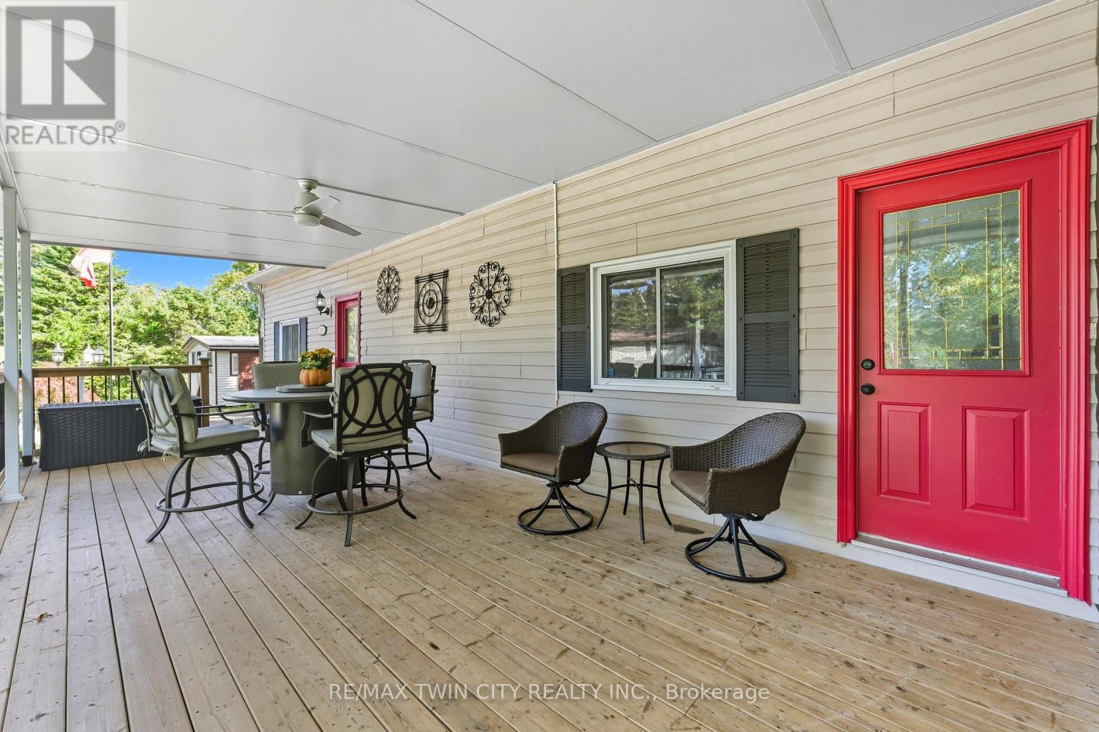 Welcome to Unit #518, a beautifully updated Northlander model offering the rare privilege of year-round living in the family-owned and operated Hillside Lake Park. Over the past few years, this home has undergone extensive renovations and presents a fresh, move-in-ready space to call your own. Step inside to find new vinyl plank flooring, fresh paint, upgraded lighting, and custom zebra blinds throughout. The stylish eat-in kitchen features upgraded cabinetry, stainless steel appliances, and a rough-in for a dishwasher. A spacious living room with two large windows fills the home with natural light, while the primary bedroom offers comfortable proportions right beside the 4-piece bathroom with in-suite laundry. A second bedroom or flex room makes the perfect spot for an office, craft space, or guest room. Outdoors, you'll love spending time on the massive 40' x 12' covered deck, complete with a 10' x 12' screened-in room-perfect for morning coffee or evening gatherings. The exterior of this home is surrounded by mature trees and features a fire pit, deck with gazebo, and two sheds for extra storage. Included in the sale are tons of extras such as outdoor furniture, shelving, firewood, and more! Very rarely do these year-round units come up for sale, especially ones with these upgrades, so DO NOT miss your chance! Book your showing today! [Monthly rent: $540.04 (additional fees apply)] (id:4555)