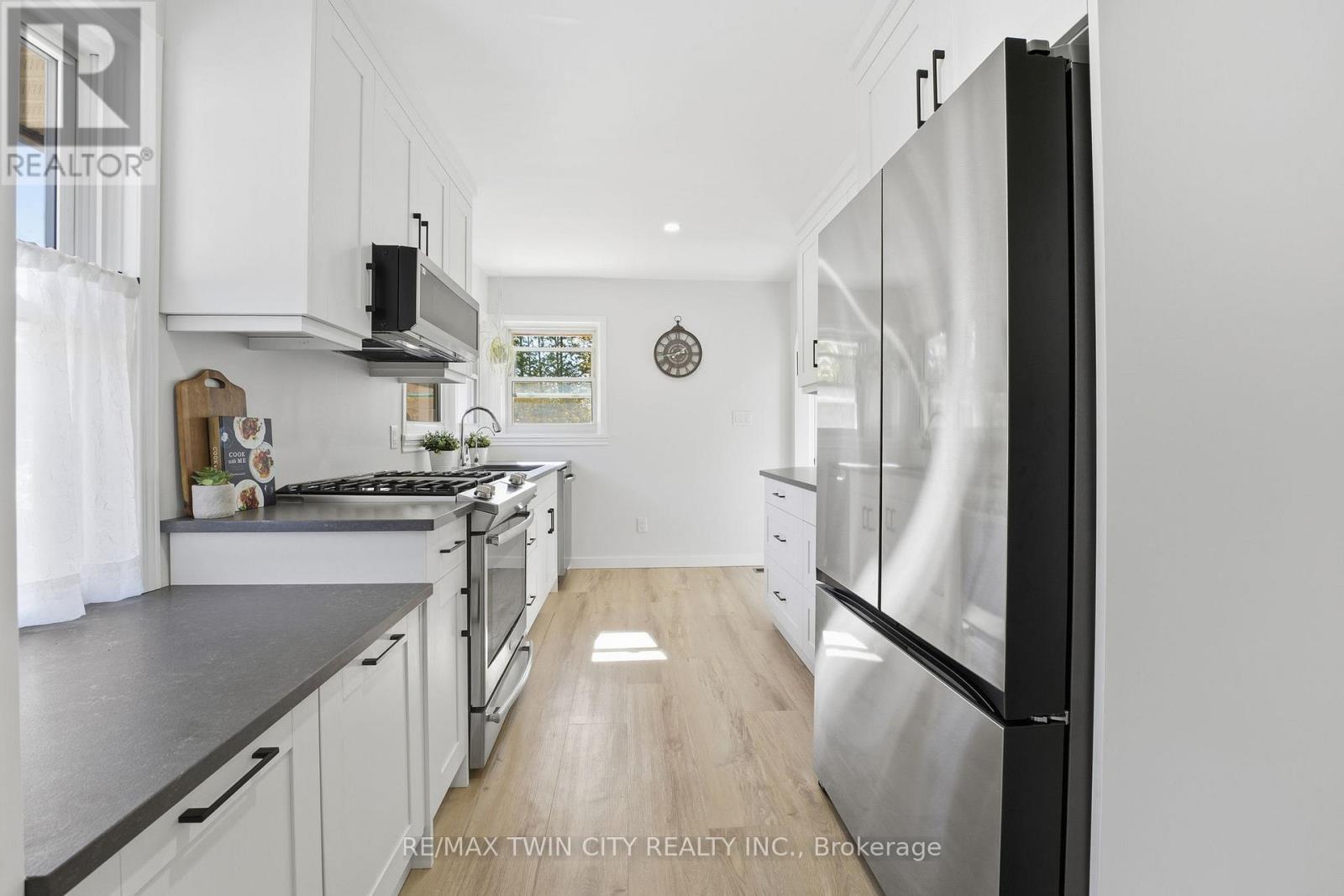 Country properties of this calibre are rarely offered. Welcome to 1822 Spragues Road - a beautifully upgraded red brick bungalow set on 1.56 acre lot. From the moment you arrive, the circular drive, landscaped front yard, and large detached garage create exceptional curb appeal. Step inside to find luxury vinyl plank flooring and recessed lighting throughout the main level, setting the tone for a bright, modern interior. The open-concept living and dining area features a large front-facing window and flows seamlessly into the fully renovated custom kitchen. Designed for both style and function, it showcases leathered quartz countertops, a propane stove, new dishwasher, and a sleek slim rangehood/microwave combination. Three well-sized bedrooms with closets are located on the main floor, along with an updated 4-piece bathroom. The finished basement expands your living space with an oversized bedroom, a 2-piece bathroom (with room to add a shower), and a versatile recreation area ideal for a home office, games room, or family retreat. Ample storage throughout - including coat closets, linen closets, and pantry space - ensures practical day-to-day living. Outdoors, privacy is paramount. Towering cedars frame the property, while the heated in-ground saltwater pool is surrounded by multiple lounging areas - perfect for entertaining, relaxing in the sun, or enjoying evenings beside the fire bowl. For those seeking a touch of country living, the property also features a chicken coop and multiple fruit trees. The location is exceptional: situated on the Ayr school bus route, directly across from Sudden Tract Nature Trail, just 3 minutes to Cambridge, 6 minutes to Ayr, 8 minutes to Paris, and 10 minutes to Highway 401. Major updates include: Furnace & A/C (2020), Attic Insulation (2020), Windows & Doors (2021), Well (2021), Septic (2021), Pool (2021), and more. (id:4555)