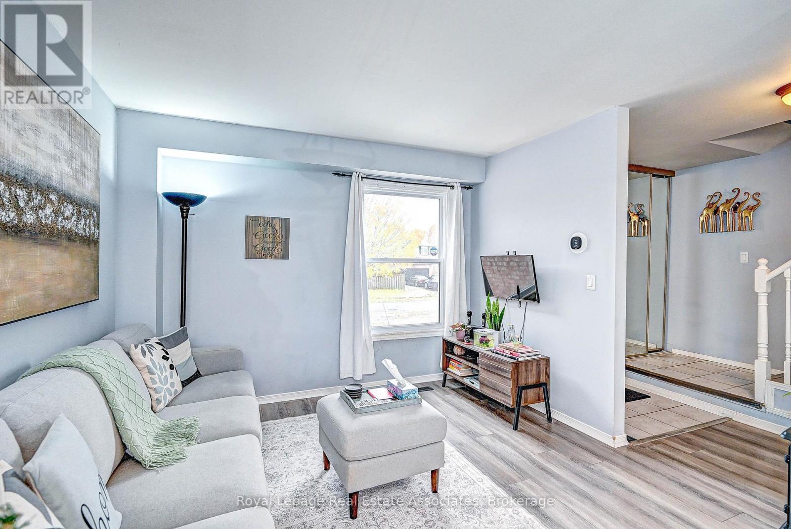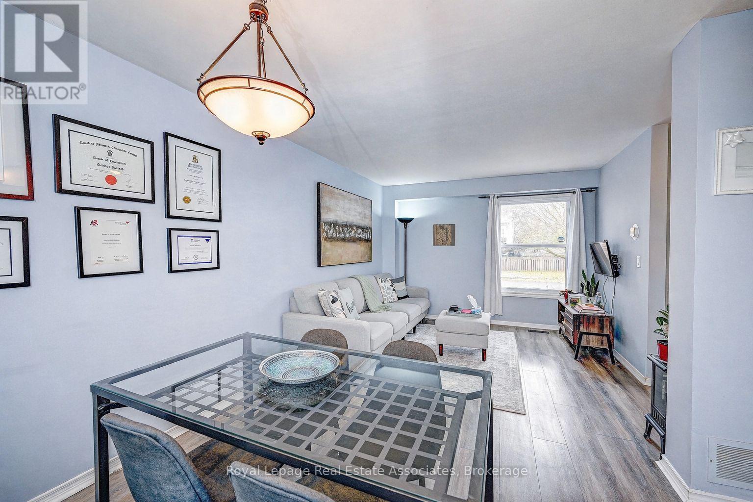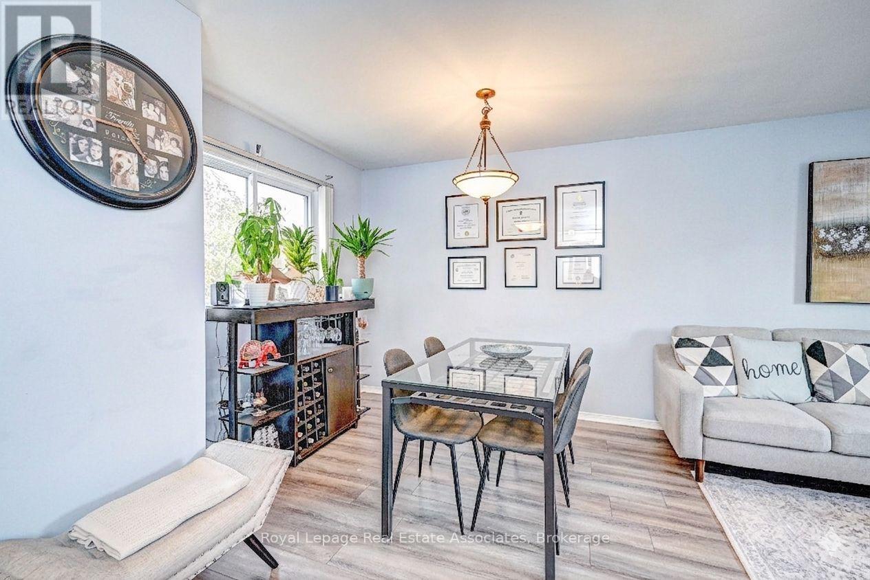This semi-detached home is located in a quiet, established neighbourhood and offers a large, fully fenced yard. The property is steps from St. Brigid School, Owl Day Care, and within walking distance to Piper's Glen trails and Douglas Park. The home features a newly installed double-wide asphalt driveway and an attached garage. The main level includes a combined living and dining area with large windows, and a galley-style kitchen with patio doors providing access to the rear yard. The backyard offers an interlock patio and mature trees. The upper level includes a primary bedroom with walk-in closet, an additional bedroom, and a 4-piece bathroom. The basement is partially finished with a recreation room, laundry/utility area, and a storage room. Additional features include central air conditioning, water softener, updated vinyl windows, and a rented hot water heater. Conveniently located near Ayr Foodland, local restaurants, parks, and walking trails. (id:4555)