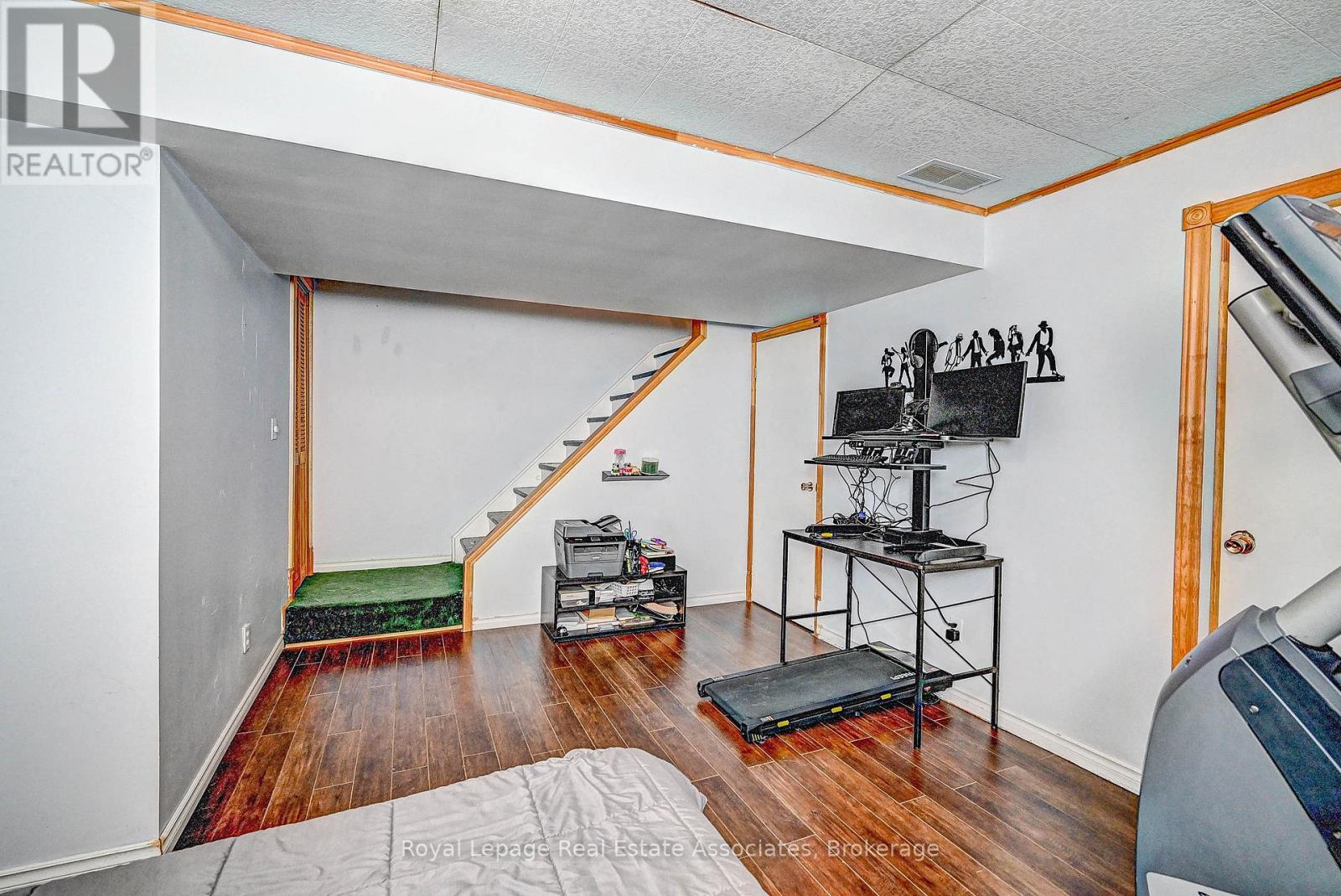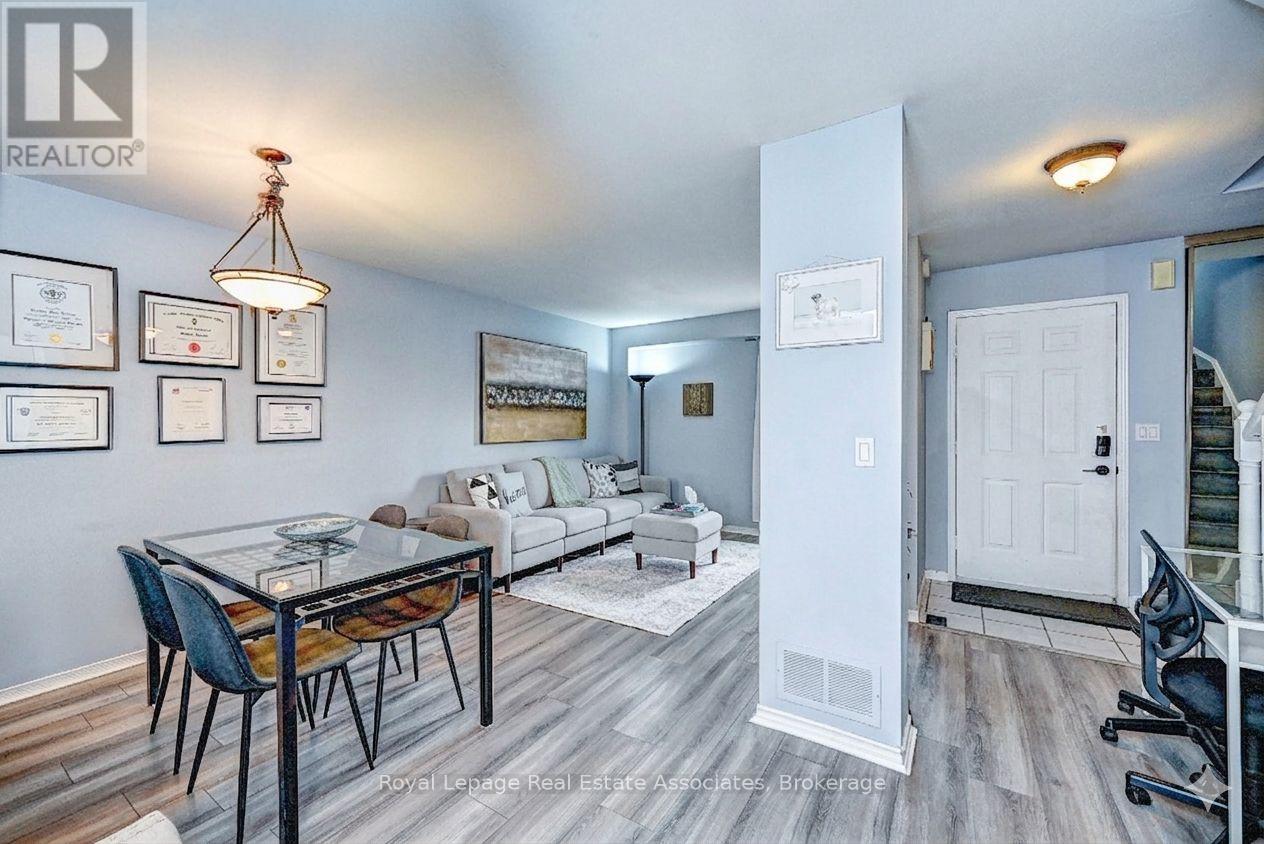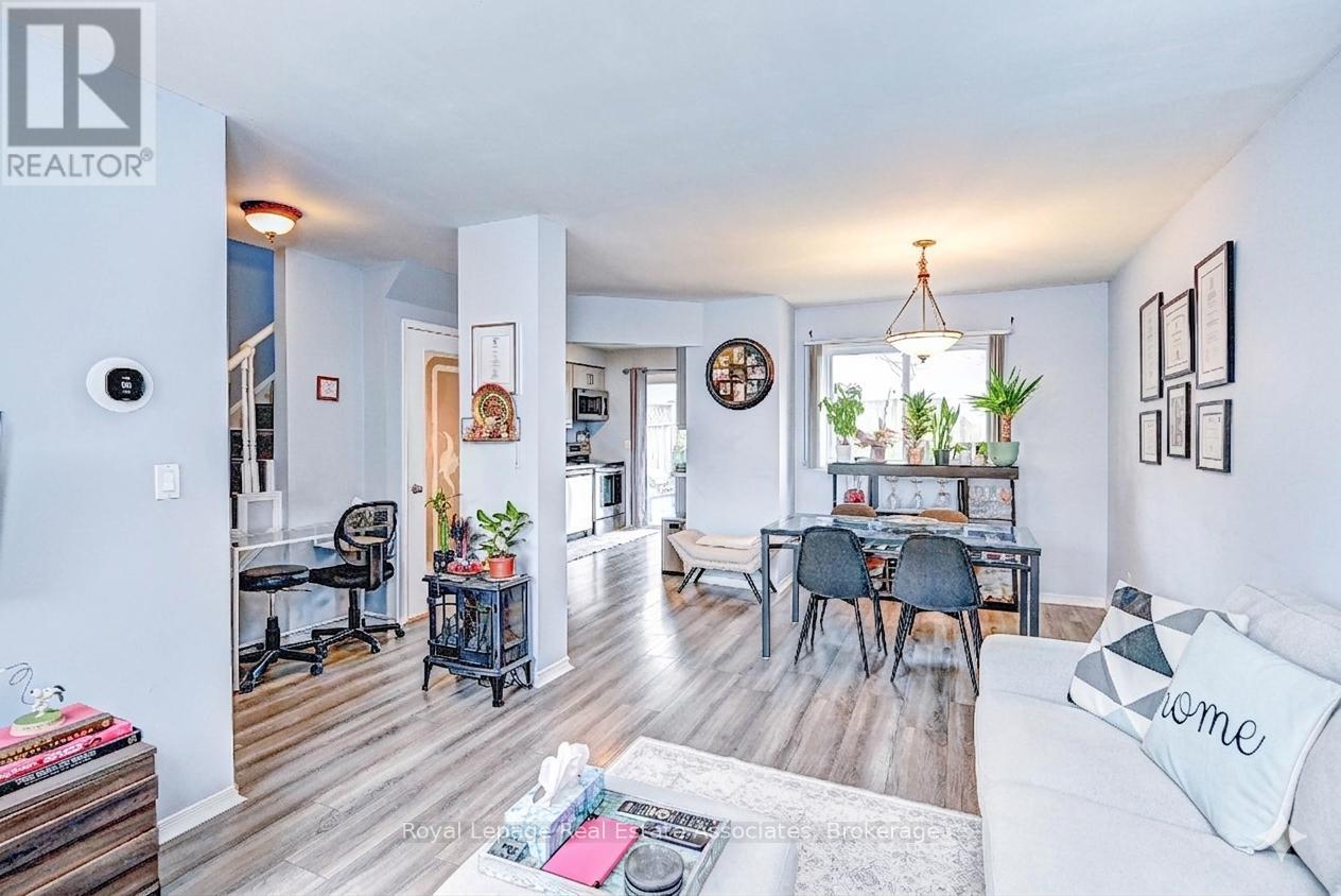 This semi-detached home is located in a quiet, established neighbourhood and offers a large, fully fenced yard. The property is steps from St. Brigid School, Owl Day Care, and within walking distance to Piper's Glen trails and Douglas Park. The home features a newly installed double-wide asphalt driveway and an attached garage. The main level includes a combined living and dining area with large windows, and a galley-style kitchen with patio doors providing access to the rear yard. The backyard offers an interlock patio and mature trees. The upper level includes a primary bedroom with walk-in closet, an additional bedroom, and a 4-piece bathroom. The basement is partially finished with a recreation room, laundry/utility area, and a storage room. Additional features include central air conditioning, water softener, updated vinyl windows, and a rented hot water heater. Conveniently located near Ayr Foodland, local restaurants, parks, and walking trails. (id:4555)
