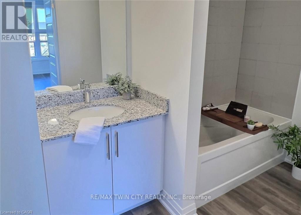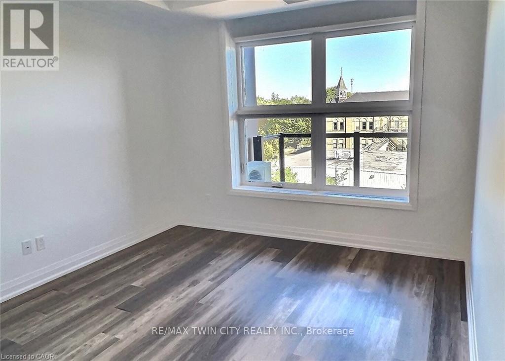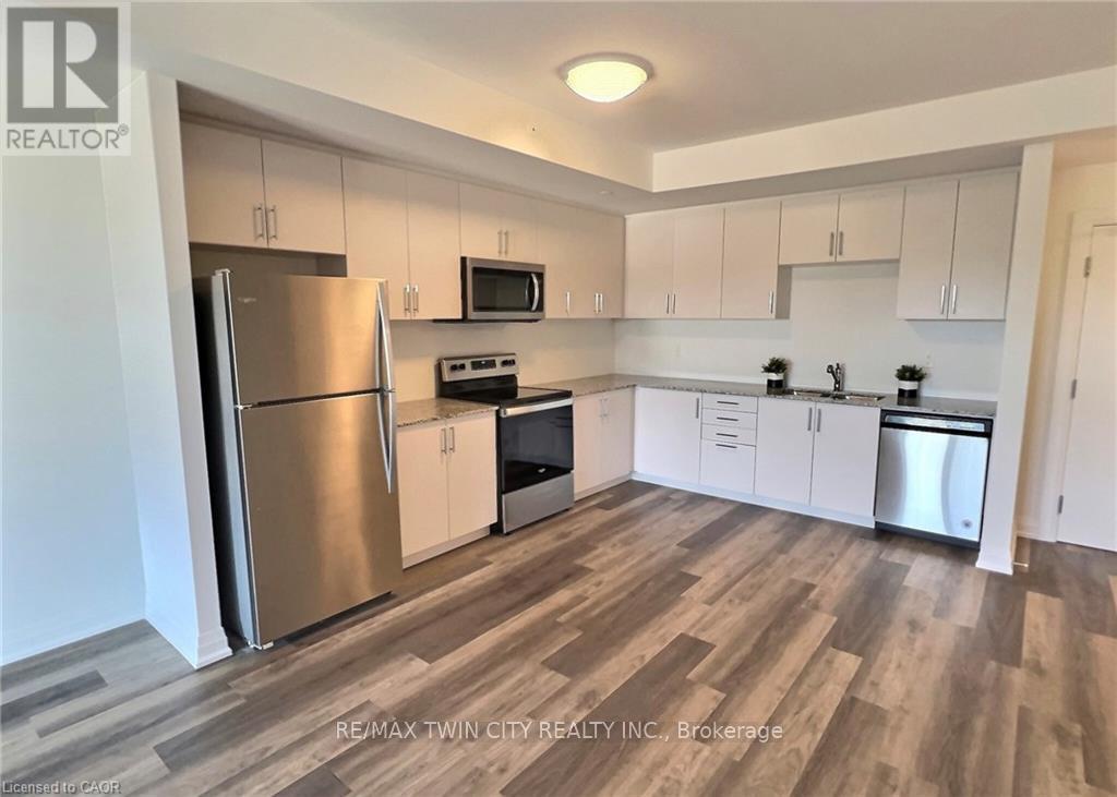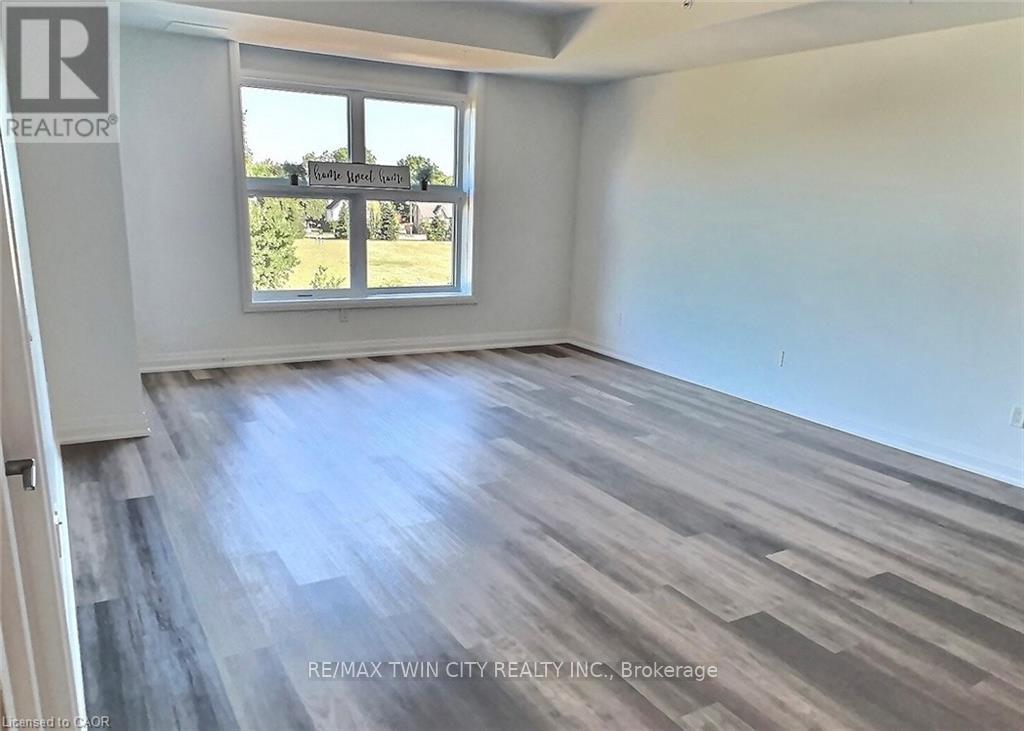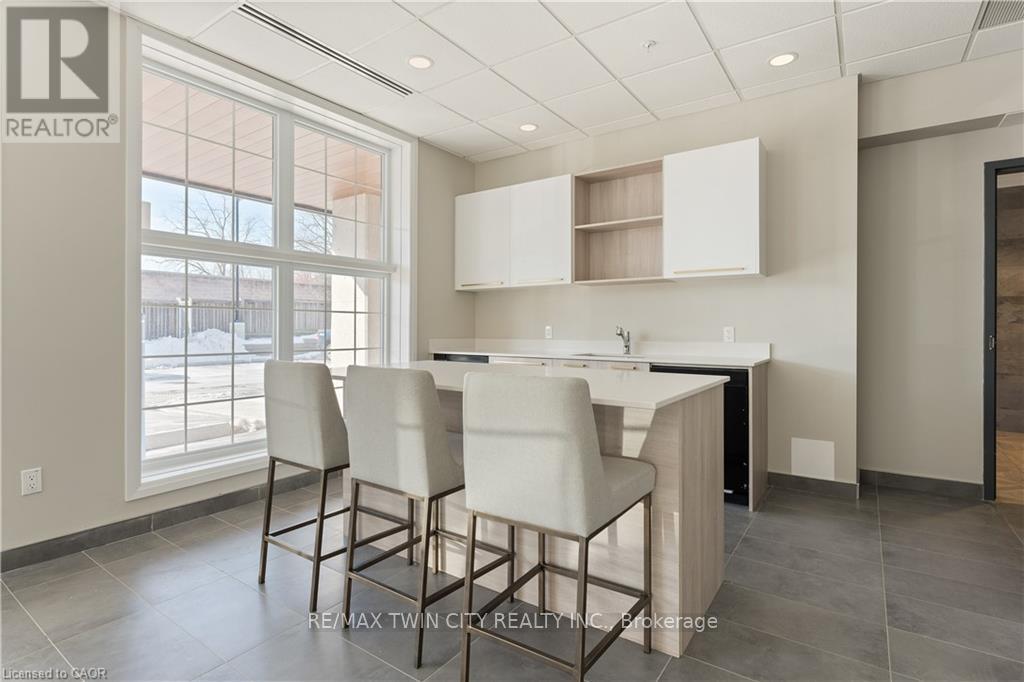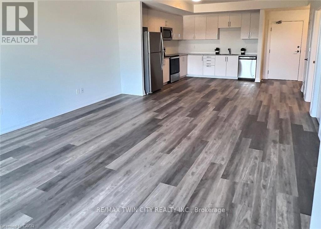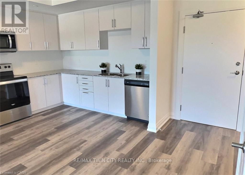 Explore comfortable, modern condo living in the inviting village of Ayr at Piper's Grove, located at 88 Gibson Street. This well-designed MacLean layout is situated on the top (5th) floor and offers 1 bedroom, 1 bathroom, and a bright, open-concept living space with approximately 885 sq ft. The kitchen, dining, and living area is flooded with natural light from large windows and opens onto a spacious private balcony-perfect for enjoying your morning coffee or unwinding at the end of the day. The stylish kitchen features sleek white cabinetry extended to the ceiling, quartz countertops, a neutral backsplash, and ample prep space. Contemporary lighting over the dining area enhances the modern aesthetic. The primary bedroom offers convenient access to a 4-piece bathroom, creating a comfortable and efficient layout. Additional highlights include luxury vinyl plank flooring throughout, in-suite laundry, wide doorways for wheelchair accessibility, and one covered parking space. Residents enjoy a secure building entrance with intercom system, as well as a welcoming main-level amenity room complete with a kitchenette and washroom-ideal for gatherings or entertaining. Located at the end of Gibson Street, this condo is steps from Centennial Park, the Campbell Trail, the Nith River, Watson Pond, and Jedburgh Dam. Enjoy the charm of Ayr's downtown core while benefiting from quick access to Highway 401 and a short drive to Cambridge, Kitchener, Brantford, and Woodstock. (id:4555)