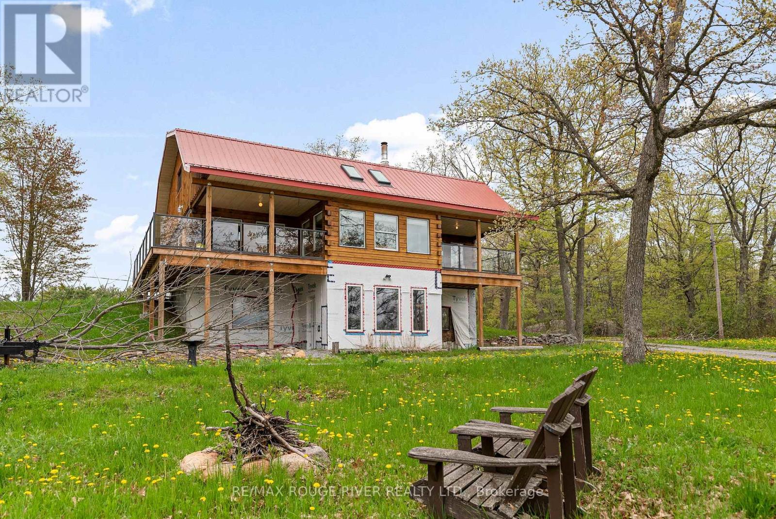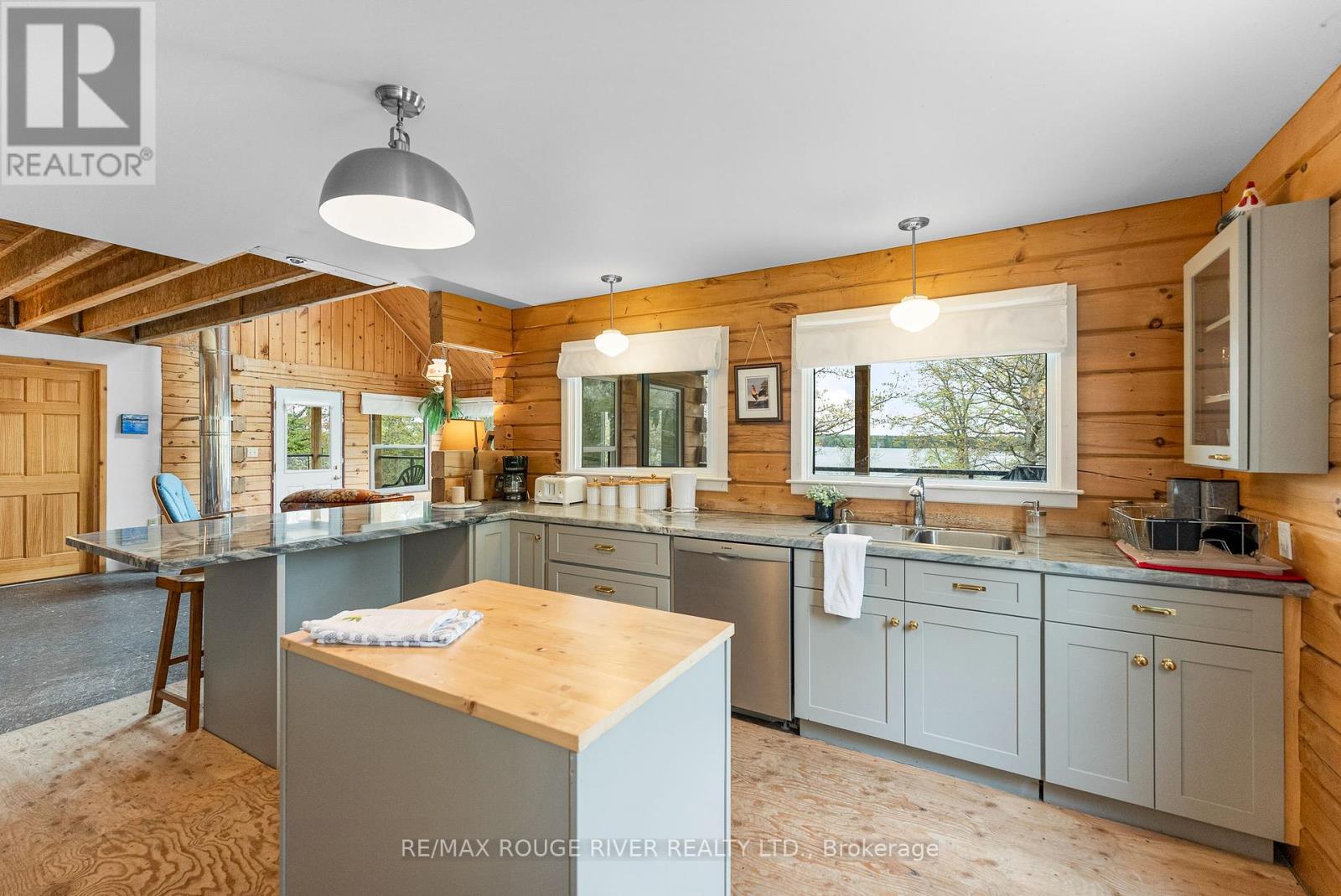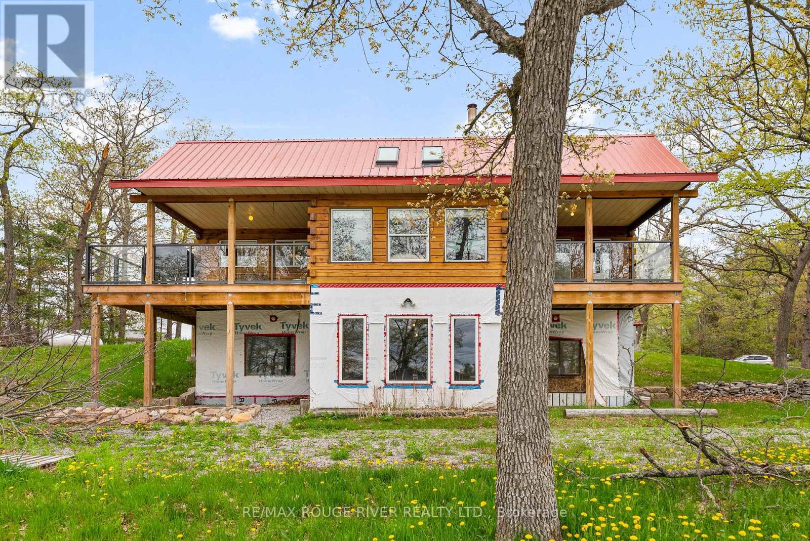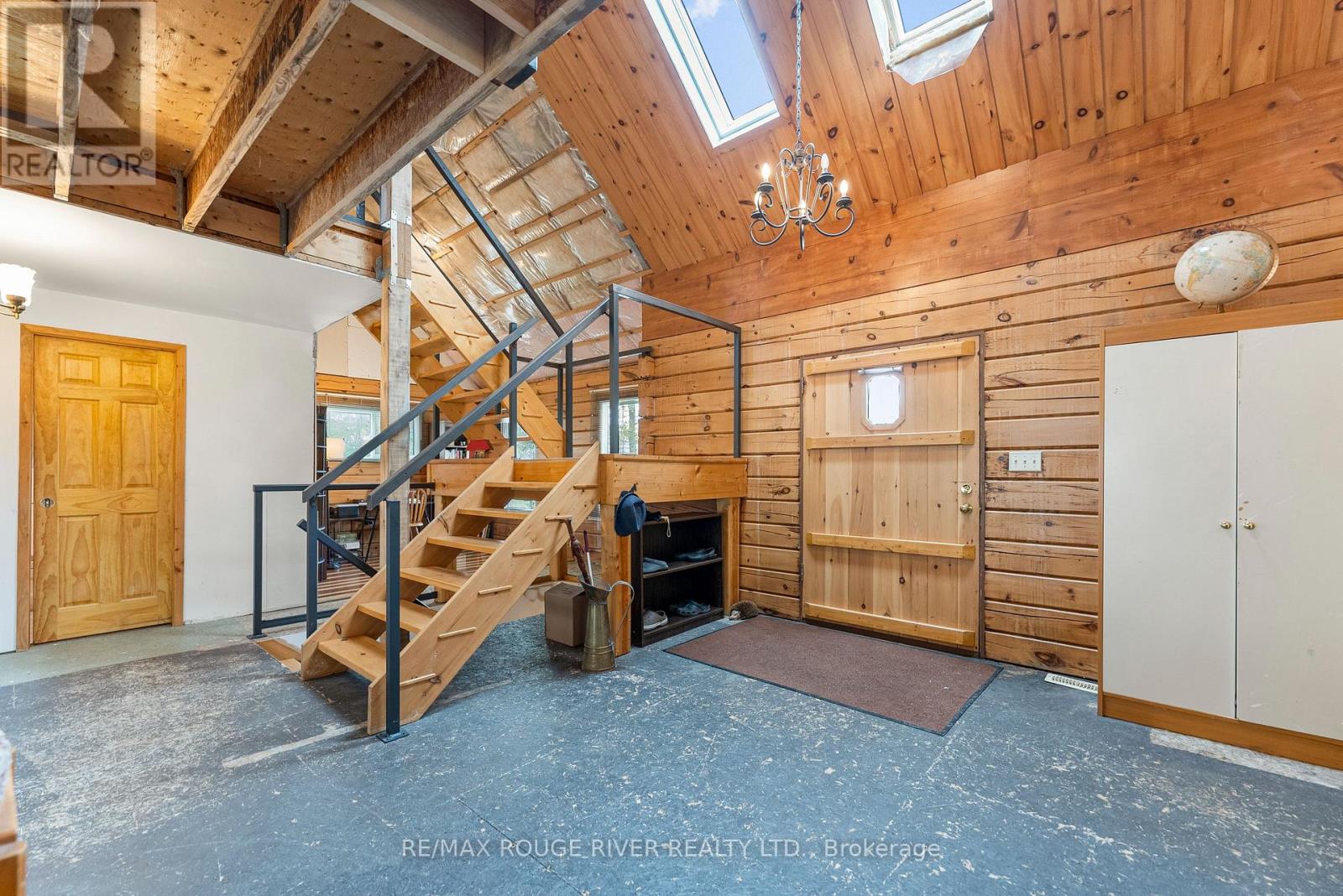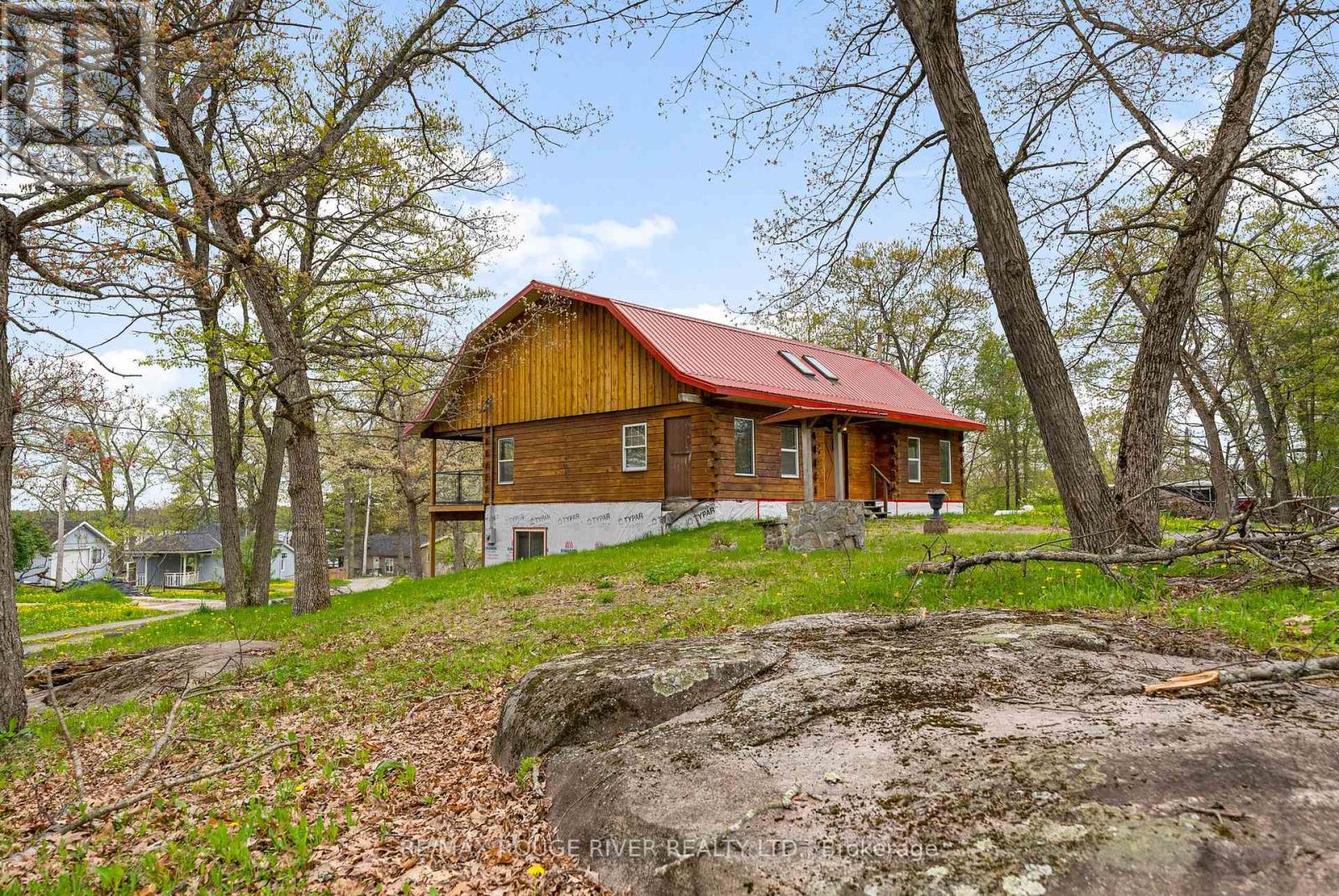 Gorgeous views over Stoney Lake from this large log home situated on a lovely .73 Acre lot. So much potential here - the ideal home for someone looking to finish to their own liking! Five mins to Quarry Bay Beach & Petroglyph's Provincial Park, Community Centre/Library/sports courts, restaurants, Marina's +++ Approx 3400 sq ft including walkout lower level with 10 ft ceilings - propane furnace, steel roof, ICF foundation, 200 amp hydro, two covered decks + a covered patio, large kitchen with movable island, breakfast bar, built-in appliances & natural stone countertops, 4pc bath on the main level, 3pc started on the lower level combined with the laundry room, great home office space on the main floor. Currently two bedrooms on the main level+ huge open loft above (41x19), lower level has large windows and a walkout to the patio - so many possibilities! Cork flooring for the kitchen, oak for the living & dining rooms on site and included along with backsplash tile for the kitchen & fixtures for the lower bath and tile for main floor bath. Vaulted ceilings and skylights make this home extra bright and airy. Property being sold "AS-IS" ready for you to make it your own. (id:4555)