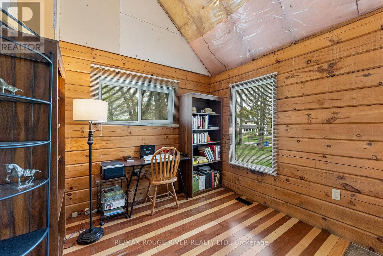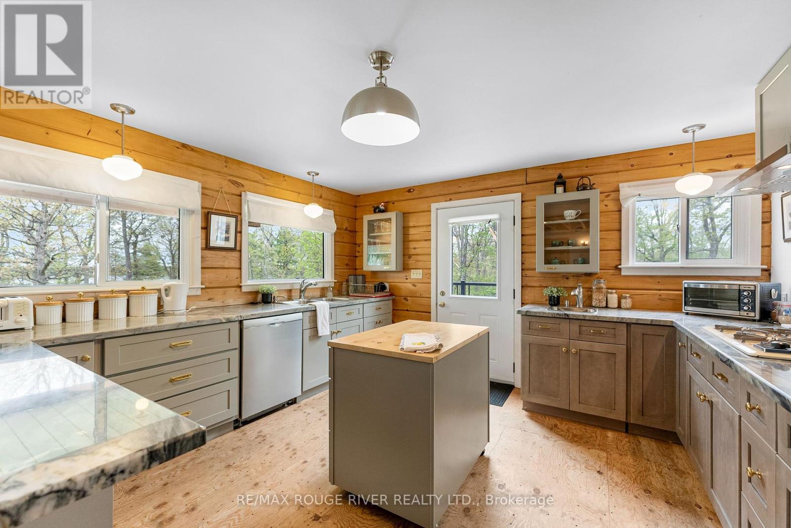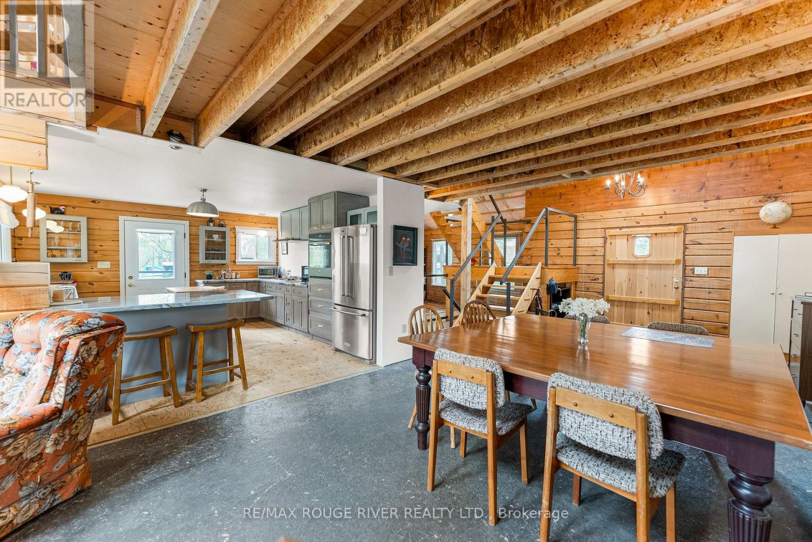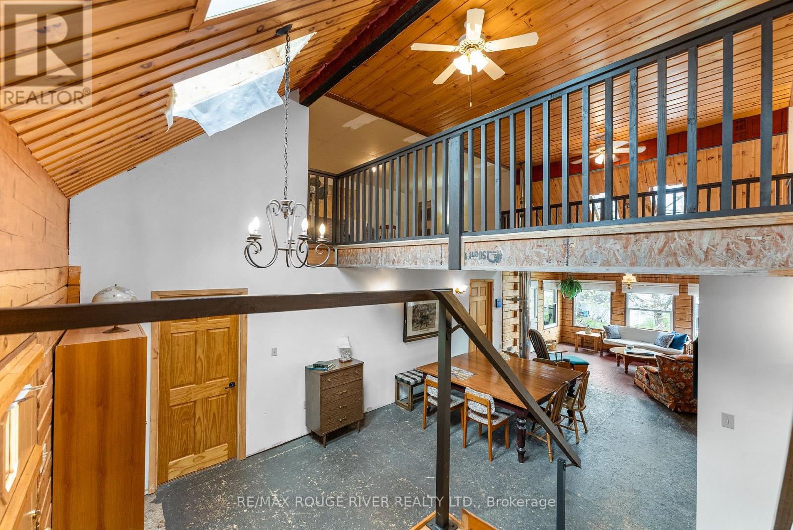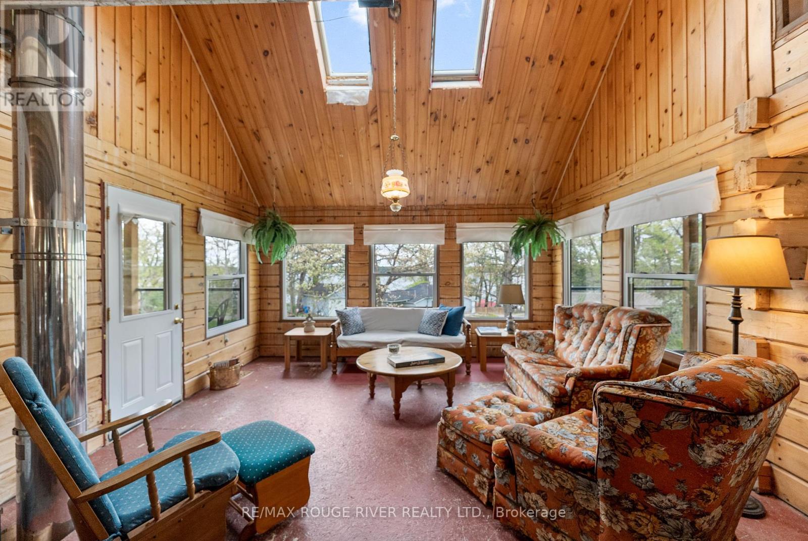 Gorgeous views over Stoney Lake from this large log home situated on a lovely .73 Acre lot. So much potential here - the ideal home for someone looking to finish to their own liking! Five mins to Quarry Bay Beach & Petroglyph's Provincial Park, Community Centre/Library/sports courts, restaurants, Marina's +++ Approx 3400 sq ft including walkout lower level with 10 ft ceilings - propane furnace, steel roof, ICF foundation, 200 amp hydro, two covered decks + a covered patio, large kitchen with movable island, breakfast bar, built-in appliances & natural stone countertops, 4pc bath on the main level, 3pc started on the lower level combined with the laundry room, great home office space on the main floor. Currently two bedrooms on the main level+ huge open loft above (41x19), lower level has large windows and a walkout to the patio - so many possibilities! Cork flooring for the kitchen, oak for the living & dining rooms on site and included along with backsplash tile for the kitchen & fixtures for the lower bath and tile for main floor bath. Vaulted ceilings and skylights make this home extra bright and airy. Property being sold "AS-IS" ready for you to make it your own. (id:4555)