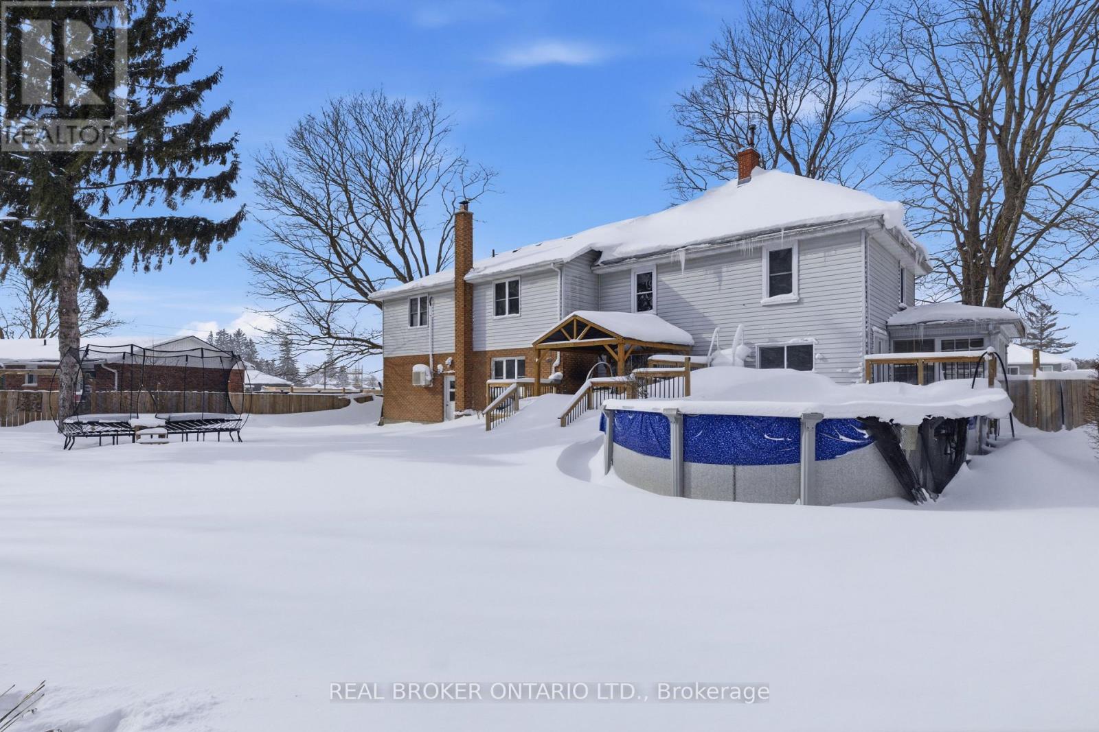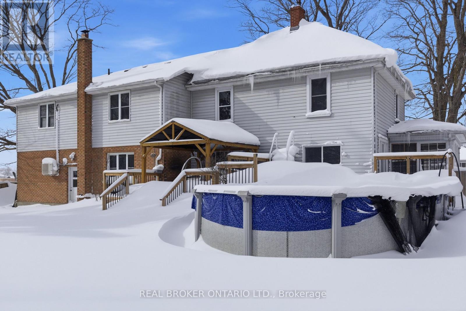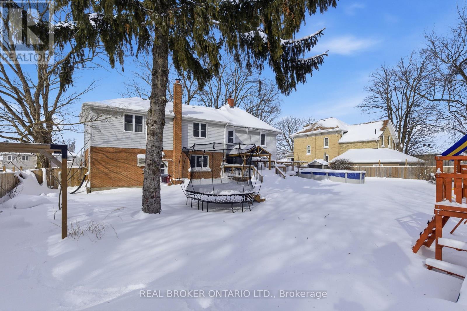 Welcome to a home designed to grow with your family. Set on a rare fully landscaped double lot, this spacious 5-bed, 2.5-bath residence offers the flexibility, privacy, and multi-generational living truly needs. The main floor was beautifully renovated in 2025, creating a bright open-concept layout-perfect for shared meals, celebrations, and everyday connection. Upstairs, renovations are in transition, giving the next owner the opportunity to add their own finishing touches and tailor the space to their family's needs. 2 separate staircases at either end of the home lead to a generous 2nd floor, enhancing flow and privacy for different generations under one roof. With 3 separate entrances, this home is easily adaptable for extended family living or could be converted to a side-by-side duplex, offering excellent potential for rental income. A large attic and spacious basement provide ample storage, keeping daily living clutter-free. Outside is where this property truly shines. The fully fenced backyard is a private retreat featuring an above-ground chlorine pool w/ a new liner, pump, and cover (2025), an upper deck (2022), a pool deck (2025), a basketball court for the kids, plus a large shed and pool house. Mature landscaping includes cherry blossom, lilac, and cherry trees, creating a peaceful, park-like setting ideal for family gatherings across generations. Major updates offer peace of mind: owned furnace, A/C, hot water tank, and water softener (2 y.o.), roof (2018), sump pump (2 y.o.), and garage door opener (2025). All appliances are included and in working order. The home features a stone and concrete foundation and has no known UFFI or asbestos. Ideally located within walking distance to Eastdale PS, LDSS, and the downtown core, this home offers both convenience and community. With flexible closing available, this is a rare opportunity for a multi-generational family-or a savvy buyer seeking future income-to put down roots in a home that truly does it all. (id:4555)